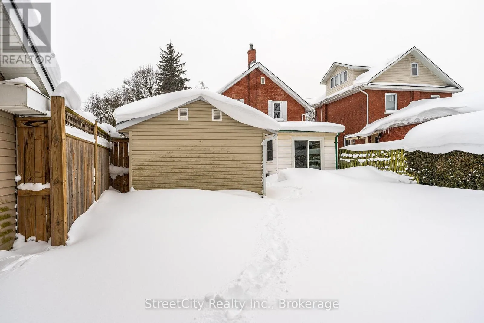 Cross Streets: West Gore & Downie. ** Directions: Youngs off Birmingham North of West Gore. Just over 100 years old on Youngs. Check out this super solid red brick 2 storey home in desirable Hamlet Ward in central Stratford. 3 Bedrooms & 2 Baths w/ rear addition over 1550sqft. Nicely kept throughout w/ updated windows & mechanicals. Main level offers a heated covered front porch, 2 pc powder room, formal living & dining rooms, a stylish mid-century custom kitchen, great room w/ walk-out to rear deck overlooking large fenced yard, detached garage & private driveway. Rear entry w/ spacious mud room area & convenient access to kitchen. The upper level holds 3 spacious bedrooms & 4 pc family bath. Partially finished basement w/ rec room, workshop, utility room w/ plenty of storage. Several updates throughout the years including windows, roof, furnace/AC and more. Call for more information or to schedule a private showing. (id:27476)