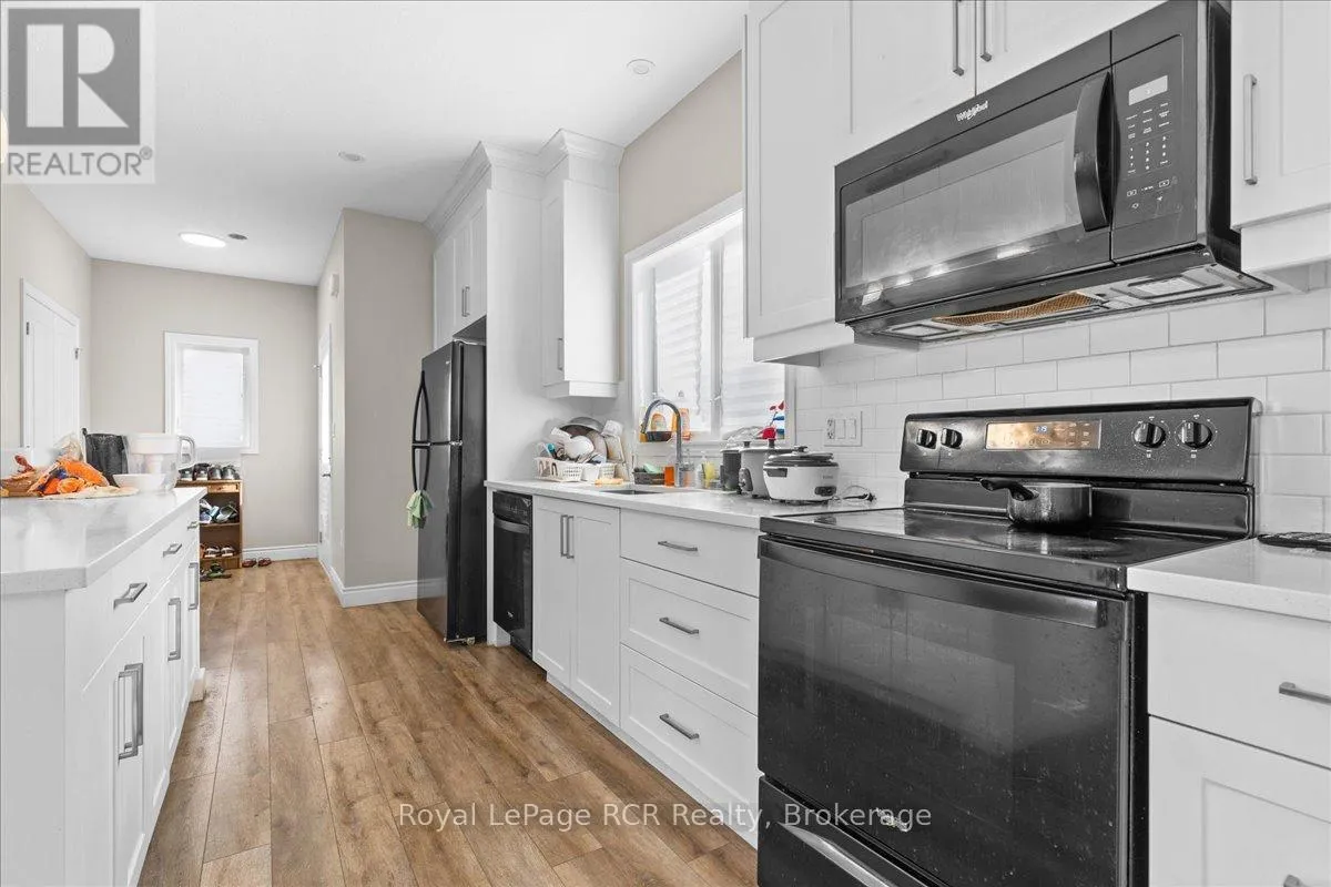 Cross Streets: Victoria , Cobourg. ** Directions: WEST OFF DOWNIE STREET, TURN LEFT ON VICTORIA, THEN LEFT ONTO COBOURG LANE. 38 Cobourg Lane, Stratford - A modern, thoughtfully designed 4-year-old duplex offering versatility and comfort. The upper unit is currently occupied, while the main floor is available to move-in. Perfect for homeowners who want extra income potential or room for extended family, this property features open-concept kitchens with large islands, stone countertops, vinyl plank flooring, ensuite bedrooms, walk-in closets, full baths with walk-in showers, and bright, airy living spaces. Each unit includes new appliances, full laundry, private entrances, porches, and dedicated parking. With no condo or common fees, you have full control over the property. Ideally located just steps from Stratford's vibrant downtown, this duplex combines modern living, convenience, and flexibility - a must-see opportunity! (id:27476)