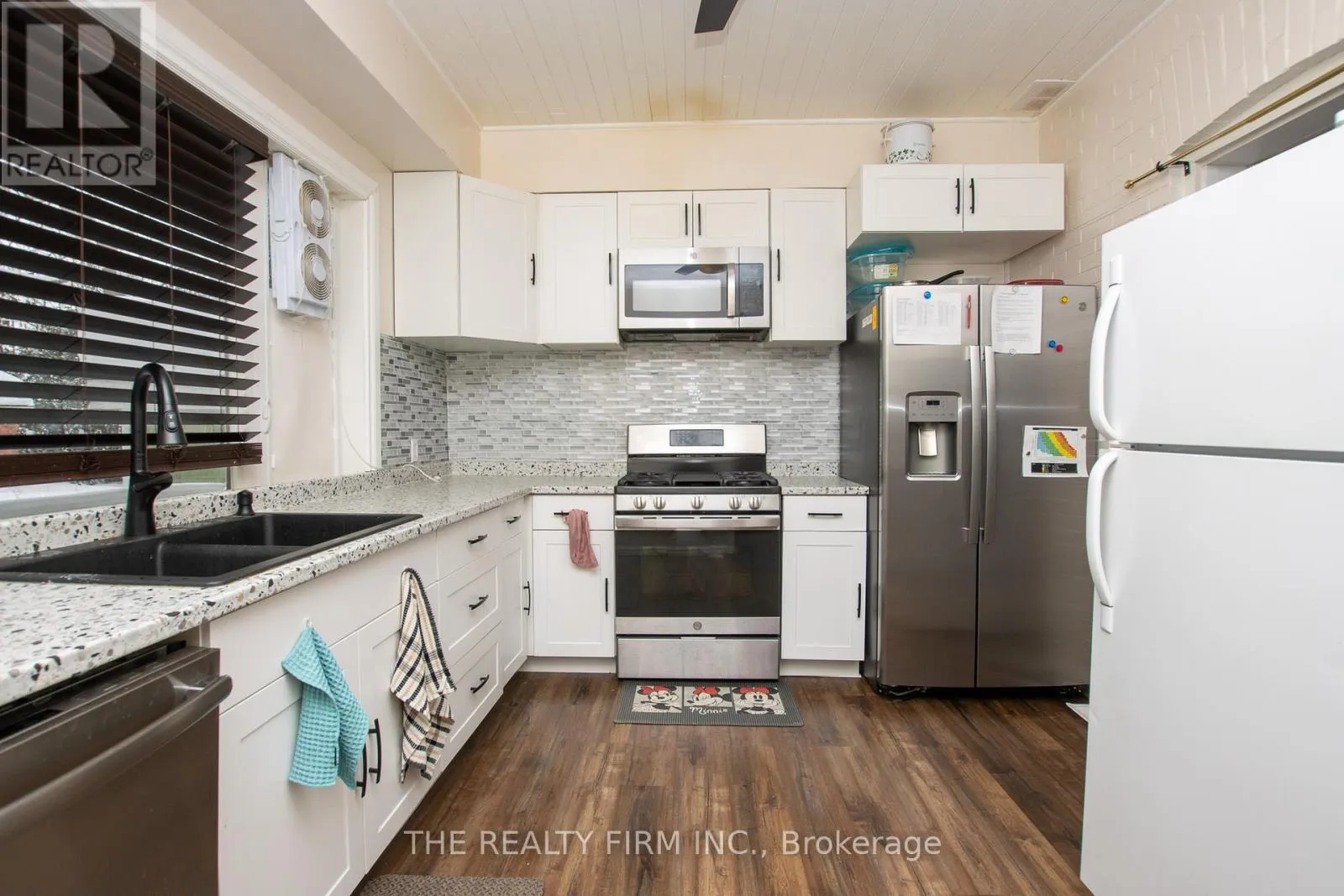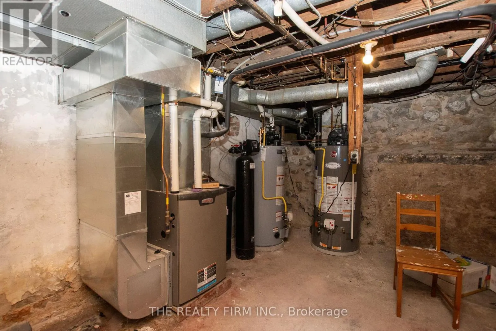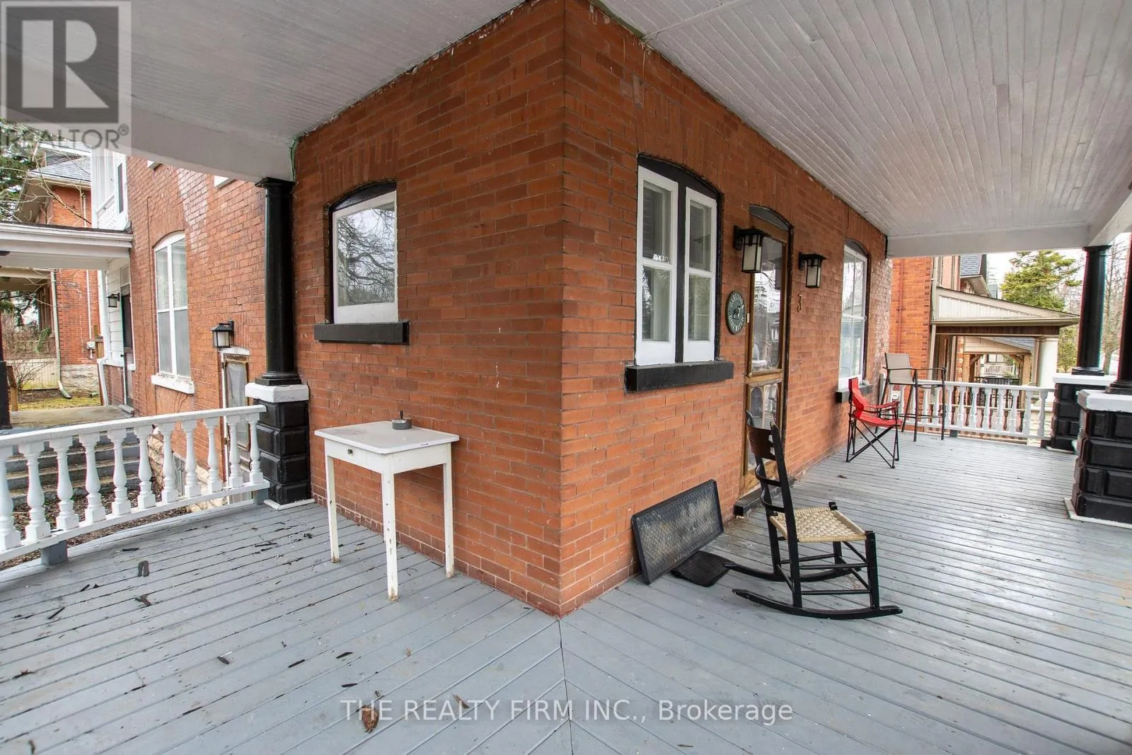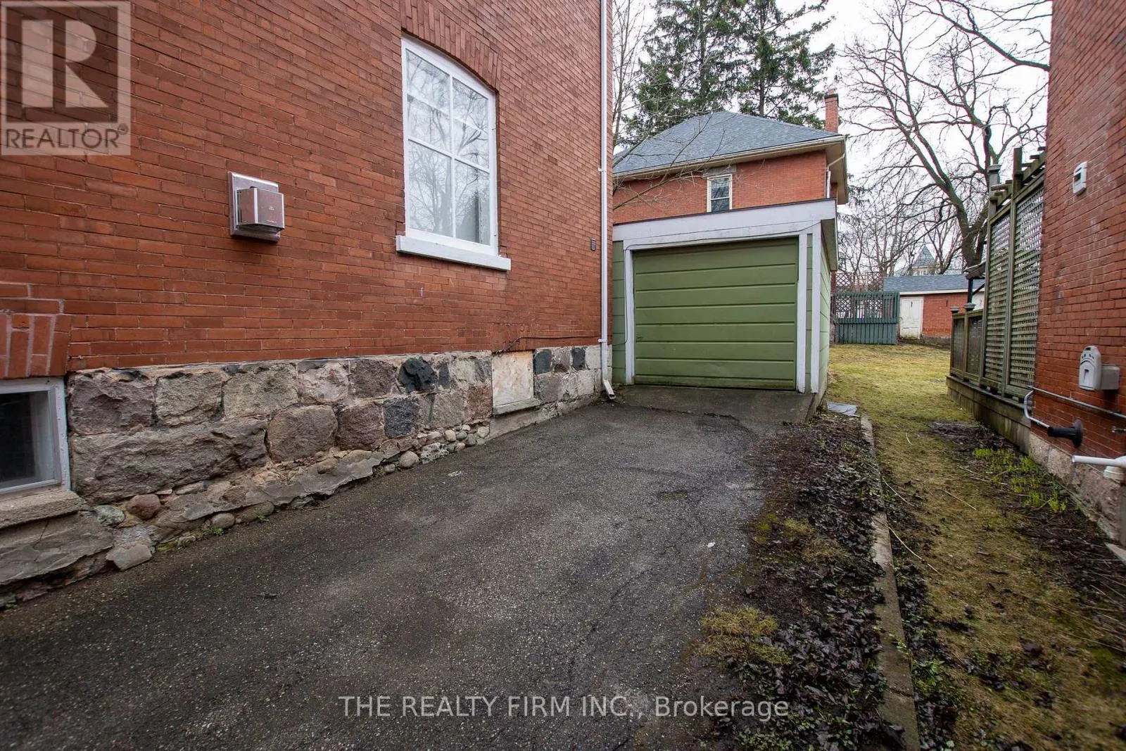 Birmingham St Timeless Character Meets Modern Living in the Heart of Stratford. Step back in time without sacrificing modern comfort in this distinguished 2.5-storey red brick century home. Nestled in one of Stratford's most established neighborhoods, this property perfectly captures the city's unique blend of cultural heritage and contemporary flair. From the moment you see the expansive wraparound veranda, you'll imagine summer evenings spent just blocks away from the Avon River and Stratford's world-renowned theaters.Inside, the home preserves its classic character while boasting a fresh, stylish interior. Recent updates include new vinyl flooring on the main level, a dedicated coffee bar in the updated kitchen, and a warm fireplace in the living room perfect for cozying up after a show at the Festival Theatre. With four spacious bedrooms, refreshed bathrooms, and a convenient stacked washer and dryer, there is ample room for a growing family to make lasting memories. While it shines as a stately family residence, this property offers incredible versatility for the savvy buyer. The R2 zoning and separate entrance provide a prime opportunity for duplex conversion, while the detached garage has been fully transformed with insulation, drywall, pot lights, and its own heating and cooling system-making it an ideal studio or home office. Backed by a strong history of generating $4,500 per month in rental income and featuring a well-maintained furnace and A/C (approx. 10 years old), this property is a rare find. Experience the perfect marriage of classic elegance and modern convenience in the heart of Ontario's premier arts community. (id:27476)