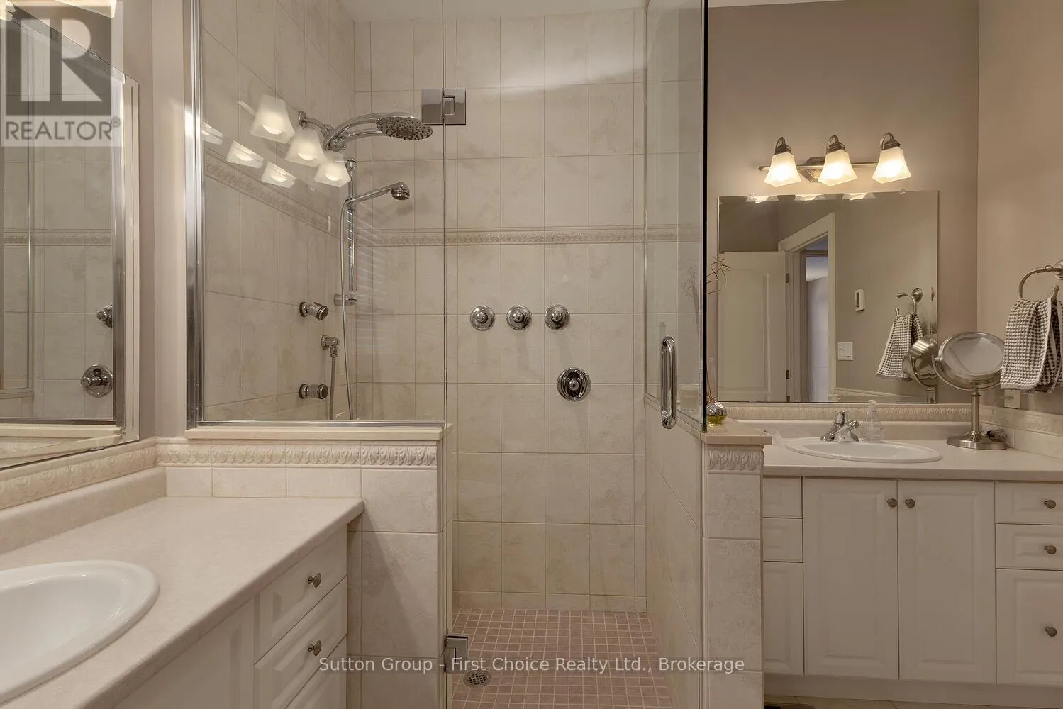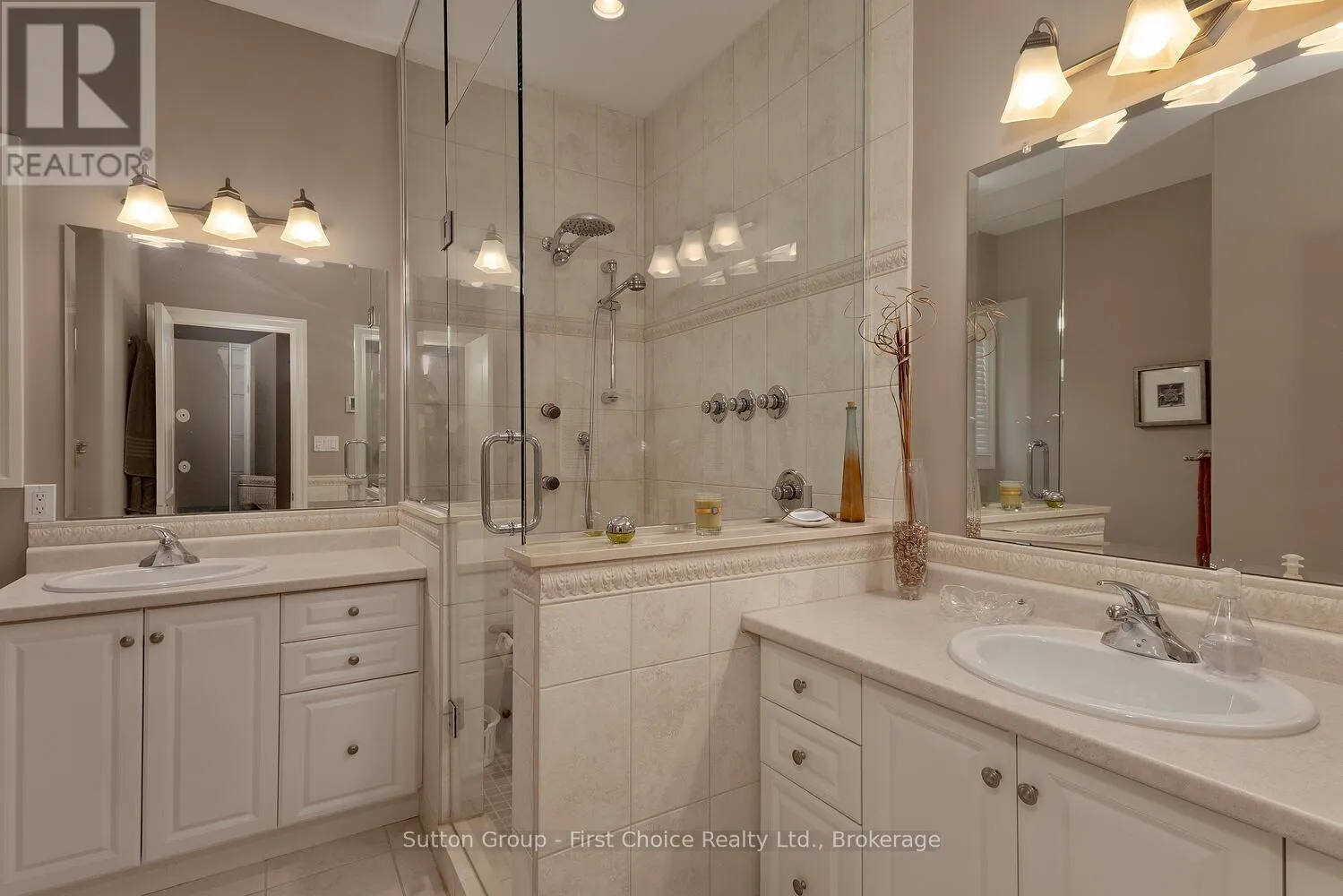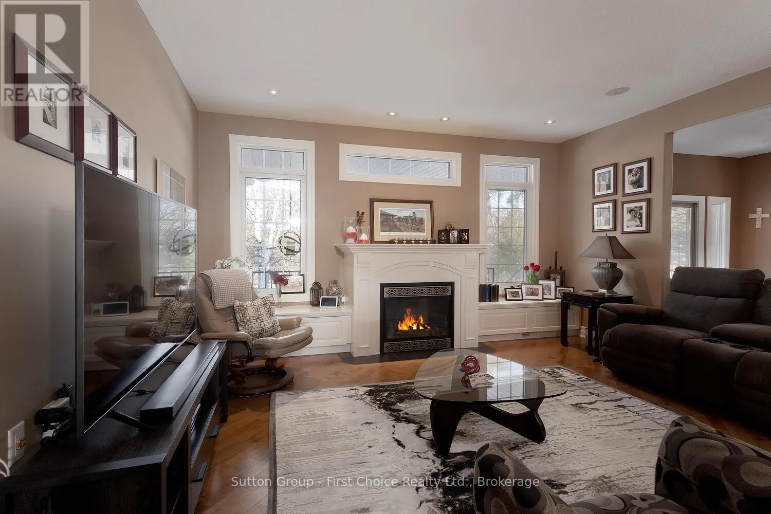 Cross Streets: Romeo Street. ** Directions: From Romeo Street turn into North Pointe Subdivision, follow the road around. Welcome to North Pointe Estates, nestled in the heart of a private and exclusive neighbourhood. This beautifully appointed home offers an exceptional blend of luxury, comfort, and privacy. Upon entry, you are welcomed into an inviting open-concept living space that seamlessly connects the living room, dining area, and kitchen, ideal for both everyday living and entertaining. The living room is anchored by a cozy gas fireplace and features charming window seats with convenient pull-out storage and hardwood floors. Expansive windows flood the space with natural light while offering peaceful views of the greenspace beyond. The kitchen is thoughtfully designed with ample solid-wood cabinetry, granite countertops, and stainless-steel appliances, complemented by a dinette or sitting area with tiled flooring. A large patio door opens to the rear yard, showcasing serene views of nature, mature trees, and local wildlife. This bungalow offers a main floor laundry, two generously sized bedrooms, including a spacious primary suite complete with a luxurious en-suite featuring his-and-hers sinks, a shower with massage jets, and in-floor heating. The lower level adds even more living space with a large entertainment room, a third bedroom, a 3-piece bathroom, and plenty of room for future development or storage. Don't miss the opportunity to make this exceptional property your own. Schedule your private viewing today. (id:27476)
