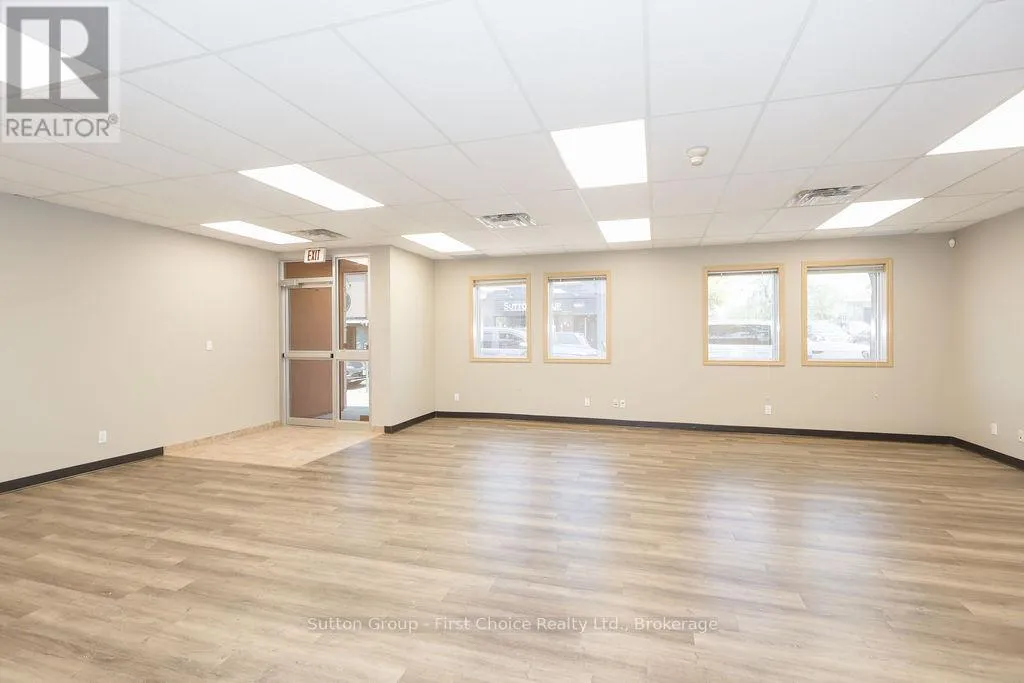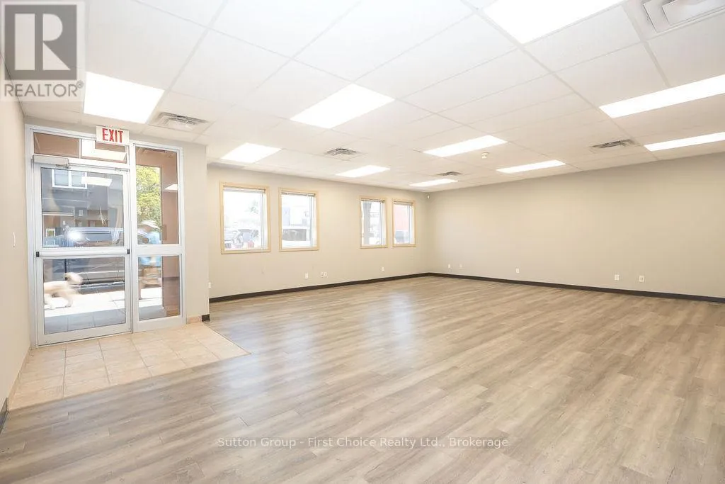 Cross Streets: St. Patrick. ** Directions: Downie St. across from Sutton Group. Elevate your business in the heart of Stratford's downtown core. This professional, single-level office suite offers a turnkey solution for legal, financial, or creative firms seeking a high-visibility, accessible location. The versatile floor plan features several private executive offices, a spacious boardroom (or open-concept bullpen), a functional kitchenette, and accessible washrooms. Uniquely positioned for convenience, this unit for lease includes two exclusive on-site parking spaces-a rare find downtown-with close proximity to the expansive free parking at the Cooper Lot. Your team and clients will enjoy effortless access to City Hall, the Court Houses, the Post Office, and the city's vibrant shops and restaurants. While currently optimized for professional services, alternate commercial uses will be considered. The Landlord is willing to work with a new Tenant to renovate the space as desired. Position your brand where the action is. Contact your trusted REALTOR to book a private tour and explore the potential of this premier space. (id:27476)