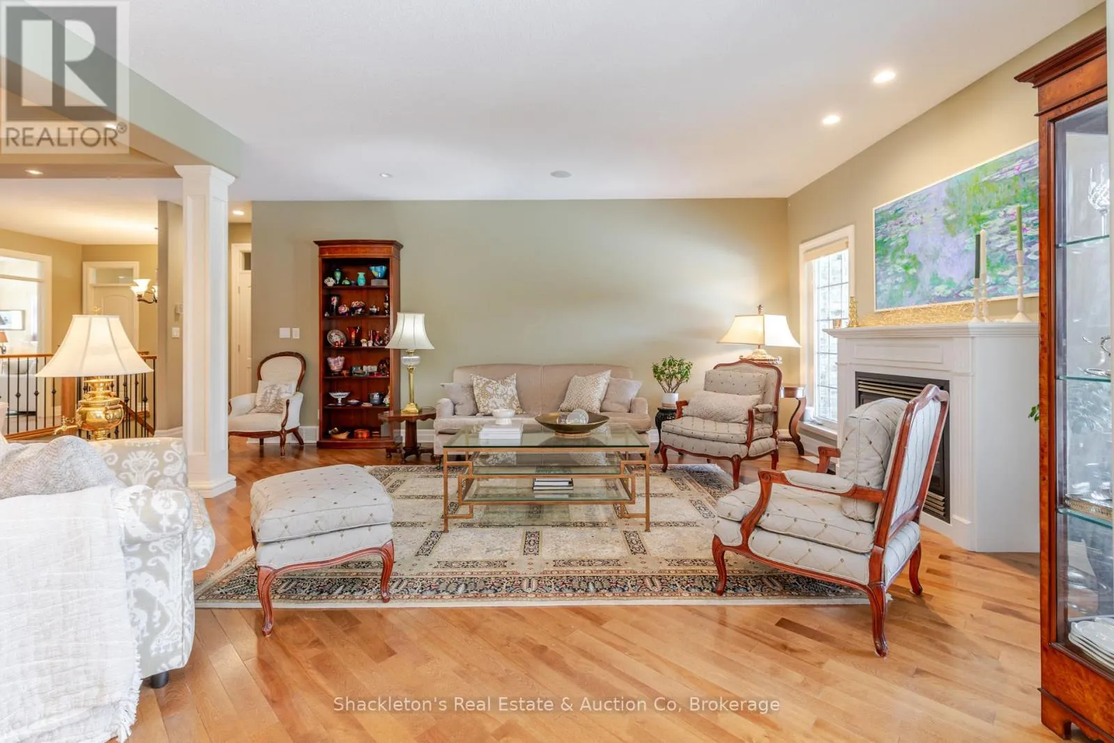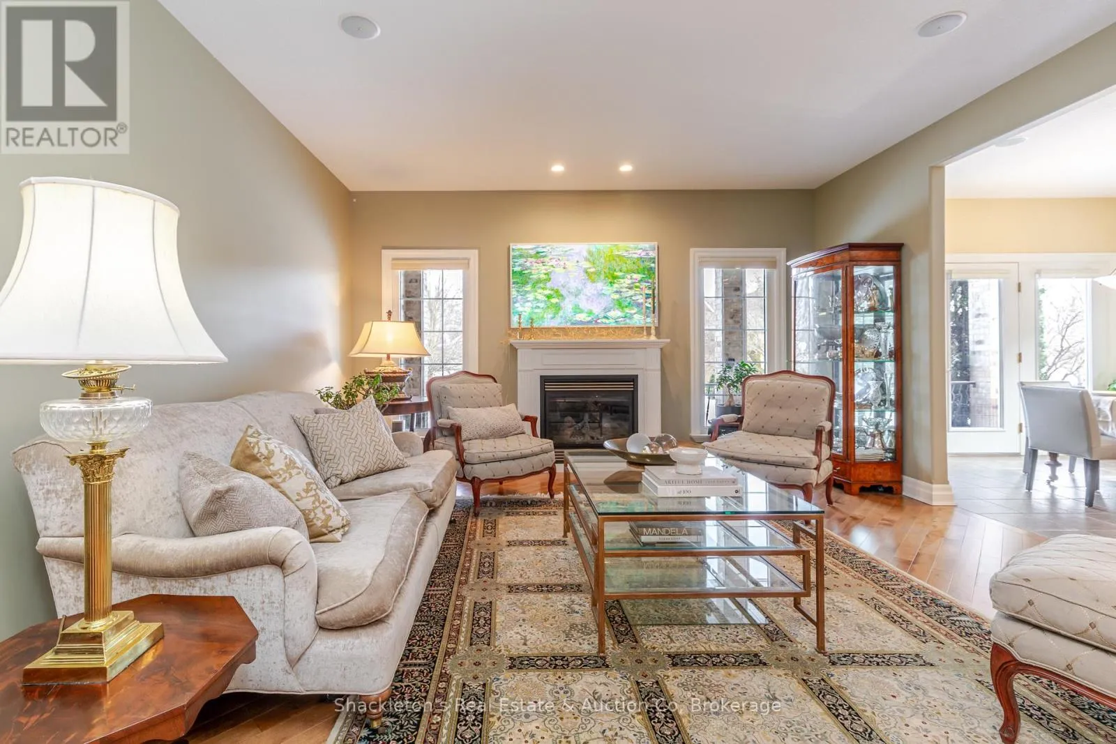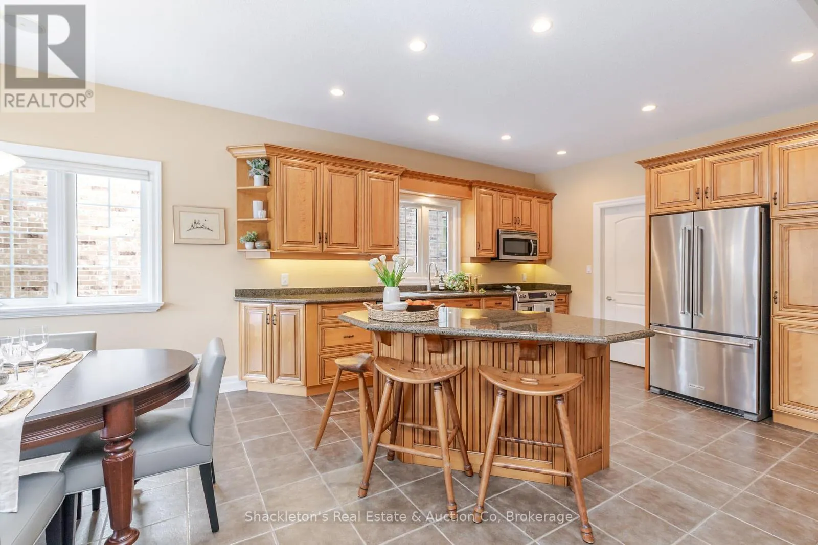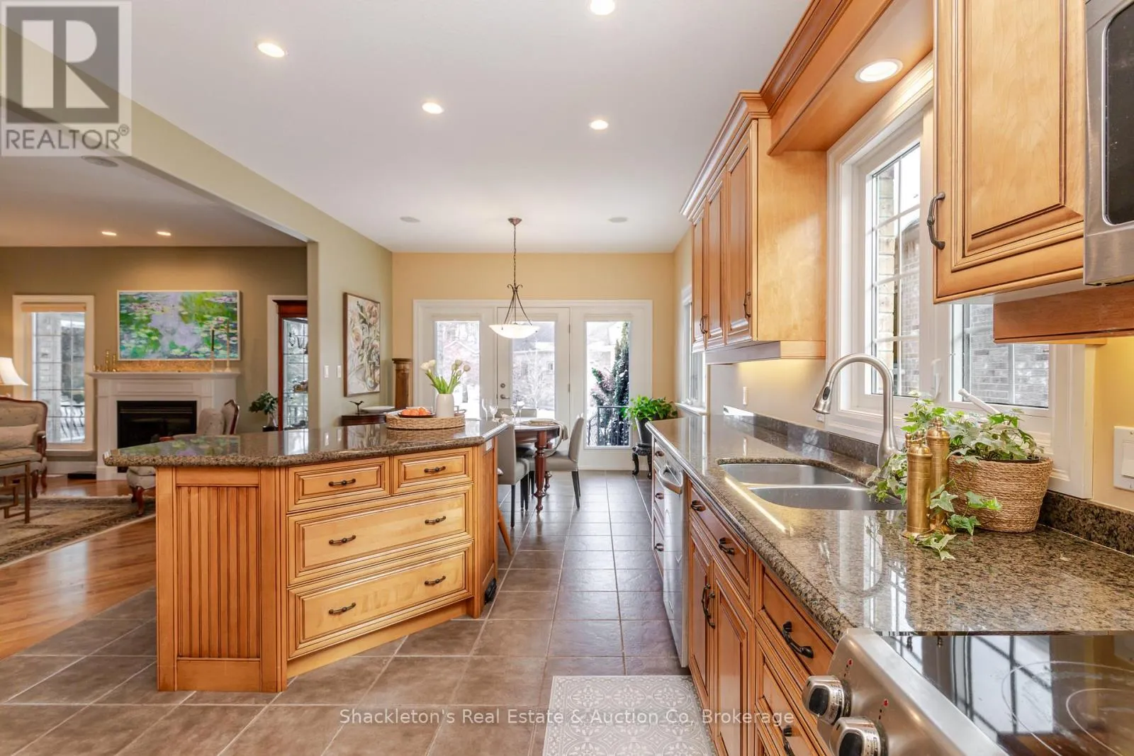Cross Streets: Romeo Street. ** Directions: Romeo Street to North Pointe. Tucked into the sought-after community of North Pointe Drive, this well-appointed bungalow delivers effortless main-floor living with space to grow. Offering approximately 1,700 sq. ft. on the main level, the design balances openness with defined living areas that feel both welcoming and functional. Step inside to rich hardwood flooring and an inviting front living space anchored by a gas fireplace ~ perfect for cozy evenings at home. The adjoining dining area flows naturally into a bright kitchen finished with granite countertops and a casual eat-in nook. Just beyond, a covered concrete deck extends your living outdoors, creating an ideal setting for morning coffee, summer dinners, or quiet evenings under cover. Practical touches make everyday life easier, including main-floor laundry and a convenient powder room for guests. The primary suite is thoughtfully positioned for comfort, featuring a walk-in closet, private access to the covered back deck, and a well-appointed 4-piece ensuite. The fully finished lower level adds impressive additional space with a generous recreation room warmed by a second gas fireplace. Two additional bedrooms and a 3-piece bath offer flexibility for guests, family, or a home office. A substantial cold room and plentiful storage complete the lower level. Enjoy a low-maintenance lifestyle with lawn care and snow removal handled for you. Located close to amenities and commuter routes, this property offers the ease of bungalow living without compromise. (id:27476)