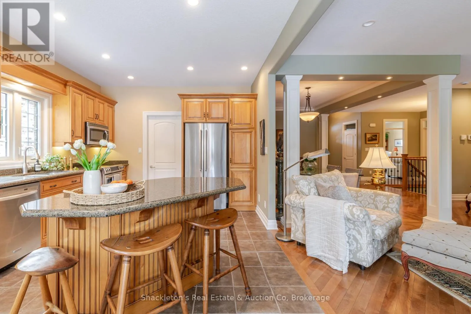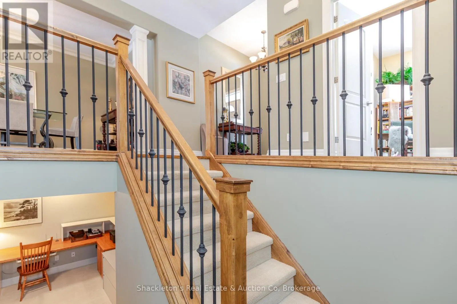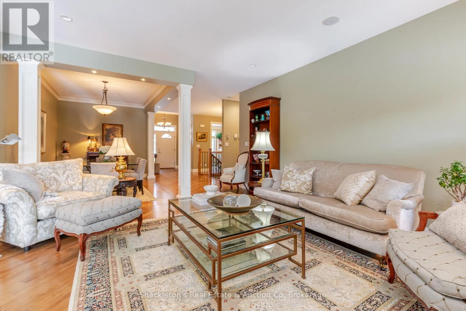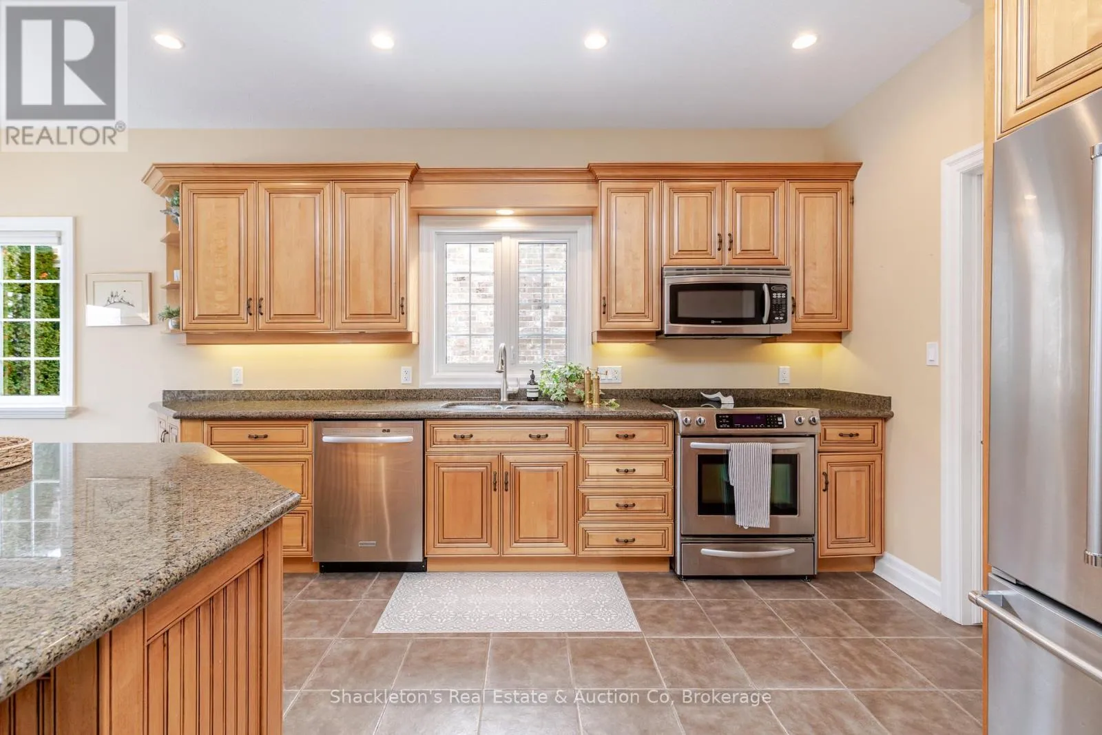 Cross Streets: Romeo Street. ** Directions: Romeo Street to North Pointe. Tucked into the sought-after community of North Pointe Drive, this well-appointed bungalow delivers effortless main-floor living with space to grow. Offering approximately 1,700 sq. ft. on the main level, the design balances openness with defined living areas that feel both welcoming and functional. Step inside to rich hardwood flooring and an inviting front living space anchored by a gas fireplace ~ perfect for cozy evenings at home. The adjoining dining area flows naturally into a bright kitchen finished with granite countertops and a casual eat-in nook. Just beyond, a covered concrete deck extends your living outdoors, creating an ideal setting for morning coffee, summer dinners, or quiet evenings under cover. Practical touches make everyday life easier, including main-floor laundry and a convenient powder room for guests. The primary suite is thoughtfully positioned for comfort, featuring a walk-in closet, private access to the covered back deck, and a well-appointed 4-piece ensuite. The fully finished lower level adds impressive additional space with a generous recreation room warmed by a second gas fireplace. Two additional bedrooms and a 3-piece bath offer flexibility for guests, family, or a home office. A substantial cold room and plentiful storage complete the lower level. Enjoy a low-maintenance lifestyle with lawn care and snow removal handled for you. Located close to amenities and commuter routes, this property offers the ease of bungalow living without compromise. (id:27476)