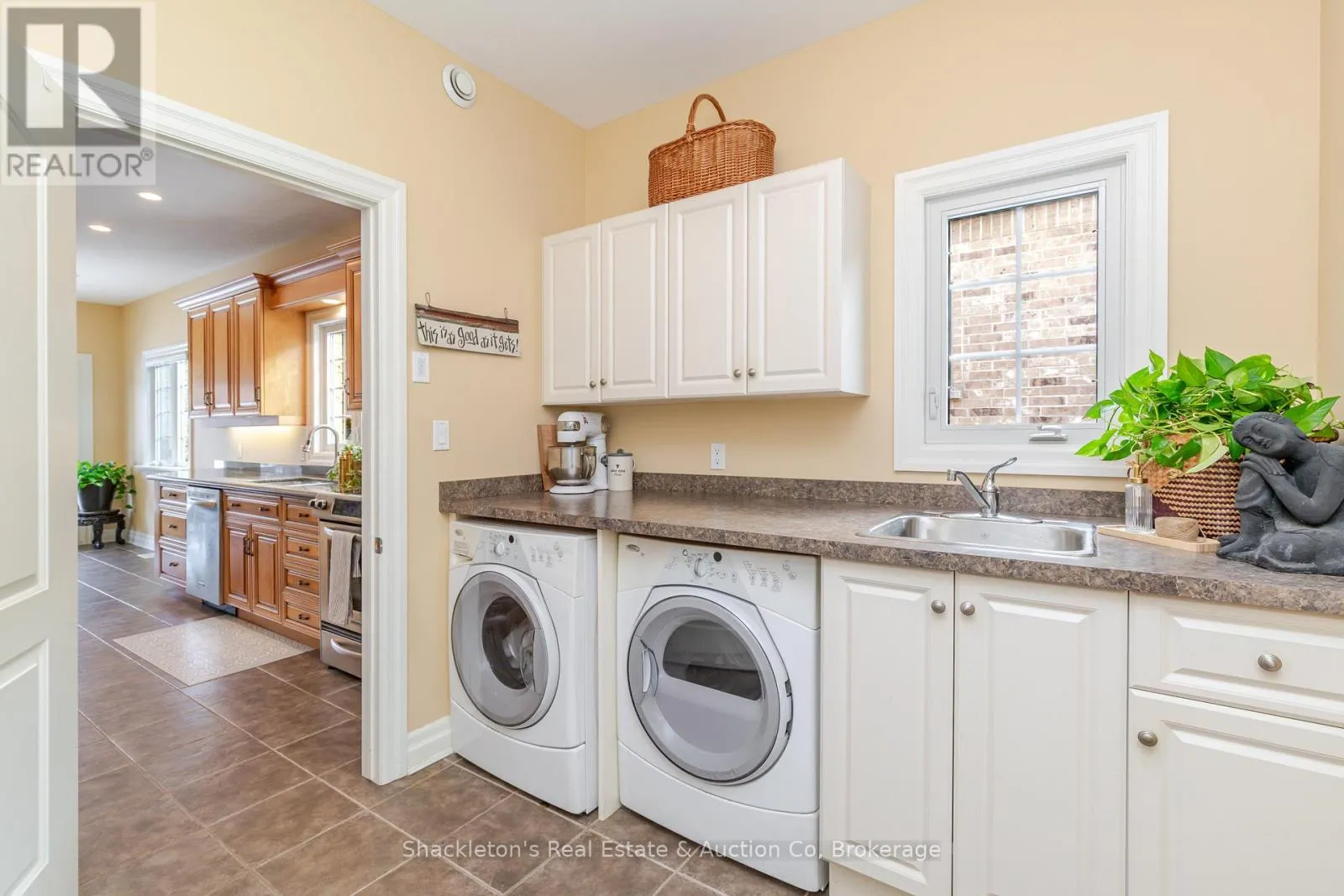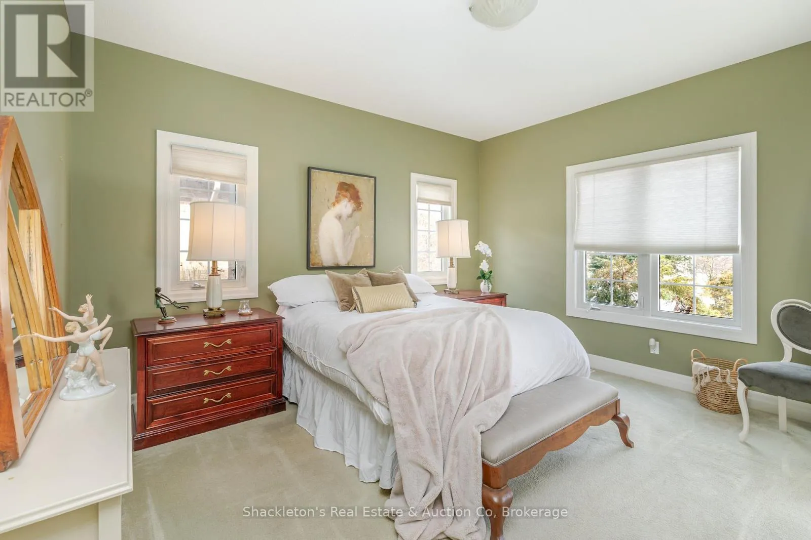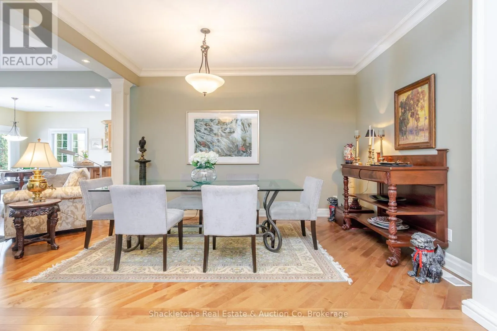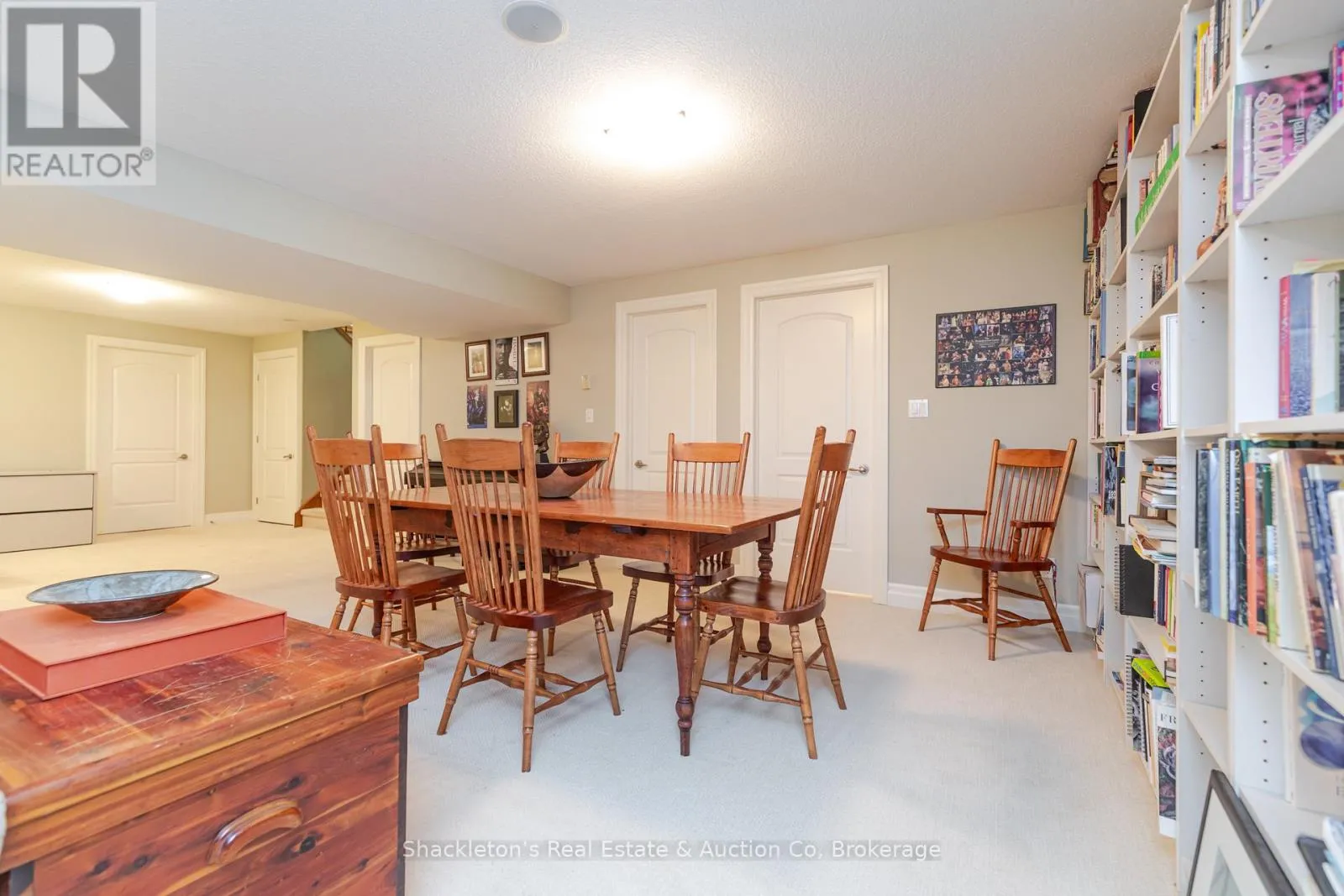 Cross Streets: Romeo Street. ** Directions: Romeo Street to North Pointe. Tucked into the sought-after community of North Pointe Drive, this well-appointed bungalow delivers effortless main-floor living with space to grow. Offering approximately 1,700 sq. ft. on the main level, the design balances openness with defined living areas that feel both welcoming and functional. Step inside to rich hardwood flooring and an inviting front living space anchored by a gas fireplace ~ perfect for cozy evenings at home. The adjoining dining area flows naturally into a bright kitchen finished with granite countertops and a casual eat-in nook. Just beyond, a covered concrete deck extends your living outdoors, creating an ideal setting for morning coffee, summer dinners, or quiet evenings under cover. Practical touches make everyday life easier, including main-floor laundry and a convenient powder room for guests. The primary suite is thoughtfully positioned for comfort, featuring a walk-in closet, private access to the covered back deck, and a well-appointed 4-piece ensuite. The fully finished lower level adds impressive additional space with a generous recreation room warmed by a second gas fireplace. Two additional bedrooms and a 3-piece bath offer flexibility for guests, family, or a home office. A substantial cold room and plentiful storage complete the lower level. Enjoy a low-maintenance lifestyle with lawn care and snow removal handled for you. Located close to amenities and commuter routes, this property offers the ease of bungalow living without compromise. (id:27476)
