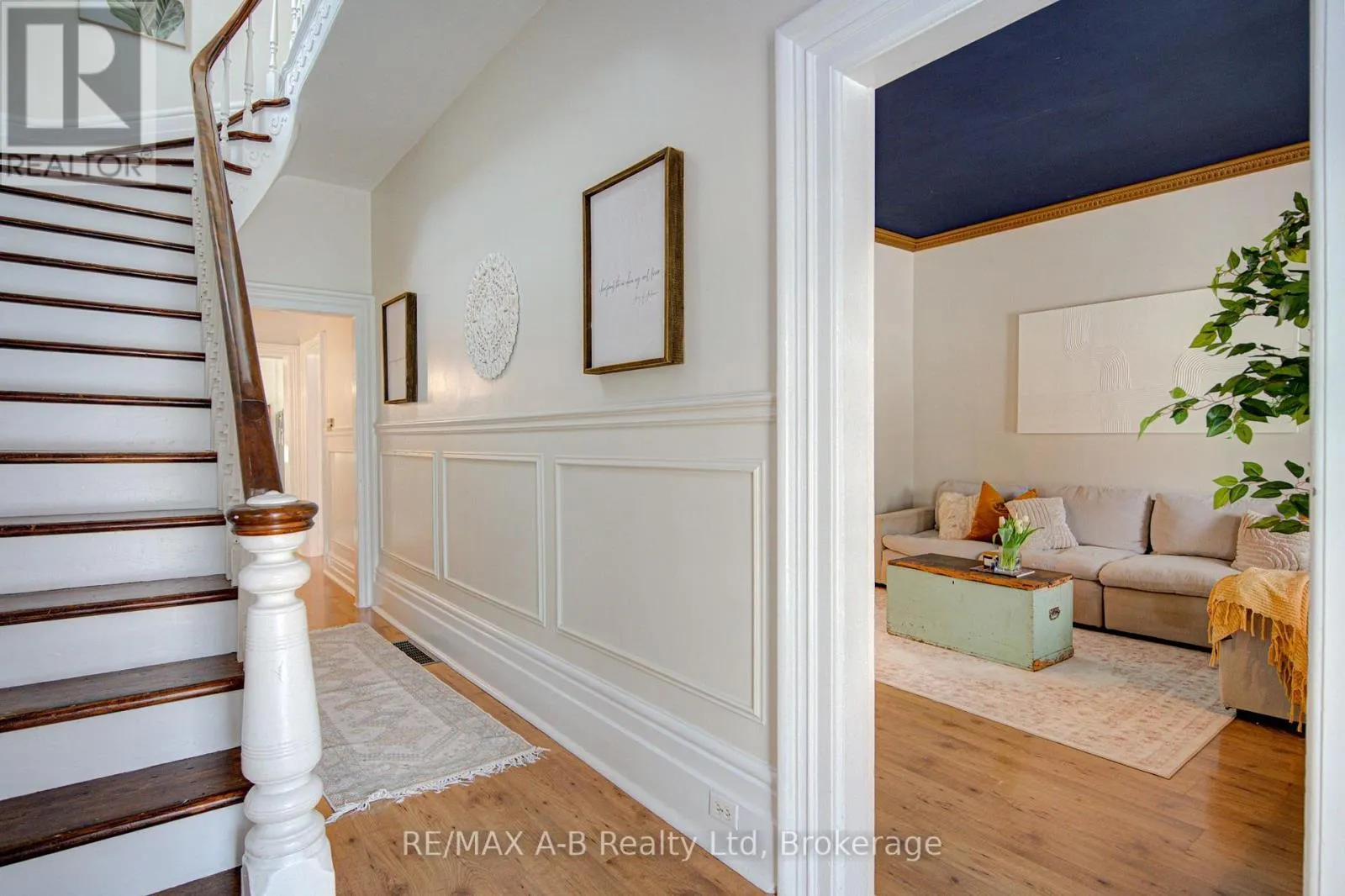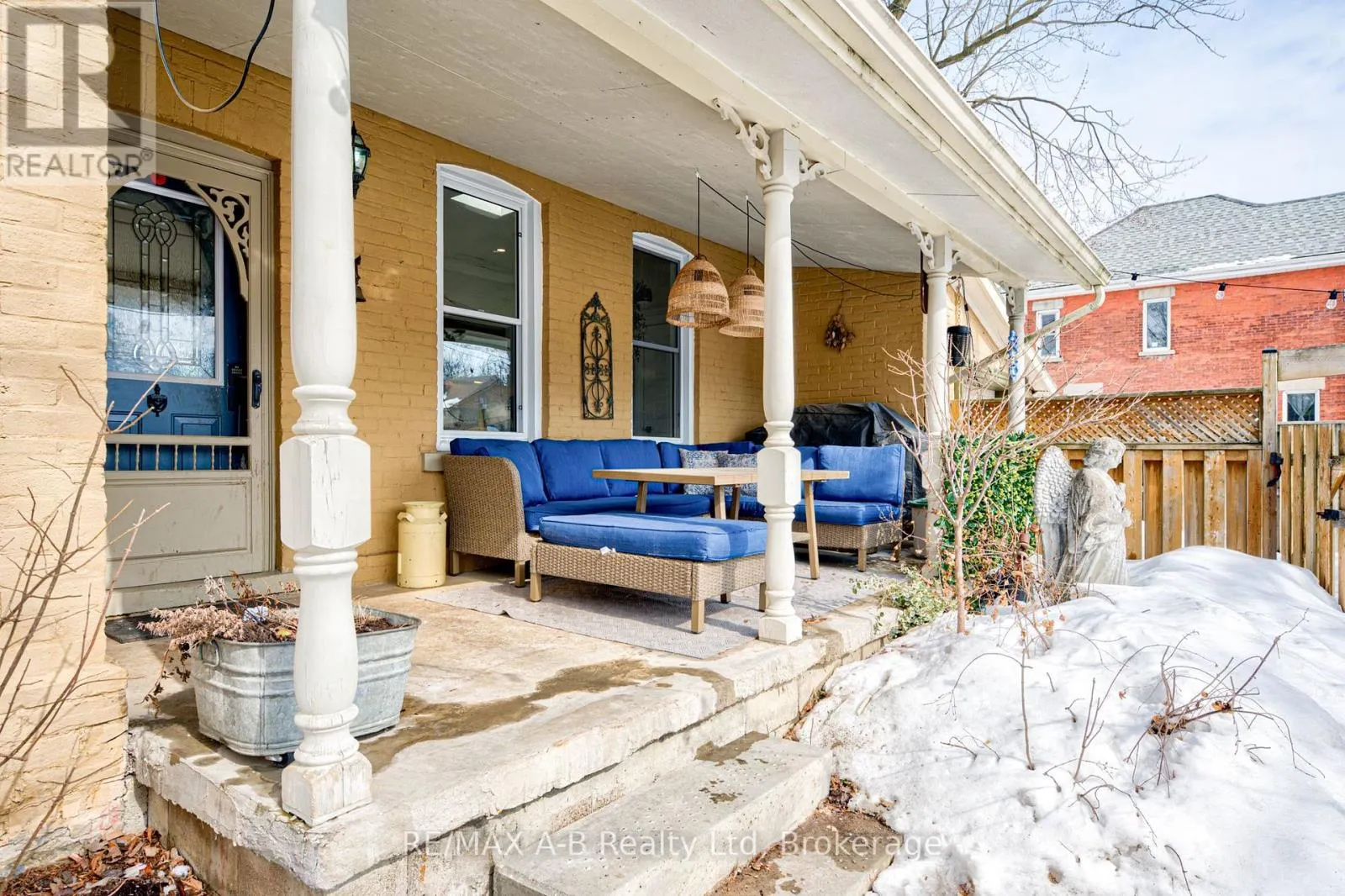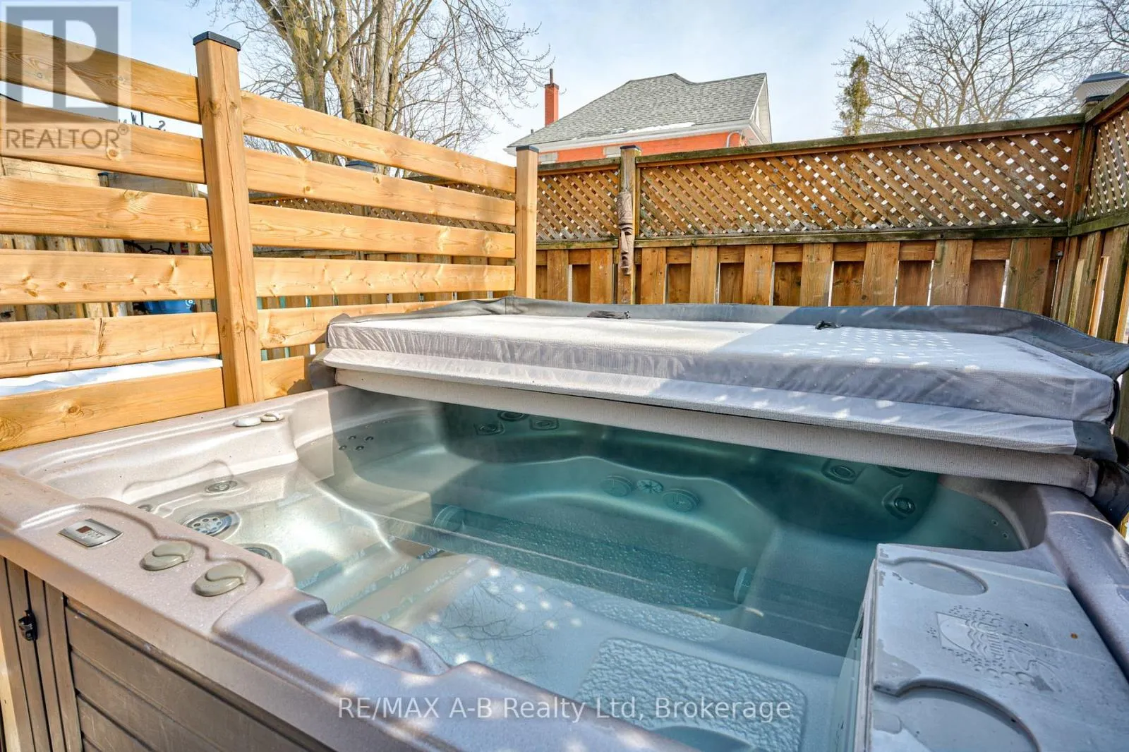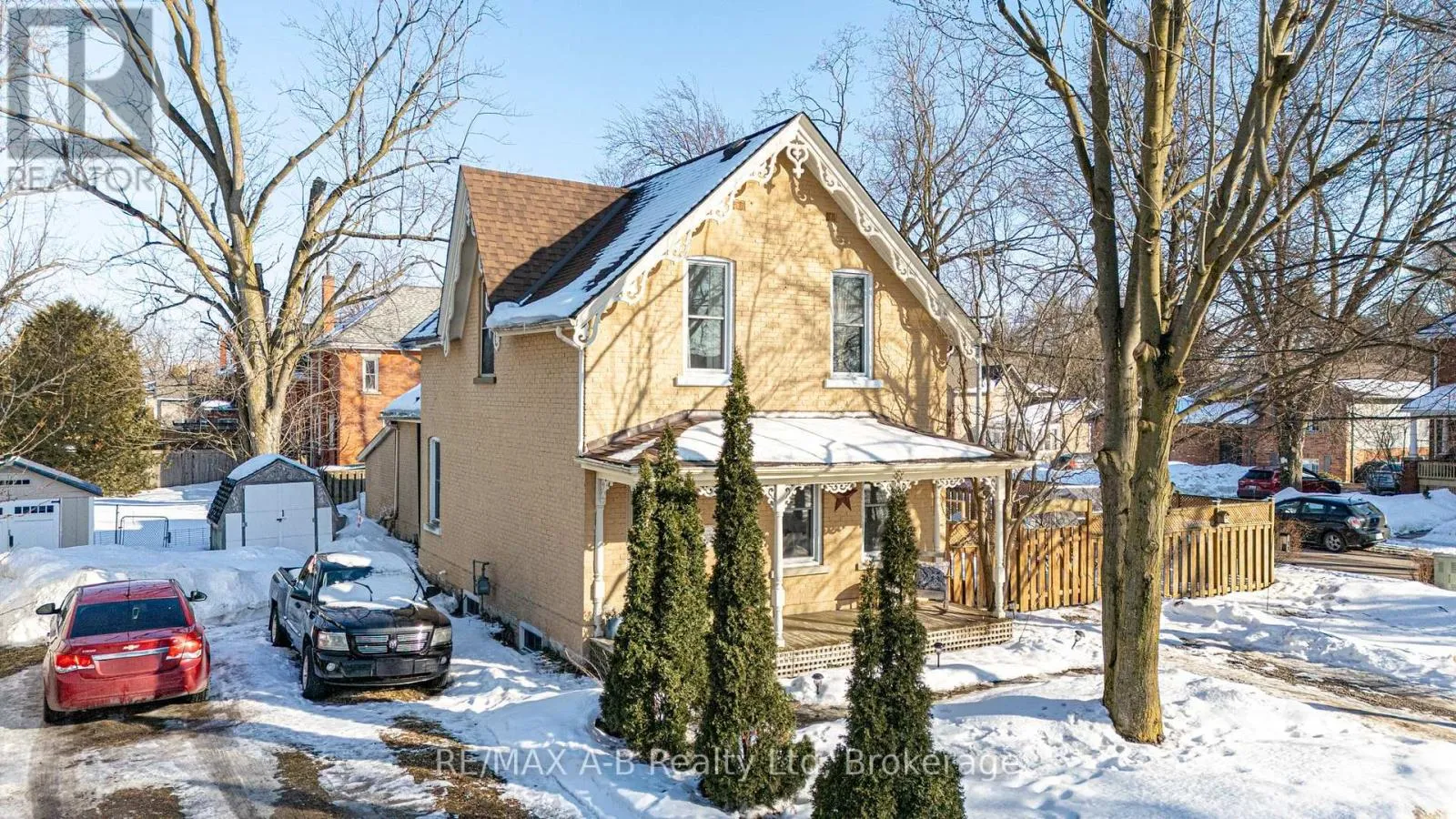Cross Streets: Nile and East Gore. ** Directions: Turn right off Downie onto East Gore. Spring is in the air with charm and a corner lot in the heart of Old Stratford; from the moment you step into the spacious foyer, you're greeted by original stair rails, beautiful craftsmanship, and tasteful updates that speak to character and history. The main level offers a large living room and dining room, thoughtfully designed with a calm, elegant feel - the perfect setting to host your favourite friends and family or enjoy quiet evenings at home. A kitchen made for gathering the true heart of the home, overlooking the side yard and lush gardenscape. Upstairs, a generous primary bedroom that comfortably fits a king-size bed , and two more bedrooms that accomodate queens. The home features a large main bathroom complete with a stand-up shower and relaxing jacuzzi tub, plus a convenient main floor powder room. Outside you have a beautifully designed outdoor living space featuring a large flagstone patio walkway, an inviting outdoor fireplace and hot tub, ideal for evening gatherings, a covered side porch overlooking mature gardens this backyard is designed to enjoy every season, as-well as convenient access to the home with both a front and rear driveways. Don't wait on this one, get in before the spring rush! (id:27476)