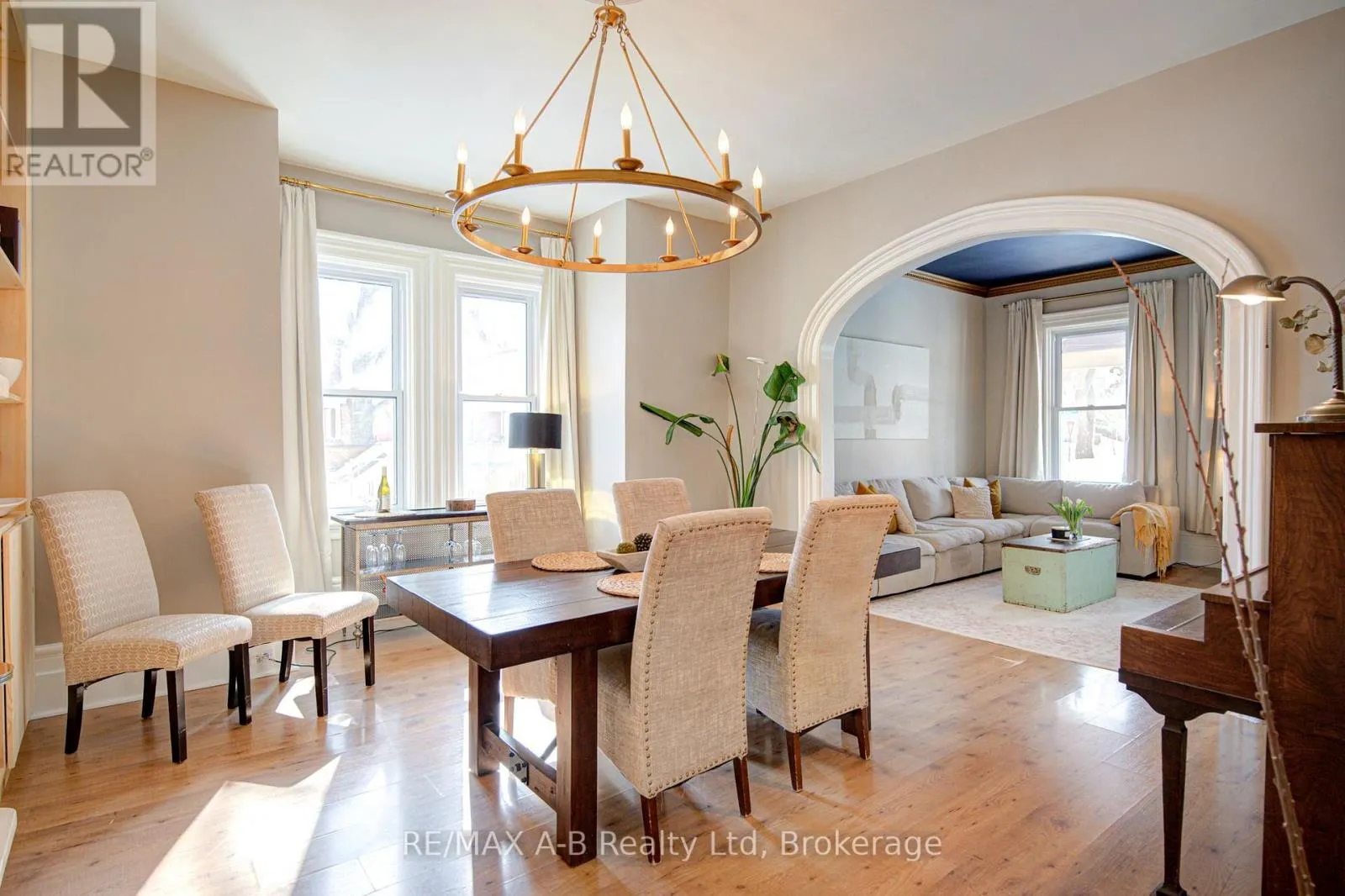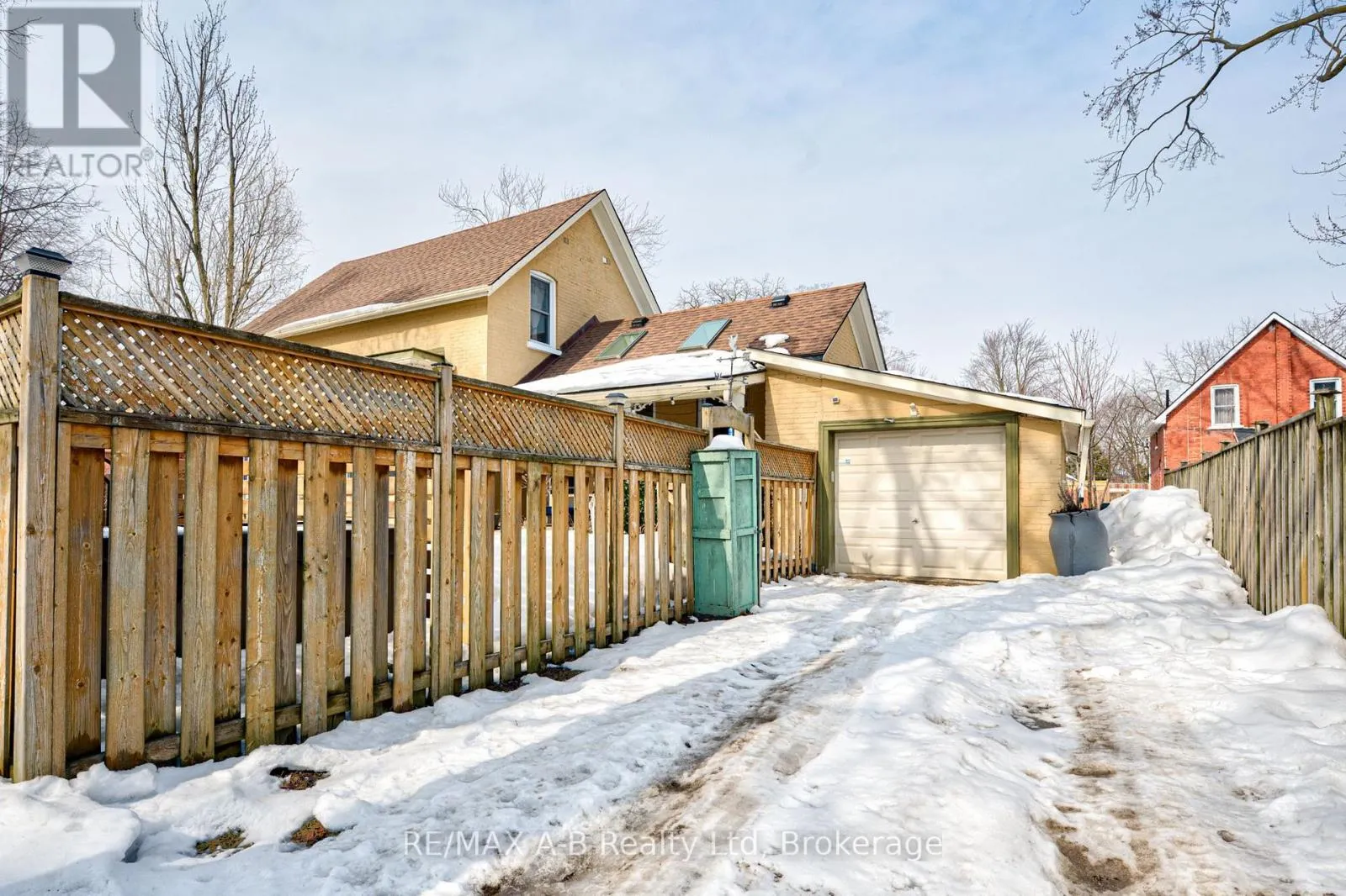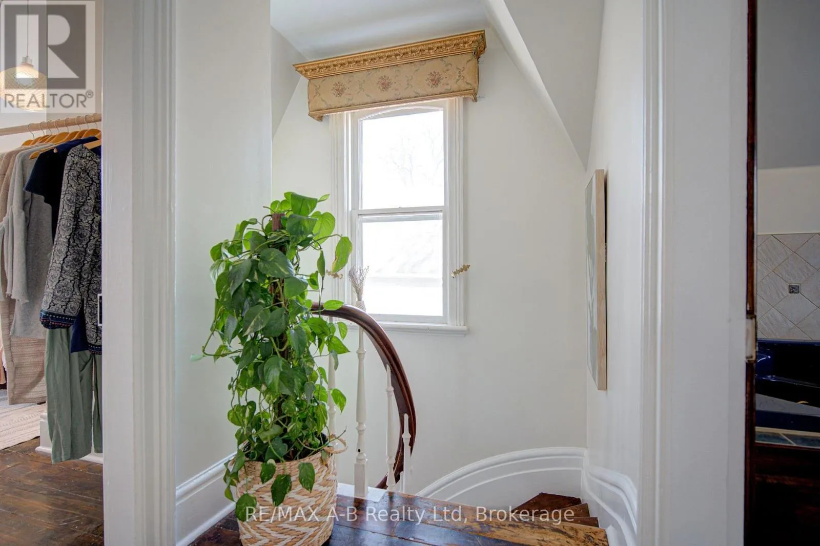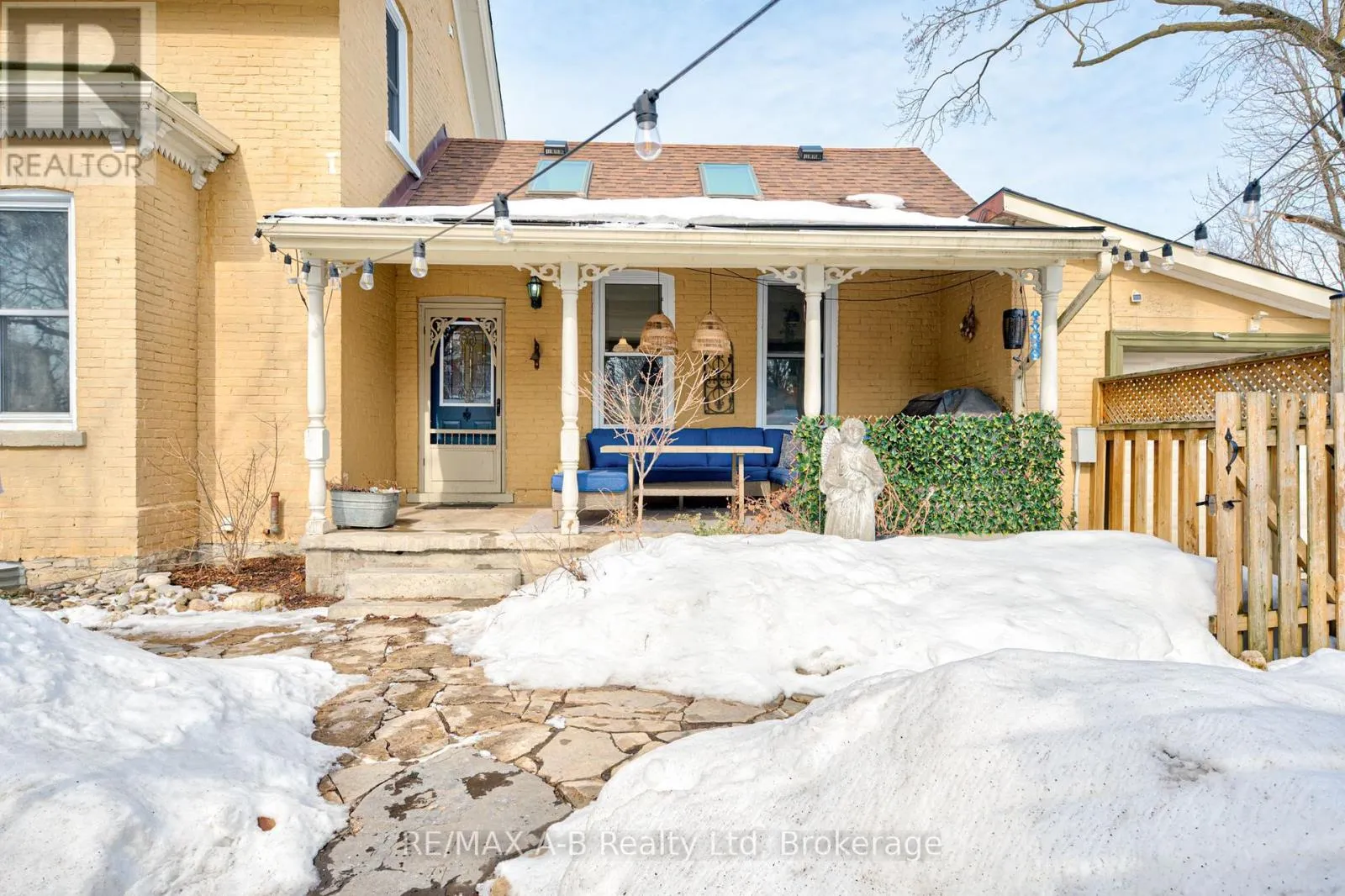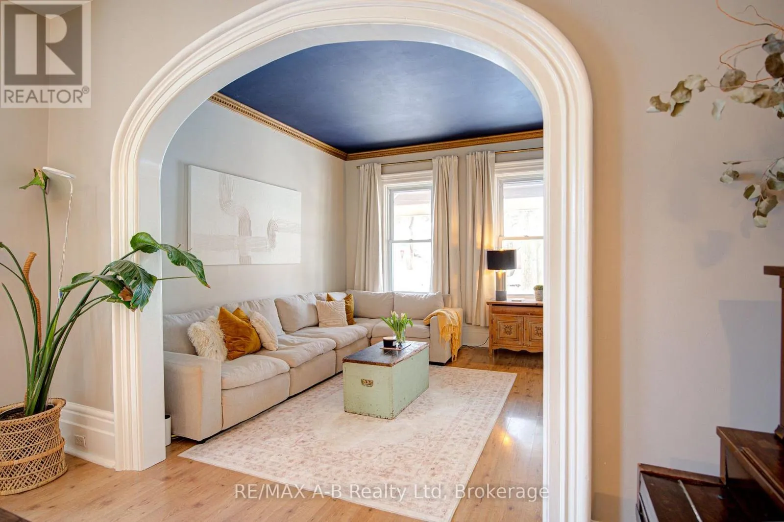 Cross Streets: Nile and East Gore. ** Directions: Turn right off Downie onto East Gore. Spring is in the air with charm and a corner lot in the heart of Old Stratford; from the moment you step into the spacious foyer, you're greeted by original stair rails, beautiful craftsmanship, and tasteful updates that speak to character and history. The main level offers a large living room and dining room, thoughtfully designed with a calm, elegant feel - the perfect setting to host your favourite friends and family or enjoy quiet evenings at home. A kitchen made for gathering the true heart of the home, overlooking the side yard and lush gardenscape. Upstairs, a generous primary bedroom that comfortably fits a king-size bed , and two more bedrooms that accomodate queens. The home features a large main bathroom complete with a stand-up shower and relaxing jacuzzi tub, plus a convenient main floor powder room. Outside you have a beautifully designed outdoor living space featuring a large flagstone patio walkway, an inviting outdoor fireplace and hot tub, ideal for evening gatherings, a covered side porch overlooking mature gardens this backyard is designed to enjoy every season, as-well as convenient access to the home with both a front and rear driveways. Don't wait on this one, get in before the spring rush! (id:27476)