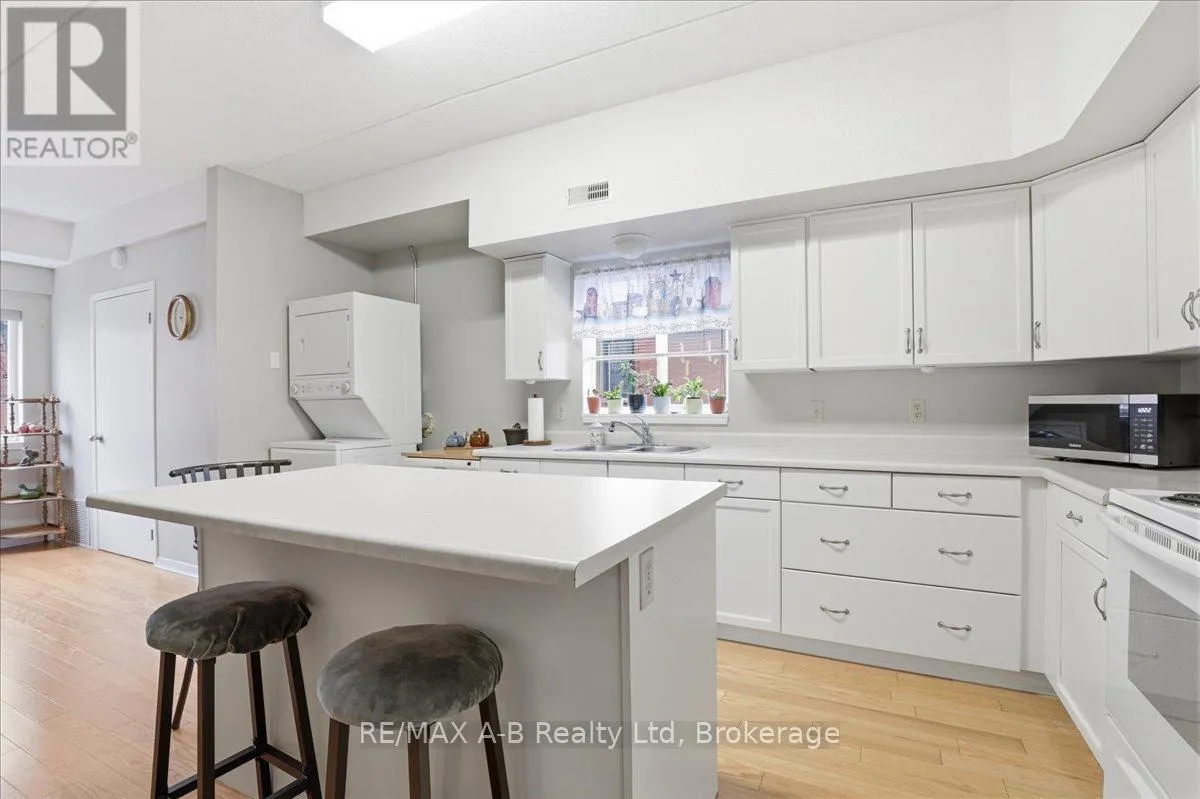 St Patrick & Church st Discover this charming two-bedroom condo just one block from Downtown Stratford, where you can enjoy easy access to local restaurants, shops, and everyday conveniences. This bright and spacious unit features an open-concept layout that seamlessly connects the kitchen, dining, and living areas-perfect for both relaxing and entertaining. Large windows fill the space with natural light, while the well-designed kitchen offers ample counter space for cooking and hosting. Additional highlights include covered parking, a dedicated storage locker, and soundproof block construction for added comfort and privacy. Set in a welcoming community with friendly neighbors, this is a rare opportunity to own a beautifully maintained home at an exceptional value. (id:27476)