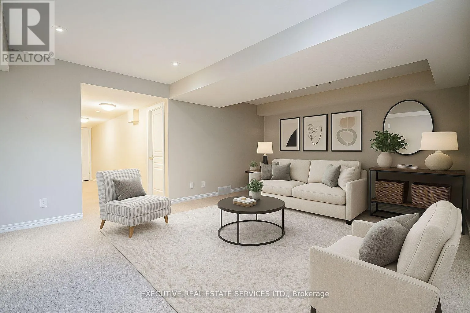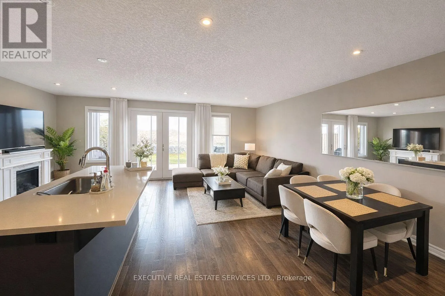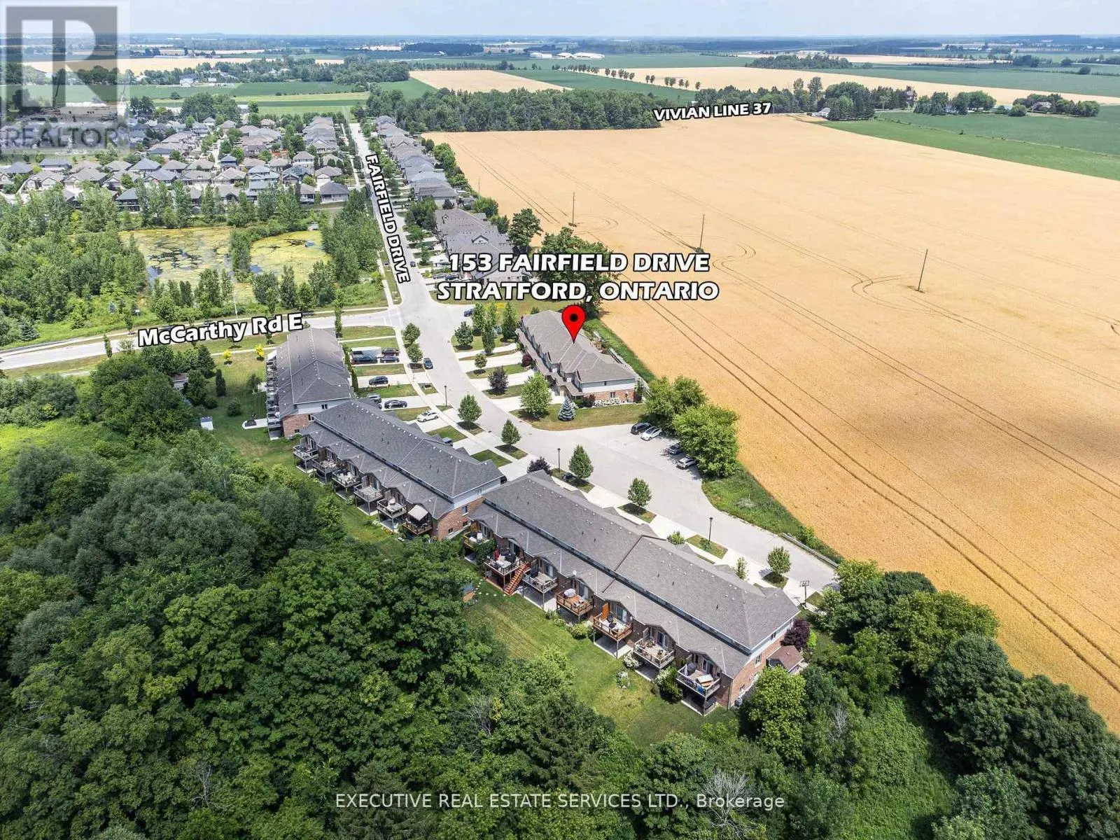 Cross Streets: Fairfield at McCarthy. ** Directions: South End of Fairfield at McCarthy. Beautifully upgraded townhouse in a desirable Stratford neighborhood with no house at the back, offering rare privacy and open views of green space. (Photos are virtually staged for visualization purposes.) This move-in-ready home features high ceilings and dimmable pot lights throughout the main floor and basement, creating a warm and inviting ambiance.The upgraded kitchen includes ceiling-height cabinetry, brand-new stainless steel stove and dishwasher, and a spacious layout perfect for both daily living and entertaining. Enjoy the elegance of hardwood flooring throughout and a curtain-free design that allows natural light to pour in.The finished basement includes a 3-piece washroom, providing extra space for guests, a home office, or recreation. Upstairs, the massive primary bedroom features a walk-in closet, while the other two bedrooms boast beautiful views of an open field.Garage includes built-in storage and is equipped with Tesla charger installed. Driveway fits 2 cars with room for 1 more in the garage. Located just 5 minutes from Stratford Hospital, Walmart, and all major amenities, this is the perfect home for families or professionals seeking comfort, space, and convenience. (id:27476)
