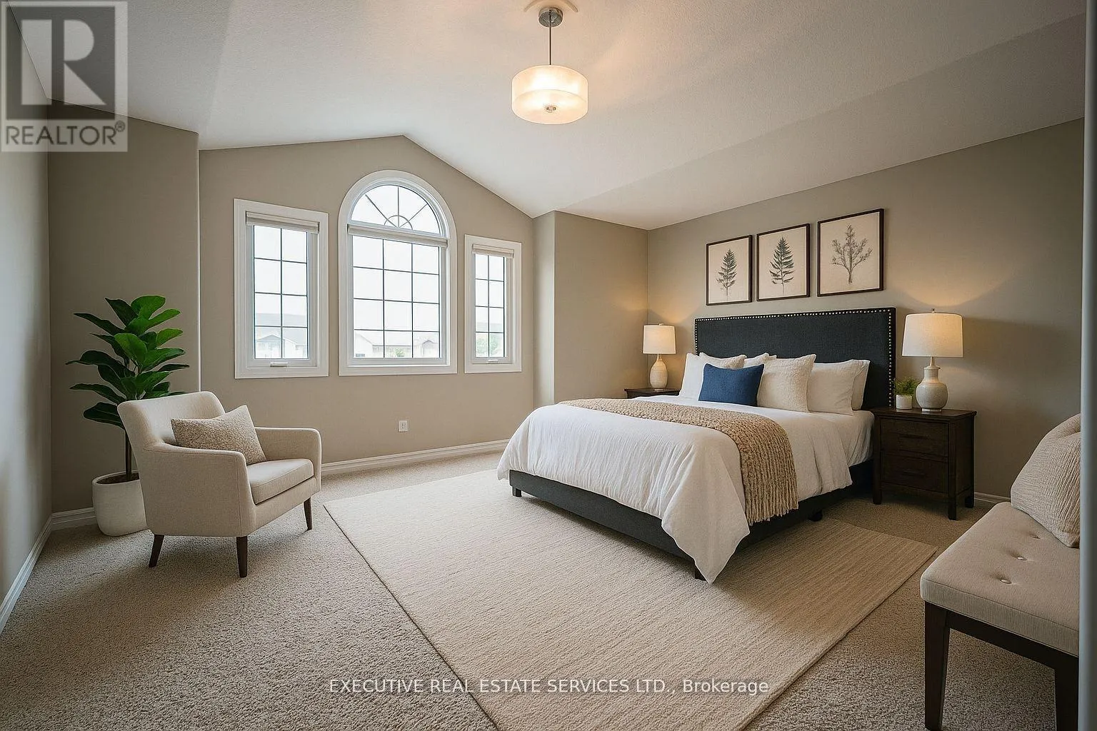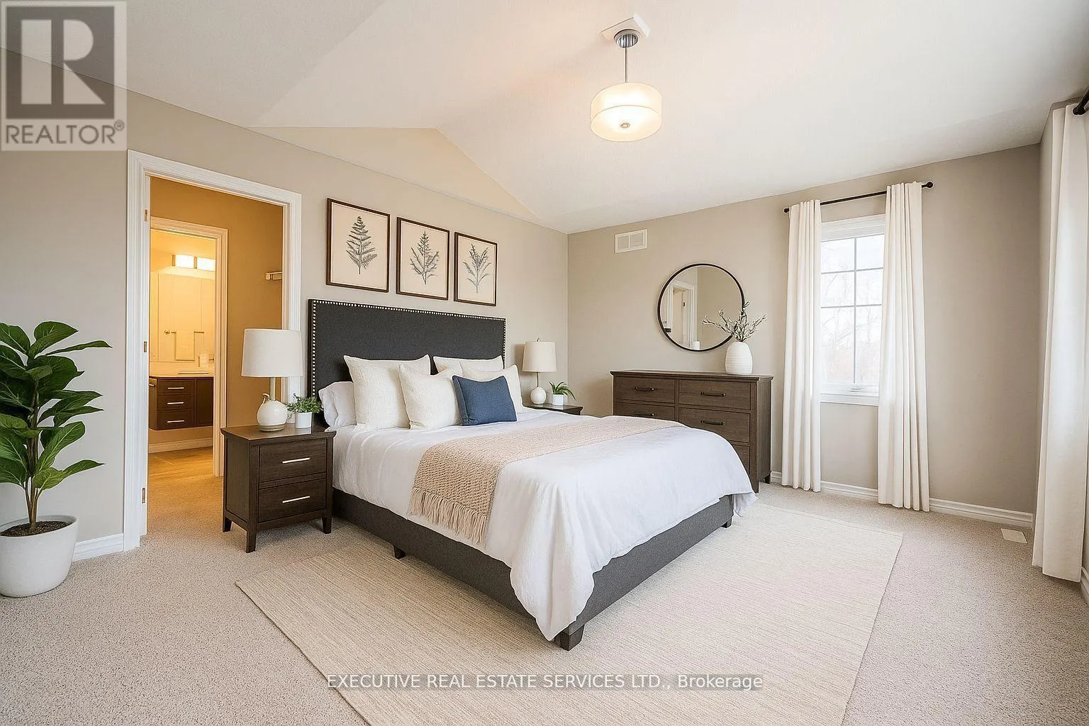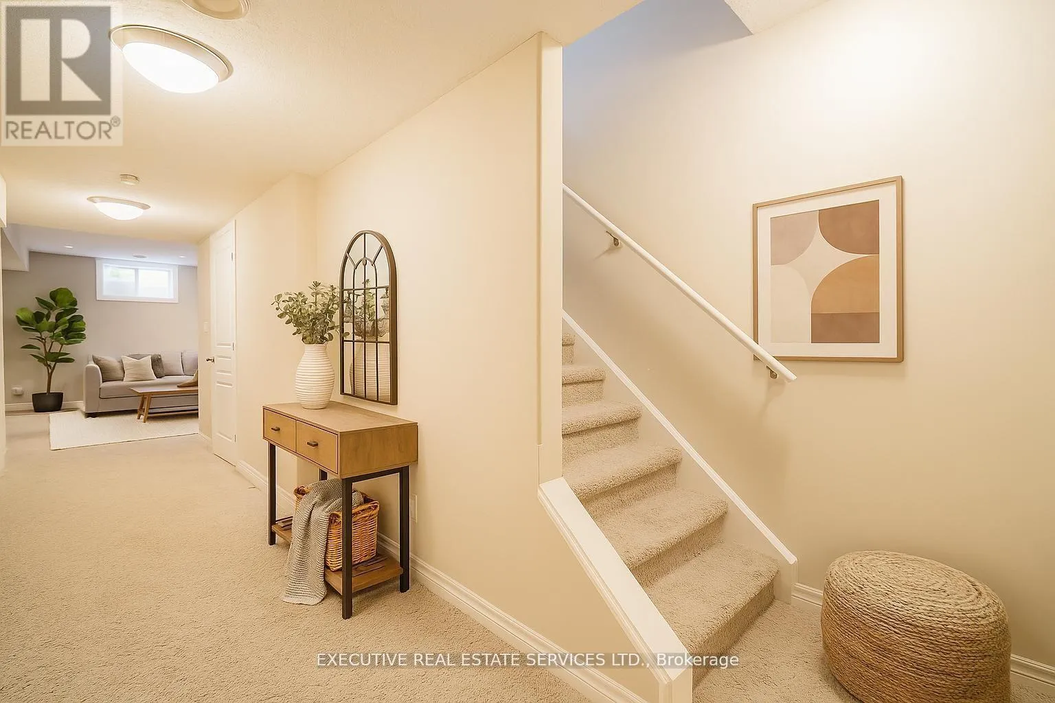 Cross Streets: Fairfield at McCarthy. ** Directions: South End of Fairfield at McCarthy. Beautifully upgraded townhouse in a desirable Stratford neighborhood with no house at the back, offering rare privacy and open views of green space. (Photos are virtually staged for visualization purposes.) This move-in-ready home features high ceilings and dimmable pot lights throughout the main floor and basement, creating a warm and inviting ambiance.The upgraded kitchen includes ceiling-height cabinetry, brand-new stainless steel stove and dishwasher, and a spacious layout perfect for both daily living and entertaining. Enjoy the elegance of hardwood flooring throughout and a curtain-free design that allows natural light to pour in.The finished basement includes a 3-piece washroom, providing extra space for guests, a home office, or recreation. Upstairs, the massive primary bedroom features a walk-in closet, while the other two bedrooms boast beautiful views of an open field.Garage includes built-in storage and is equipped with Tesla charger installed. Driveway fits 2 cars with room for 1 more in the garage. Located just 5 minutes from Stratford Hospital, Walmart, and all major amenities, this is the perfect home for families or professionals seeking comfort, space, and convenience. (id:27476)
