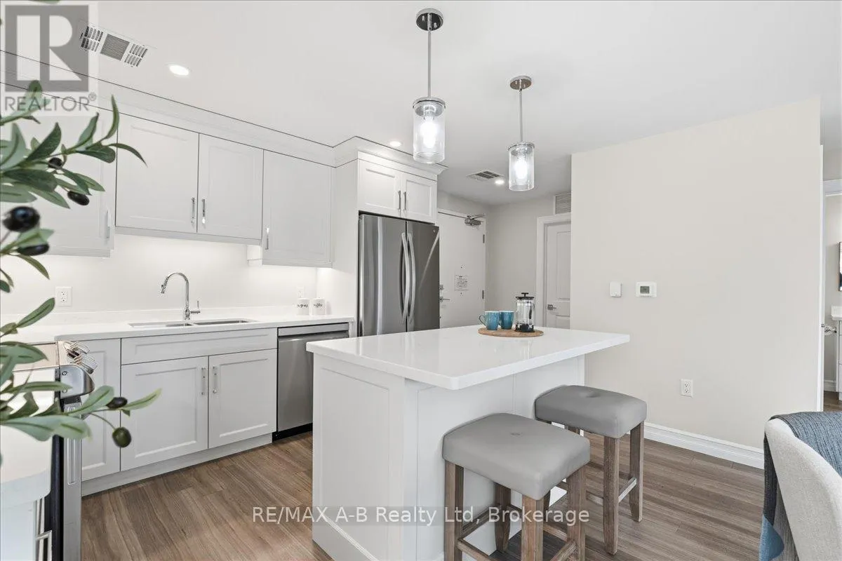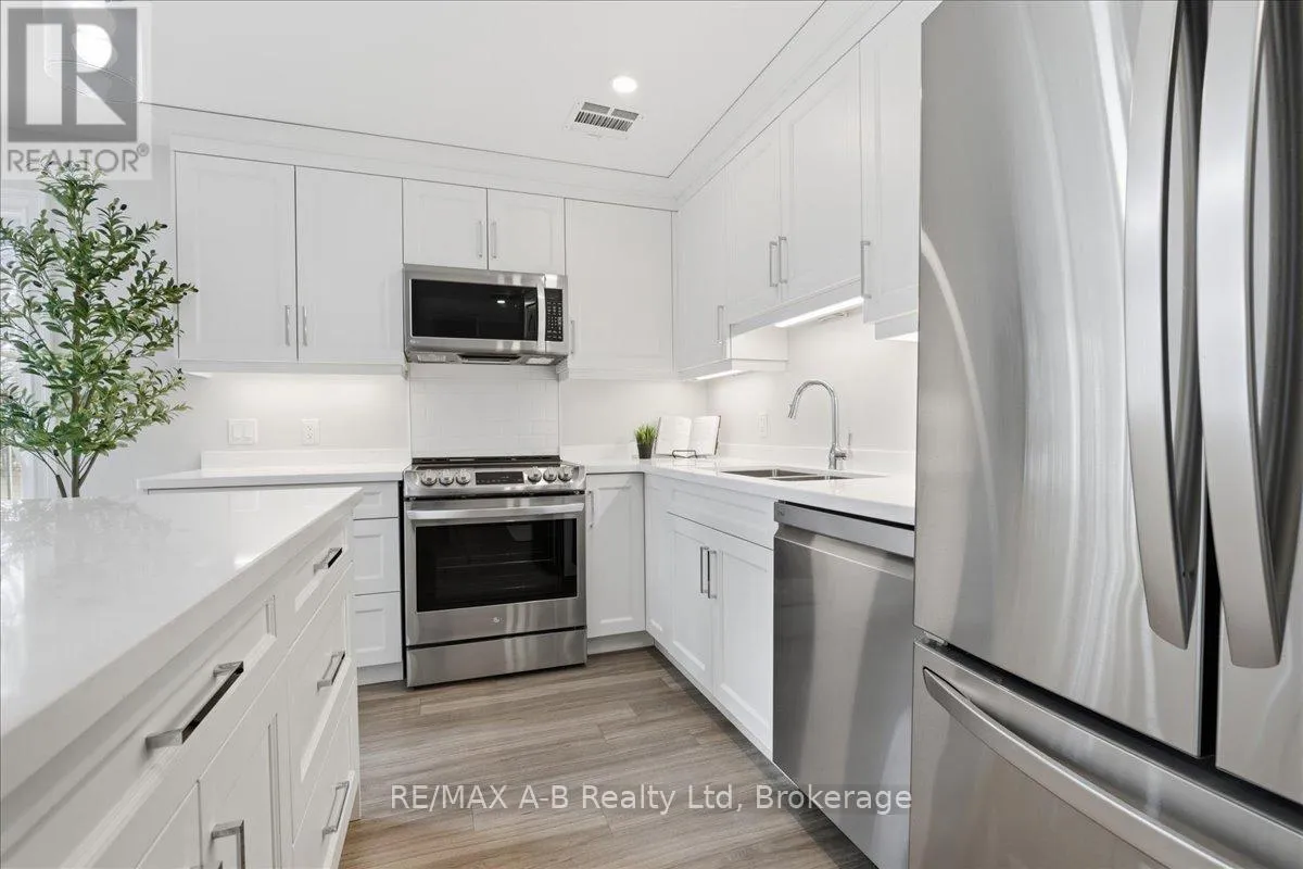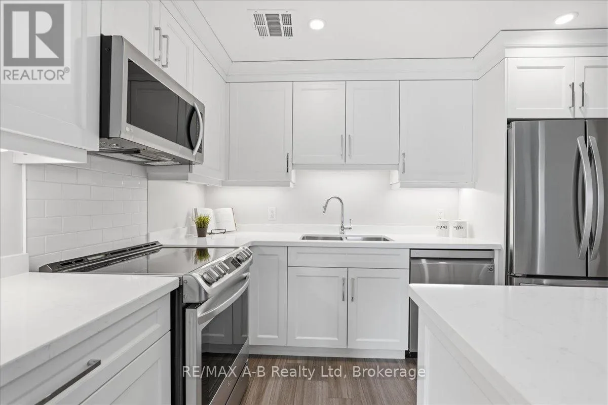 Cross Streets: Gordon and Ontario. ** Directions: East on Ontario St. Left on Gordon. Discover this beautifully remodeled 1-bedroom, 1-bath condo offering 745 sq ft of contemporary living space. Enjoy the elegance of quartz countertops and the comfort of a carpet-free interior. This energy-efficient condo includes parking and a storage locker, making life convenient and clutter-free. Located close to shopping, this condo is an exceptional value-perfect for those looking for style, comfort, and everyday convenience. Don't miss out on this fantastic opportunity! (id:27476)