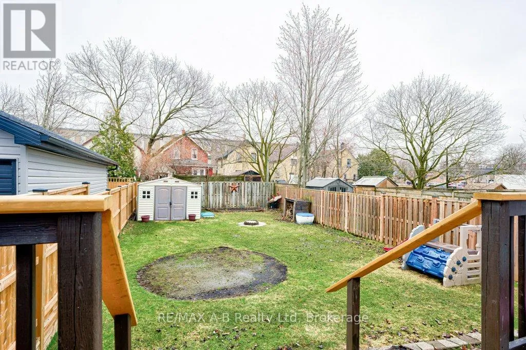 Cross Streets: Brunswick St. ** Directions: West along Brunswick (one way) then South on College. Set on a quiet street and walkable to Stratford's parks and the Avon River, this solid 1.5-storey red brick home offers a great opportunity for first-time buyers or young families looking to enter the market. The main floor features a comfortable and functional layout with a bright living room, separate dining area, and a ceramic-tiled kitchen. Sliding doors off the dining room lead to a large, newer deck overlooking a fully fenced backyard-ideal for kids, pets, or outdoor entertaining. Upstairs, you'll find three bedrooms and a full 4-piece bathroom, providing practical space for a growing family. The basement is fully insulated and offers excellent additional storage. A well-located, approachable home with solid fundamentals and room to grow-an excellent entry point into Stratford's housing market. (id:27476)