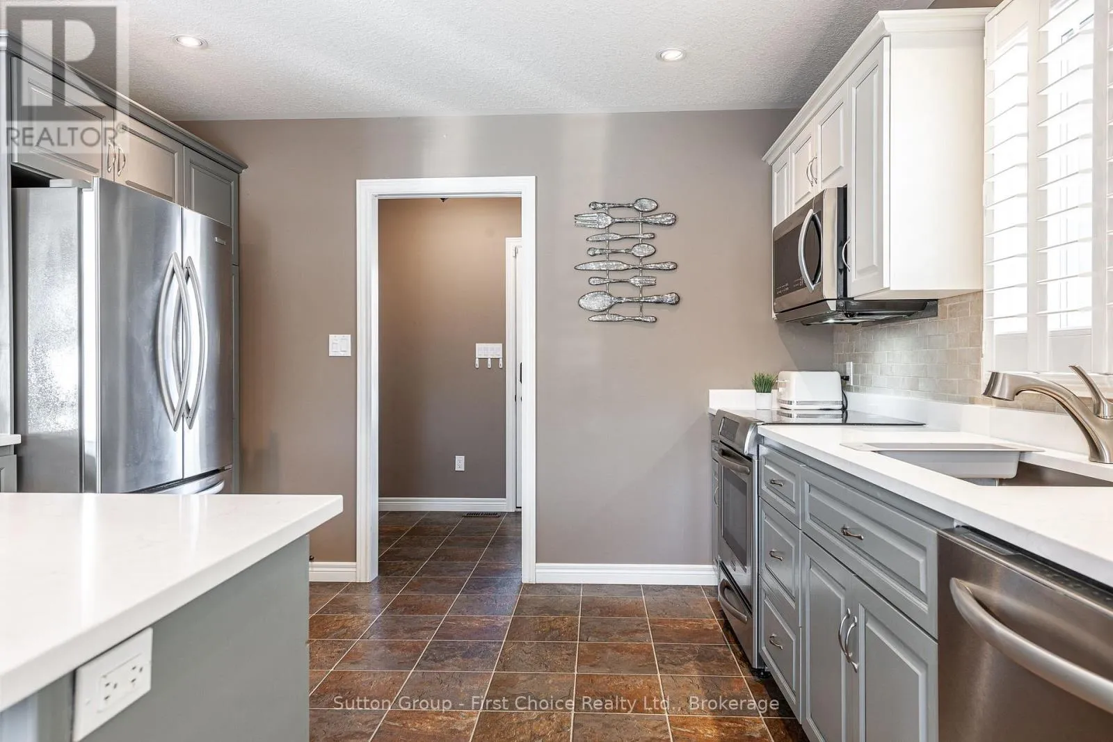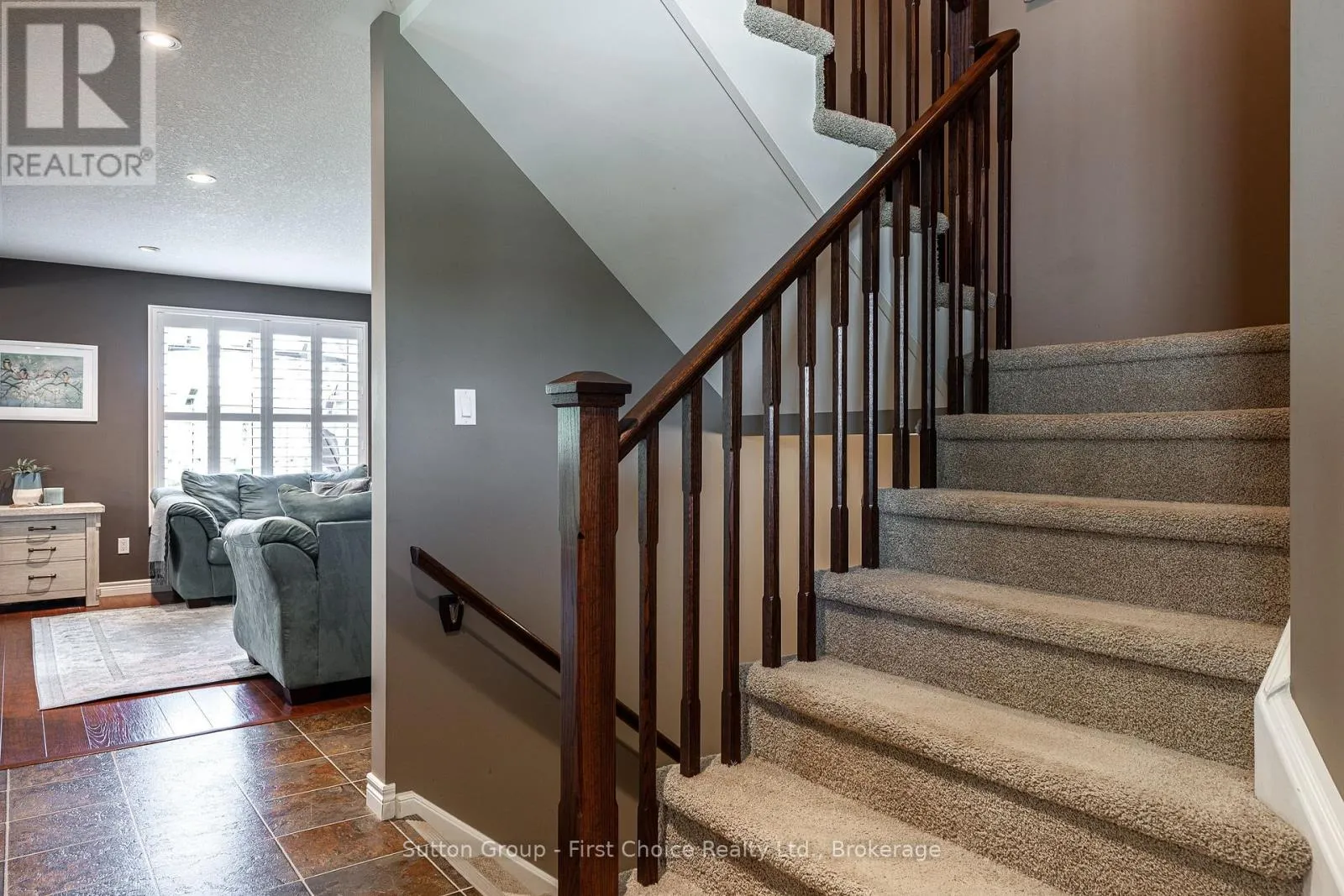Cross Streets: Greenberg/Harrison. ** Directions: Vivian Line 37 to Harrison St to Rutherford Drive. Welcome to 74 Rutherford Drive, located in the highly sought-after Fields neighbourhood of Stratford. This spacious two-storey family home offers 3 generous bedrooms, 2 full bathrooms, and 2 convenient powder rooms - thoughtfully designed for comfortable everyday living. Ideal for commuters and families alike, this location is just minutes from the Stratford Country Club, the Avon River, and beautiful park spaces. The bright, open-concept main floor features a welcoming living area with an electric fireplace, flowing seamlessly into a well-appointed kitchen and dining space - perfect for gatherings and busy family life. A main floor laundry room and powder room add practical convenience. Downstairs, the fully finished recreation room is made for entertaining, complete with a cozy gas fireplace and a home theatre projector with power screen - perfect for family movie nights or hosting friends. Step outside to enjoy the covered deck and porch overlooking a nicely landscaped backyard, creating an inviting outdoor space for relaxing or entertaining throughout the seasons. This is a fantastic opportunity to settle into one of Stratford's most popular family neighbourhoods. (id:27476)