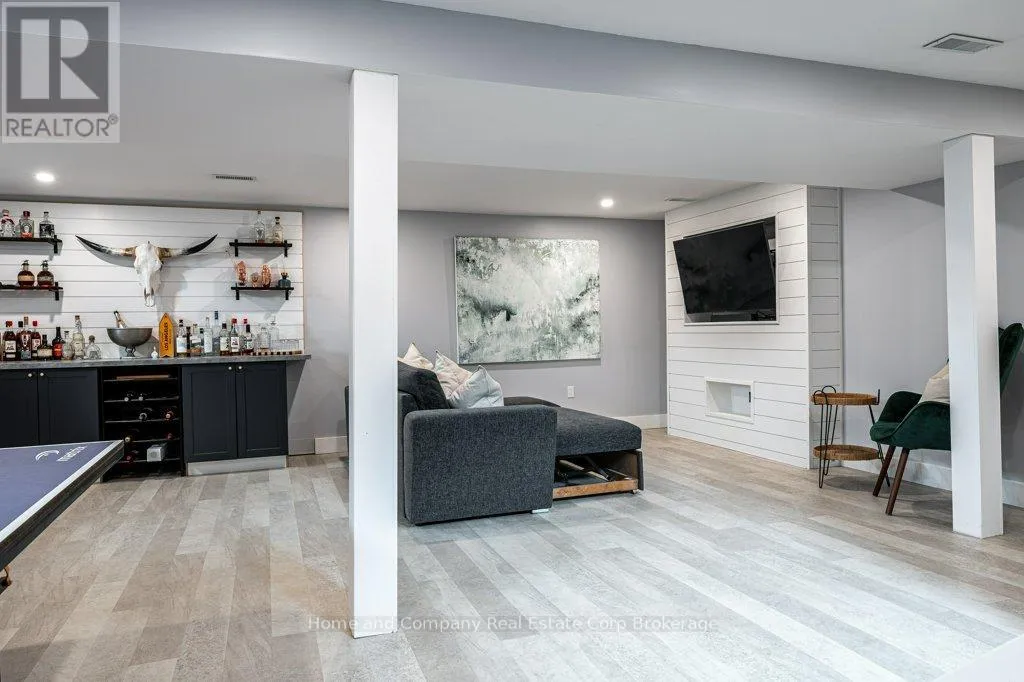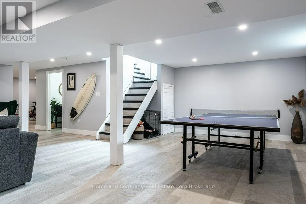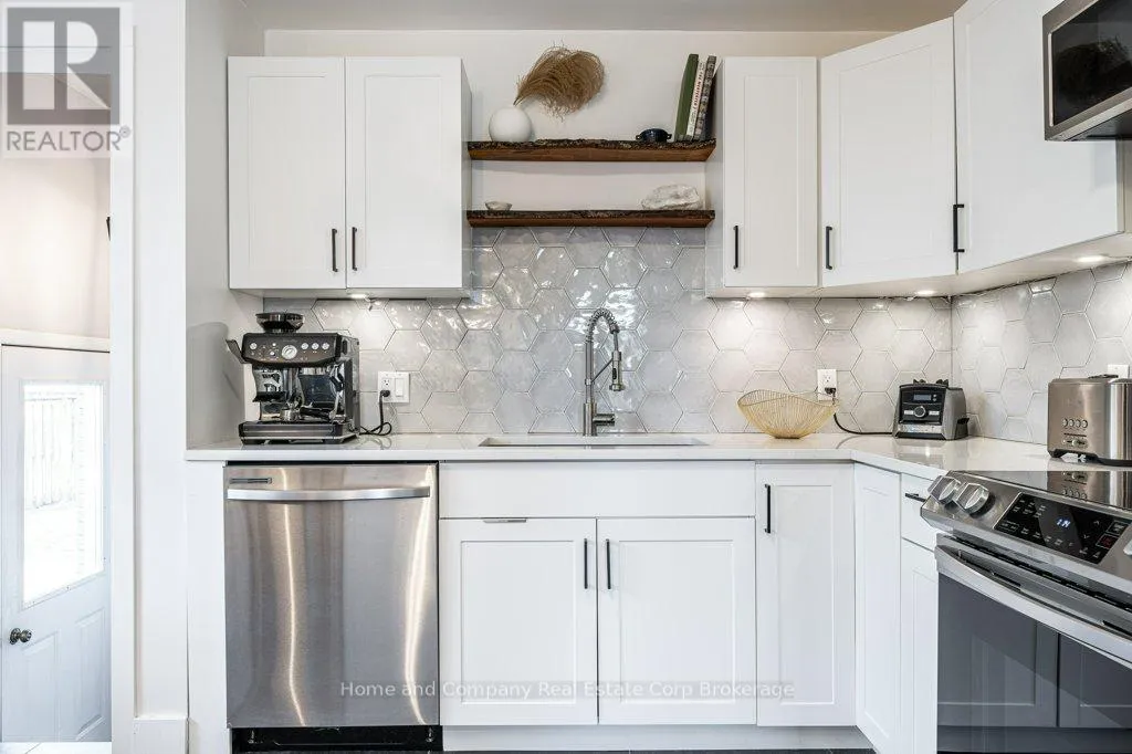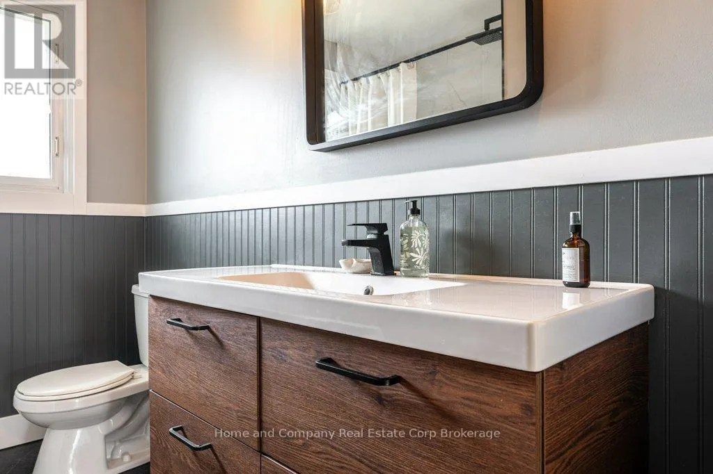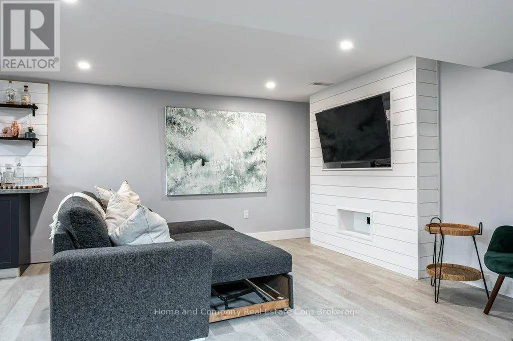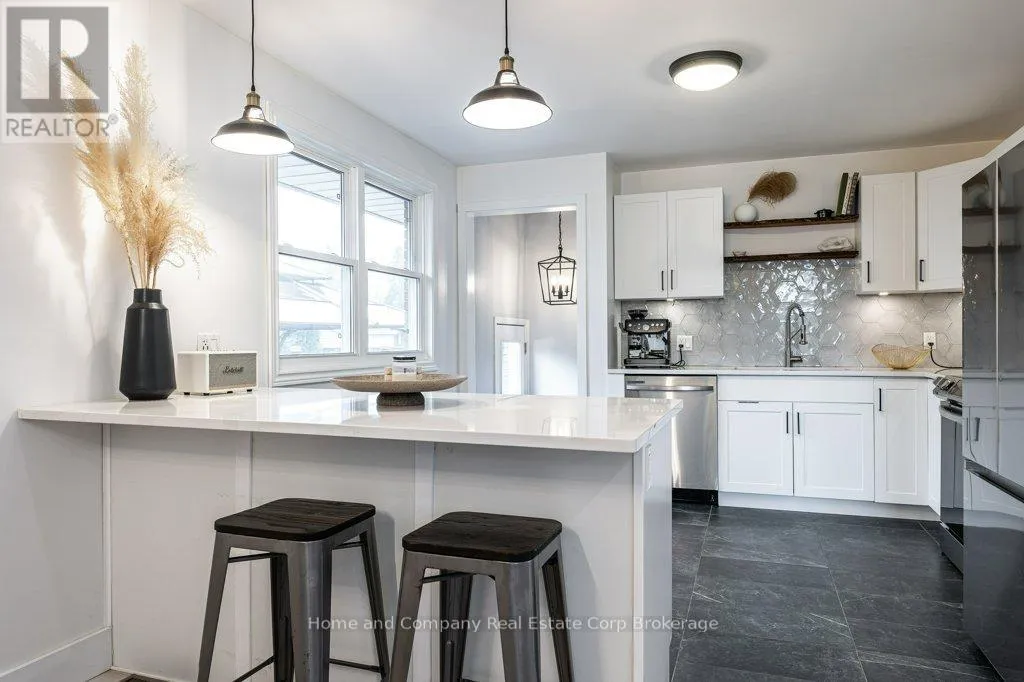 Cross Streets: Redford Cres. & St. Vincent St. S. ** Directions: From St. Vincent St. S., head west on Redford Cres. Calling all design-savvy Buyers looking for a home with style. This solid, all brick bungalow has been fully renovated for a fresh, modern aesthetic & zen feel. Natural light greets you when you step through the front door & into the striking living room with a custom TV feature wall. You'll be drawn to the sleek & clean lines of the kitchen, which has crisp white cabinets, quartz countertops, stainless steel appliances & unique design features. The 3 bedrooms are tucked off of the main living areas just down the hall with the inviting 4 piece bathroom. The lower level is made for relaxing or entertaining offering a one-of-a-kind bar, a second custom TV feature wall & games area. A flex space for exercising or dedicated space for your hobbies & a gorgeous 3 piece bath with walk in shower complete the interior package. Outside, you will find a fenced yard where you can enjoy morning coffee, afternoon sun or evening campfires. Located on a quiet crescent, abundant with mature trees, plus Redford Park is just across the street & schools nearby, this neighbourhood is convenient to all of Stratford's wonderful amenities. Pin it, post it, buy it! (id:27476)