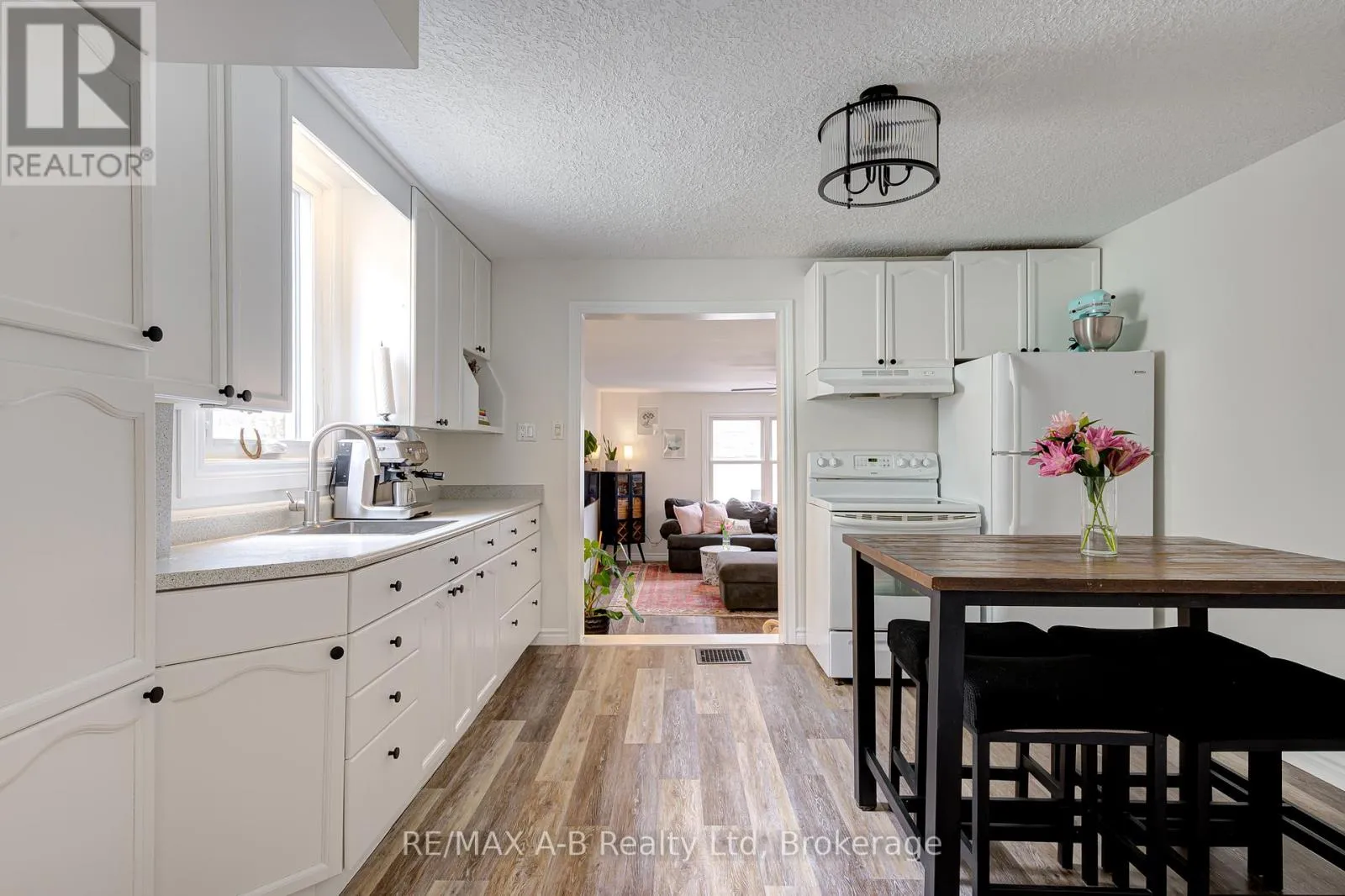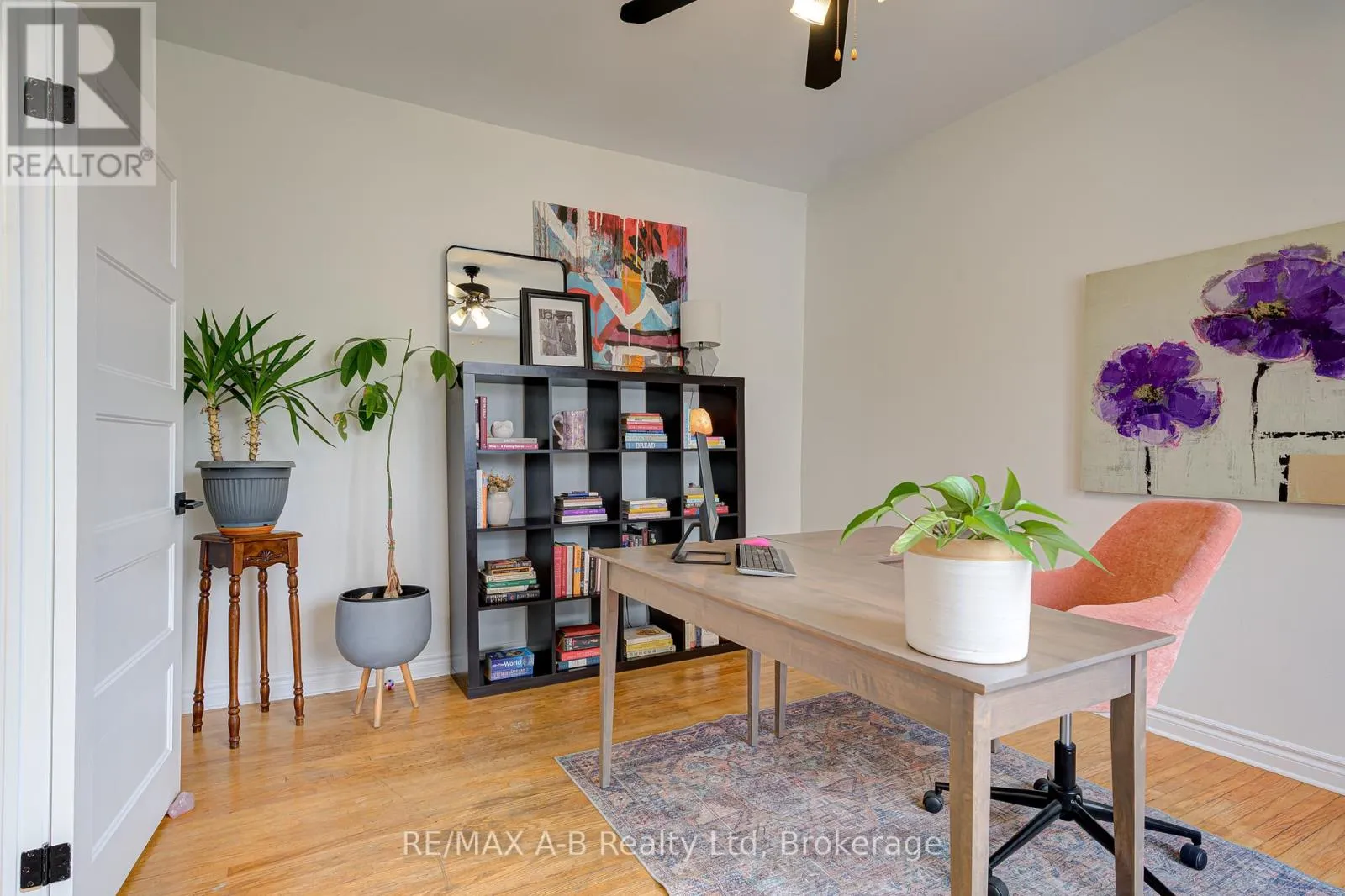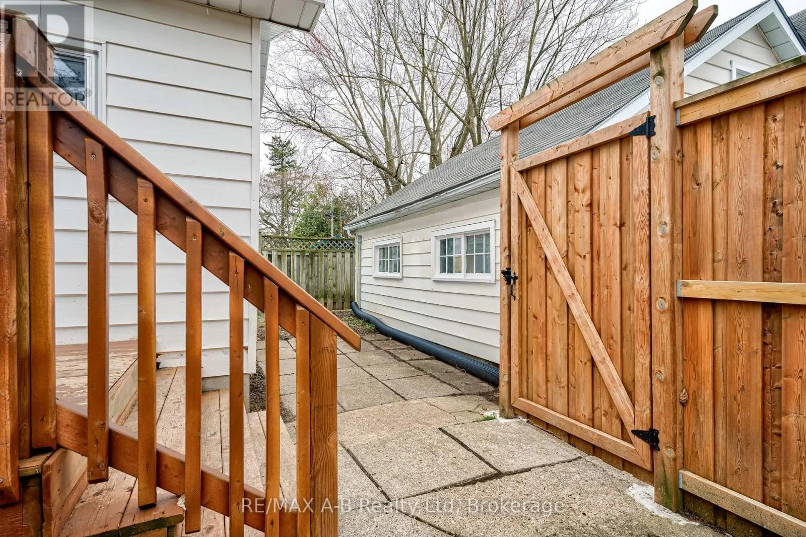 Cross Streets: Nelson St. ** Directions: From West Gore St turn onto Nelson St. Continue down road, home is on corner of Ash and Nelson. Welcome to this charming 2-storey home perfectly situated on a desirable corner lot, just a short walk to downtown Stratford and all its vibrant amenities-including boutique shops, local restaurants, scenic river walks, and renowned theatres.This inviting home offers 2 bedrooms and 2 bathrooms, with a functional layout ideal for a variety of lifestyles. The main floor features a spacious living room filled with natural light, a convenient 3-piece bathroom, and a freshly painted kitchen ready for your personal touch. A versatile office space on the main level provides the perfect opportunity for a home office, guest room, or potential third bedroom.Step outside to enjoy a beautifully fenced deck and sitting area-perfect for relaxing or entertaining. Adding even more value is the impressive 18 x 21 ft heated garage/shop, offering endless possibilities as a workshop, home gym, or additional entertaining space. A fantastic opportunity to enjoy comfort, convenience, and the charm of Stratford living-all in one place. (id:27476)
