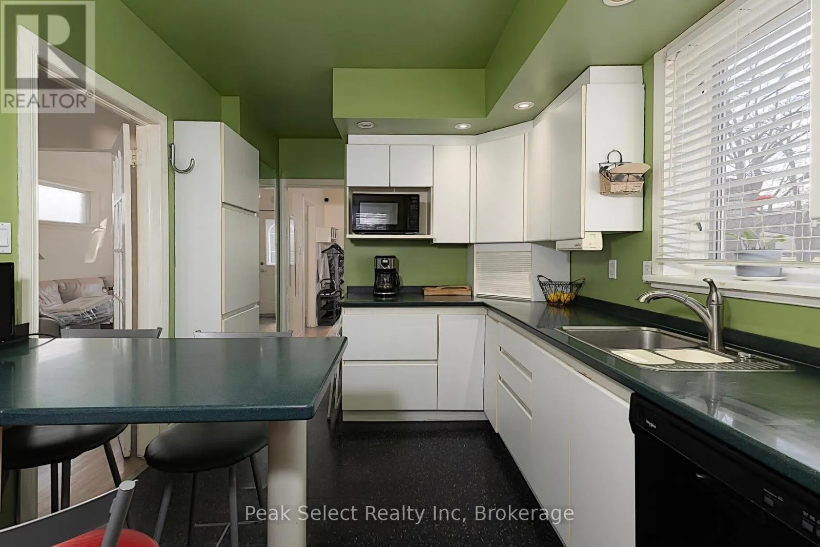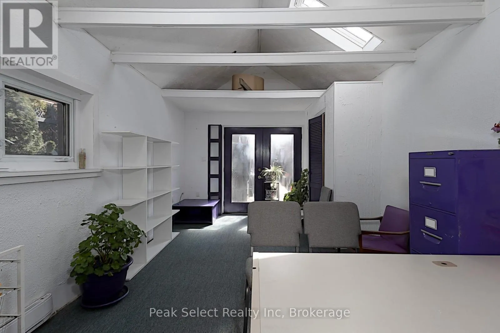 Waterloo Street South to Rebecca Street Positioned in a high-visibility, central location just steps from downtown Stratford and directly across from an elementary school, 14 Rebecca Street offers unique potential with C3 zoning allowing for a variety of uses. Whether you're an investor, entrepreneur, or buyer seeking live/work flexibility, this property presents an exciting opportunity. The standout feature is the detached garage, thoughtfully converted into a functional office space-ideal for a home-based business, studio, or private workspace. Inside, the home offers 2 bedrooms and a spacious 5-piece bathroom. The oversized primary bedroom was originally two rooms and has been combined to create a generous retreat, complete with a skylight that brings in natural light. The main floor features separate living and dining areas with hardwood flooring, a bright living room with a bay window, and a kitchen with a convenient breakfast bar. With approximately 1,103 sq ft of living space, the home includes numerous windows throughout, creating a light-filled interior. This property provides a solid canvas for those looking to renovate or customize to suit their needs. A rare opportunity in a sought-after location-ideal for those looking to blend residential living with business potential. (id:27476)