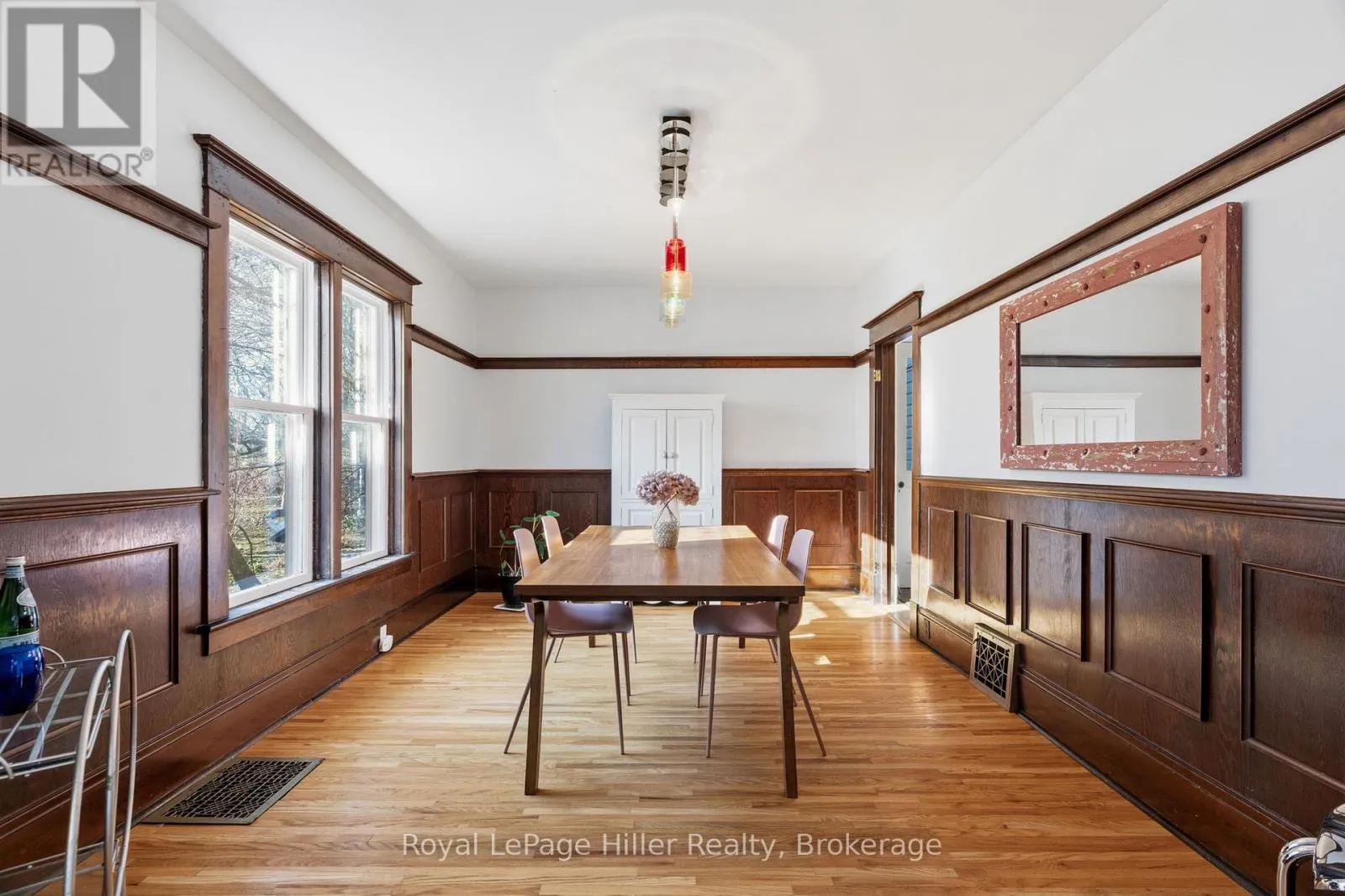 Cross Streets: John Street & Hwy 8. ** Directions: From Hwy 8, Turn right onto St Vincent St N, Turn left onto Caledonia St, Property will be on the left. Set on a quiet one-way street in Stratford's sought-after Avon Ward, this charming Dutch Colonial Revival home blends timeless character with everyday functionality in one of Stratford's most established neighbourhoods. Built in 1916, the home offers exceptional curb appeal and a warm, inviting presence from the moment you arrive. Inside, classic architectural details take centre stage. Hardwood floors, original tall baseboards, and beautifully preserved millwork speak to the home's craftsmanship, while the elegant wood staircase and striking wainscoting in the formal dining room create a refined atmosphere. The enclosed front porch welcomes you into a generous foyer, leading to a bright and inviting living space complete with a natural gas fireplace, perfect for both quiet evenings and formal entertaining. The kitchen is spacious and featuring tasteful finishes and a functional layout that complements the home's character. With three well-sized bedrooms, all offering large closets, and two bathrooms, the home provides flexibility for families, guests, or work-from-home living. Outdoors, the fully fenced yard offers privacy and room to unwind, highlighted by a rear deck with hot tub, an ideal space to relax or host. A detached, reinforced single garage adds both convenience and practicality. A rare opportunity to own a piece of Stratford's architectural heritage in a mature location that continues to be desirable. (id:27476)