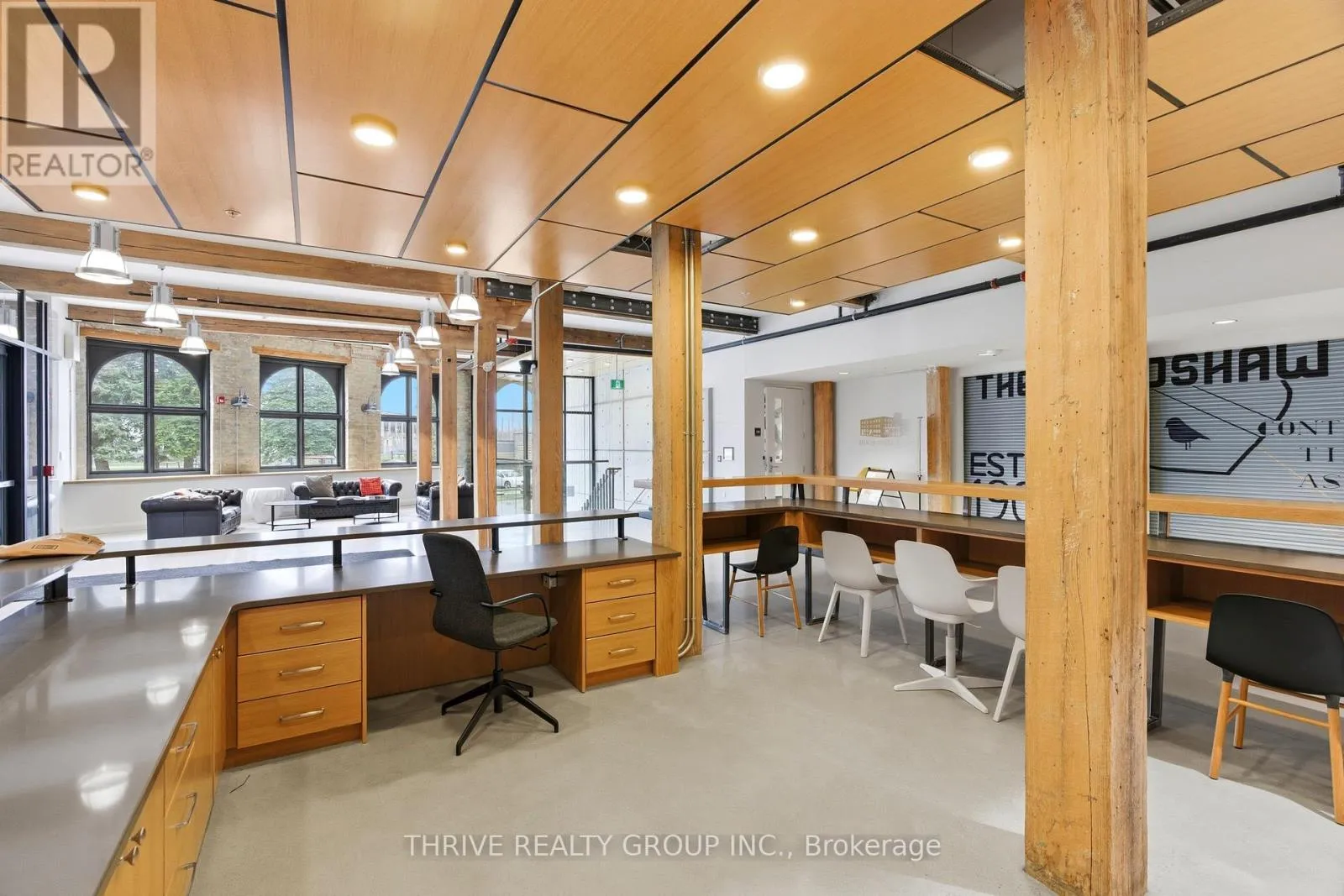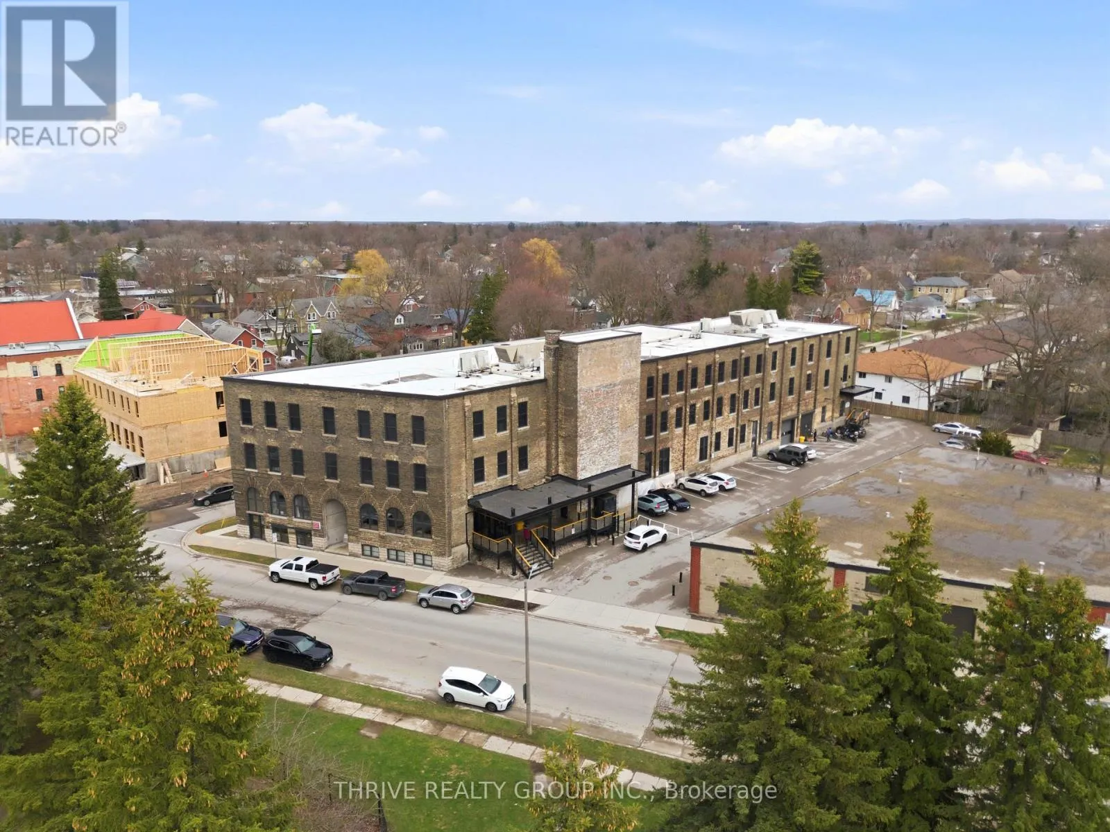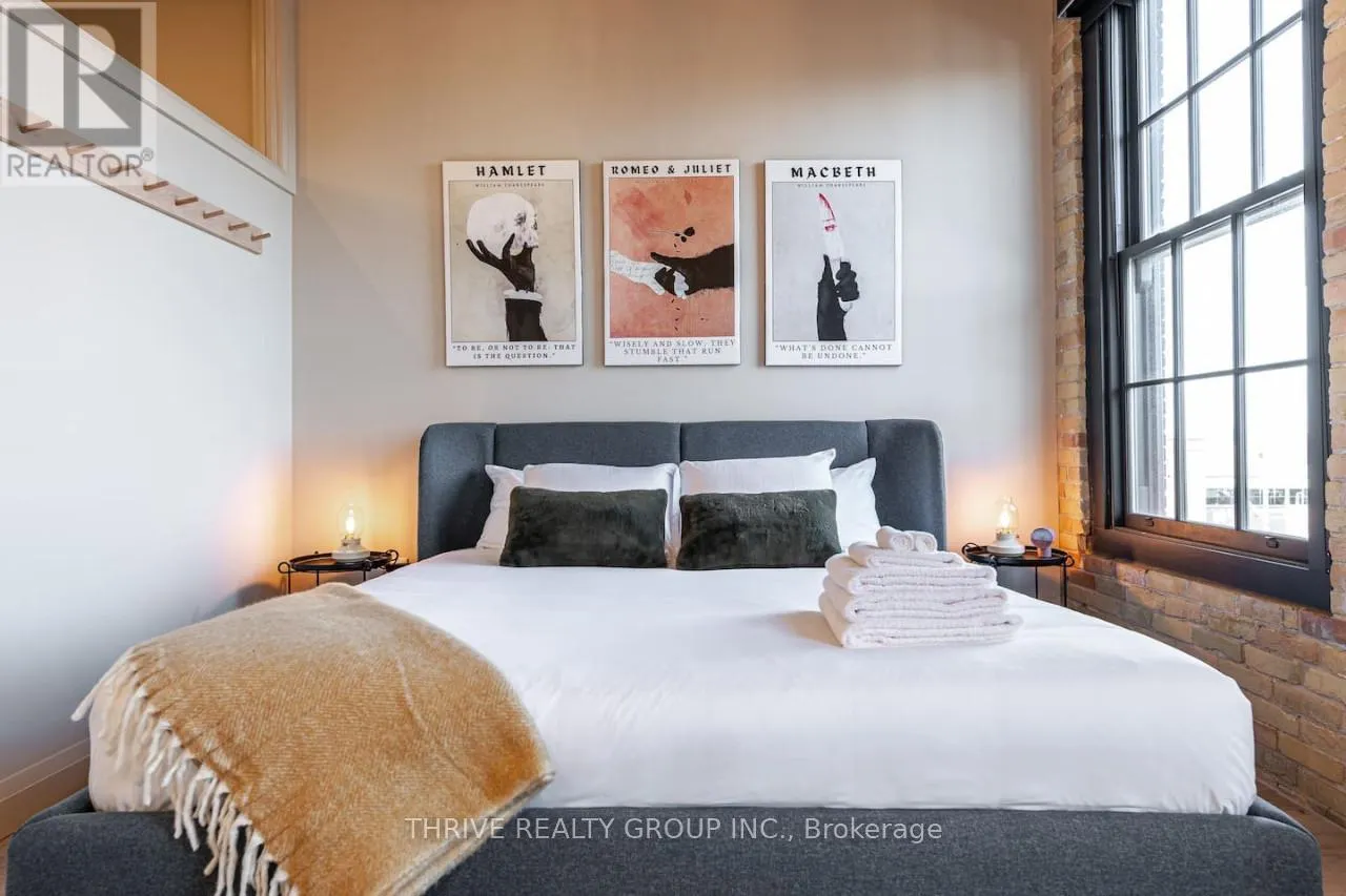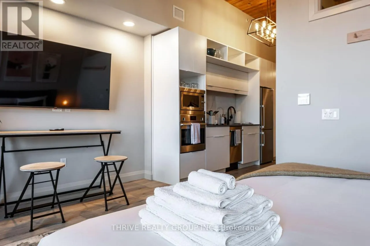 Cross Streets: Downie & Falstaff. ** Directions: On Downie south of 8 and north of Lorne. Welcome to Stratford and the Bradshaw Lofts! This incredibly historic building offers a unique experience in boutique condo ownership. The Clairemont, a stunning third/top floor unit is completely move-in ready, and if turn-key is what you are after, this is an excellent option. The thoughtfully laid out floor plan encompasses all your needs with beautiful finishes including vinyl plank flooring, high ceilings, and a stunning interior exposed brick wall, and original wood ceiling. Feel the vibe of the art and culture of this fantastic city from the moment you enter the building. It boasts a chic open concept lobby, and shares its space with a trendy wine bar/coffee shop - Brch & Wyn; and also a campus for the University of Waterloo. Perfect for students, educators, Stratford fans, professionals, or the investor who would like to broaden their portfolio with AirBnB income. Management with an experienced company for the rental option can be set up. Located close to the heart of everything that makes Stratford such a memorable spot to live and visit. (id:27476)