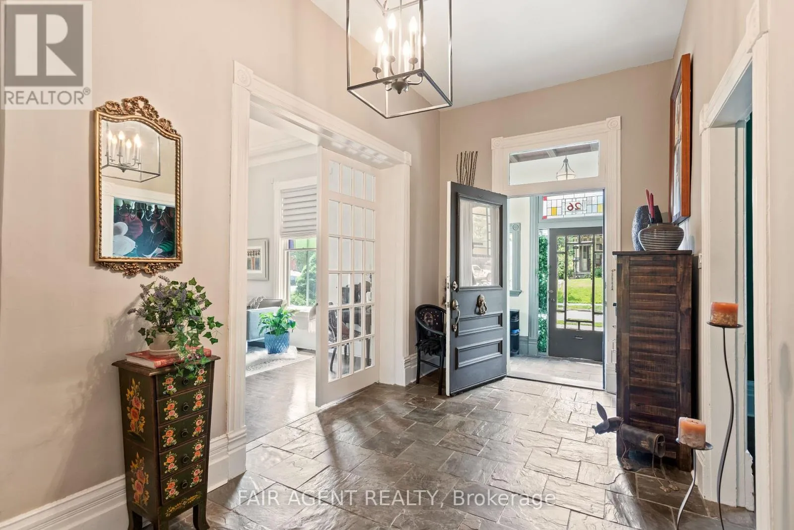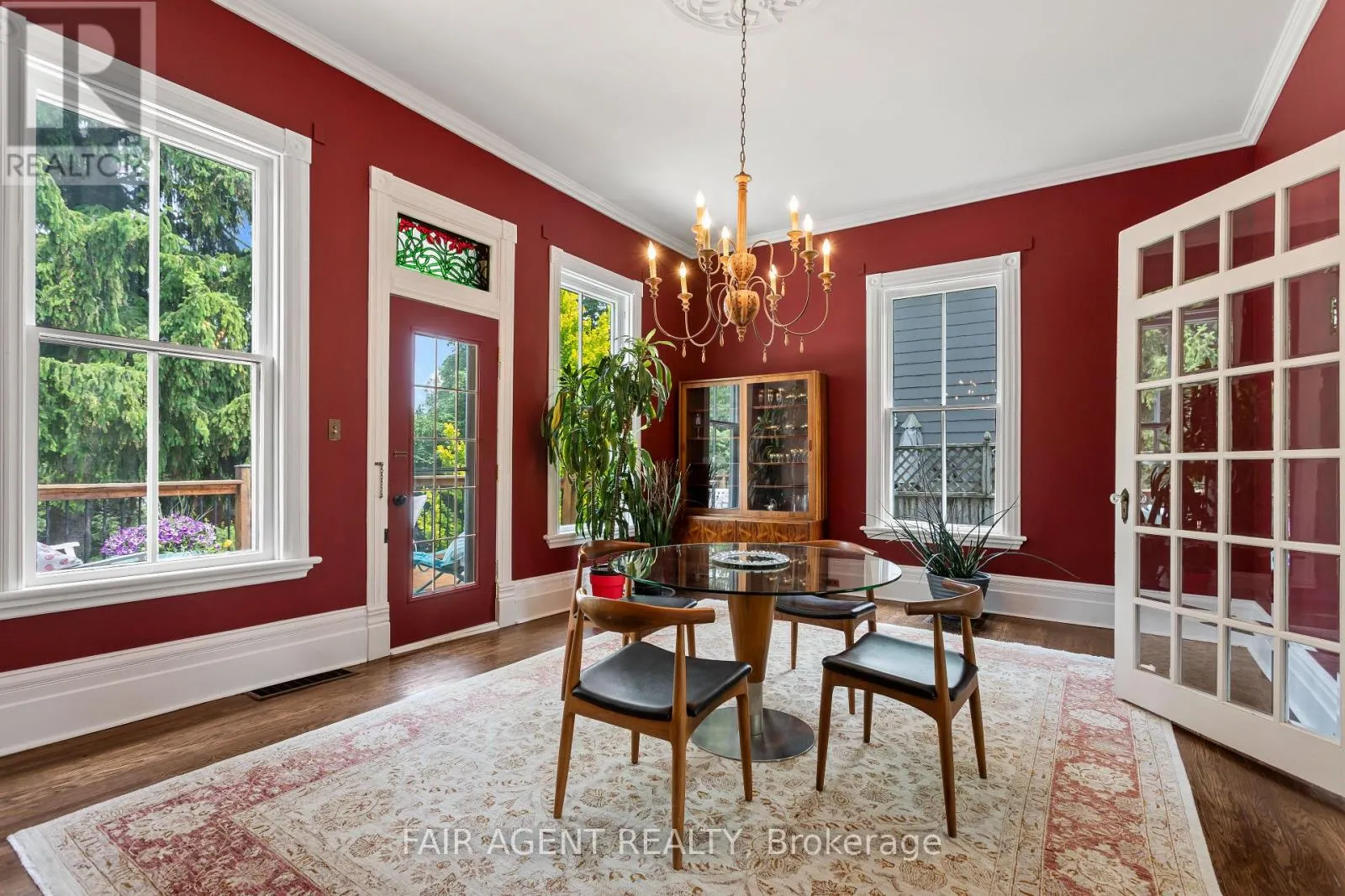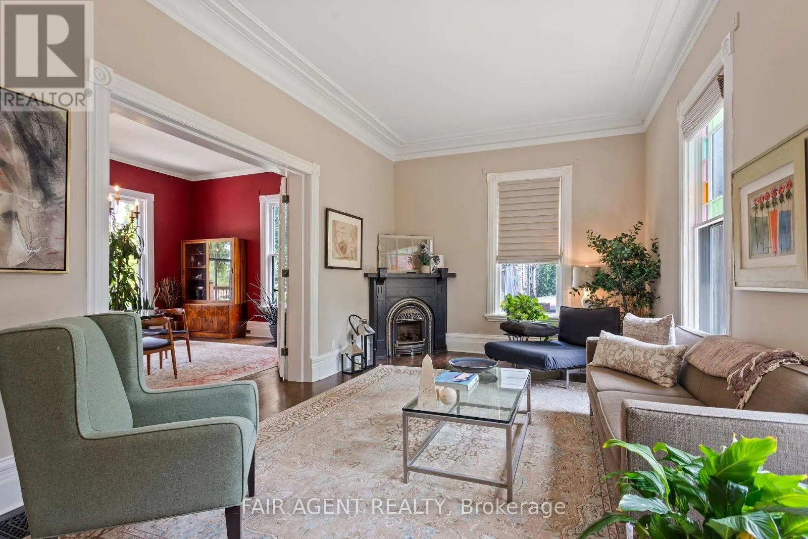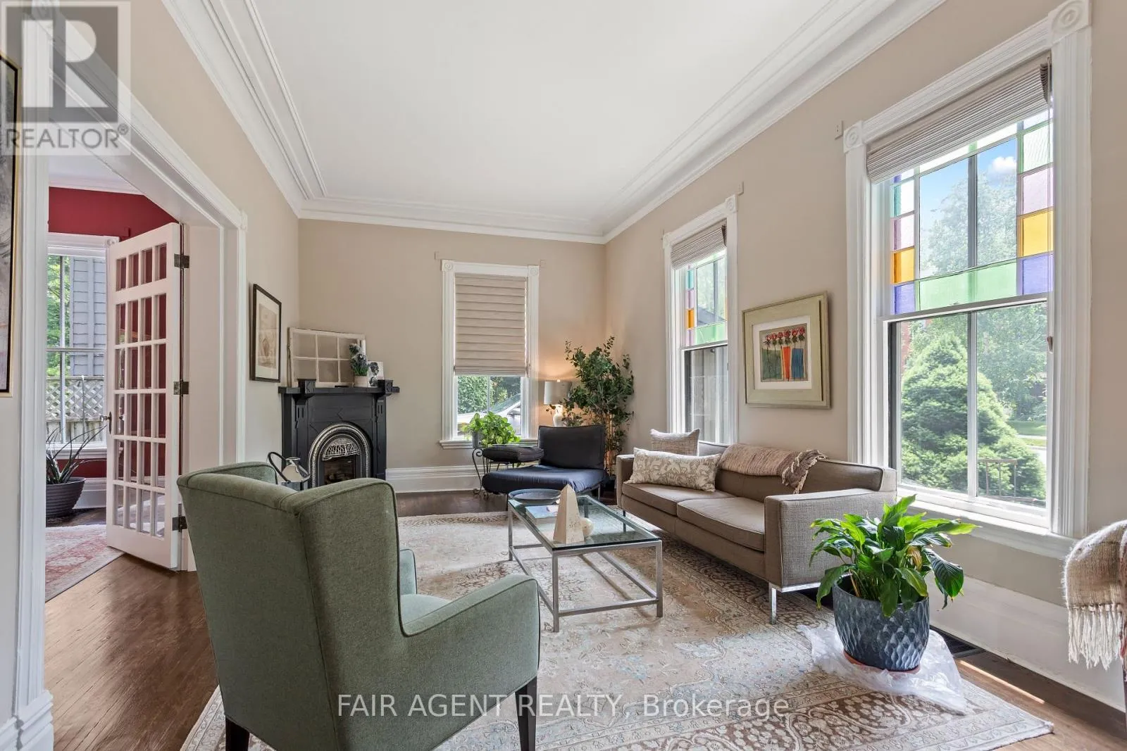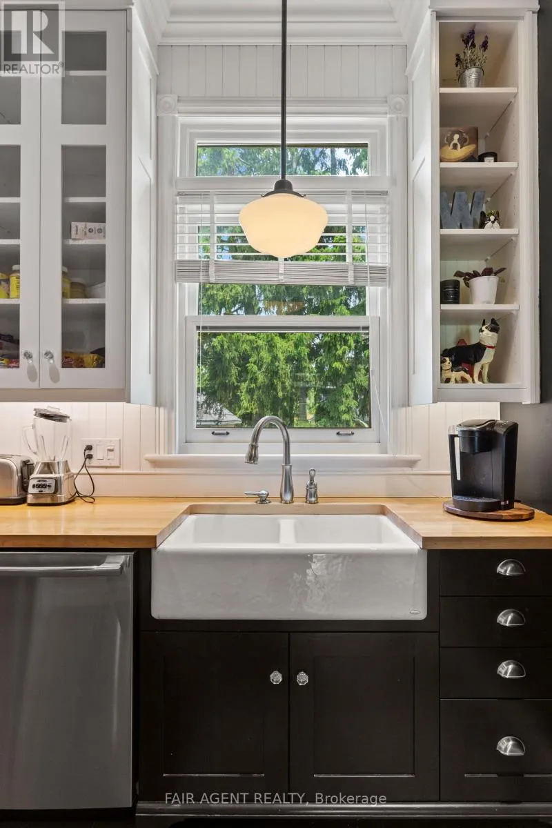 Cross Streets: Birmingham St. ** Directions: Birmingham St to Daly. Motivated seller, furnishings available. This distinguished Stratford home blends refined historic charm with thoughtful modern upgrades, delivering over 3,000 square feet of beautifully finished living space. Located on a quiet, tree-lined street within walking distance to downtown, the TJ Dolan Trail, Stratford Intermediate School, and the hospital, it offers both tranquility and convenience. Inside, you're welcomed by soaring 11-foot ceilings, original stained-glass transoms, rich crown mouldings, and wide baseboards, all preserved with care. The formal living and dining rooms feature elegant French doors with beveled glass, allowing for easy entertaining or relaxed evenings by the fire. Throughout the main level, curated finishes, fresh paint, designer lighting, and bold colour choices add vibrancy while honouring the homes architectural pedigree. The kitchen has been expertly renovated with custom cabinetry, butcher block counters, a farmhouse sink, and integrated seating, blending style and function. A powder room with adjacent closets opens into a convenient main-floor laundry area. With four bedrooms, three upstairs and one down, and two full bathrooms featuring heated floors and a classic clawfoot tub beneath twin windows overlooking the treetops. The finished lower level is a flexible extension of the living space, fully finished, gas fireplace, heated bathroom, and walkout to a covered deck. Ideal for guests, remote work, or multigenerational living, this area enhances the homes livability without sacrificing charm. Outside, the landscaped, fenced yard is a seasonal showcase with Japanese maples, fruit trees, and garden beds. A two-tiered deck provides sun and shade, perfect for morning coffee or summer gatherings. Recent updates include top-quality carpeting upstairs, a renovated bathroom, roman blinds, and basement waterproofing with lifetime warranty. A rare opportunity in one of Stratford's most cherished neighbourhoods. (id:27476)