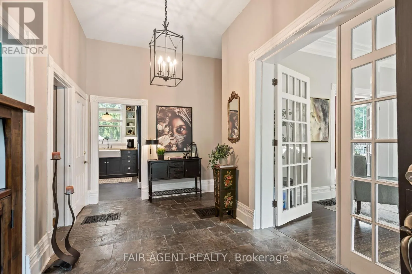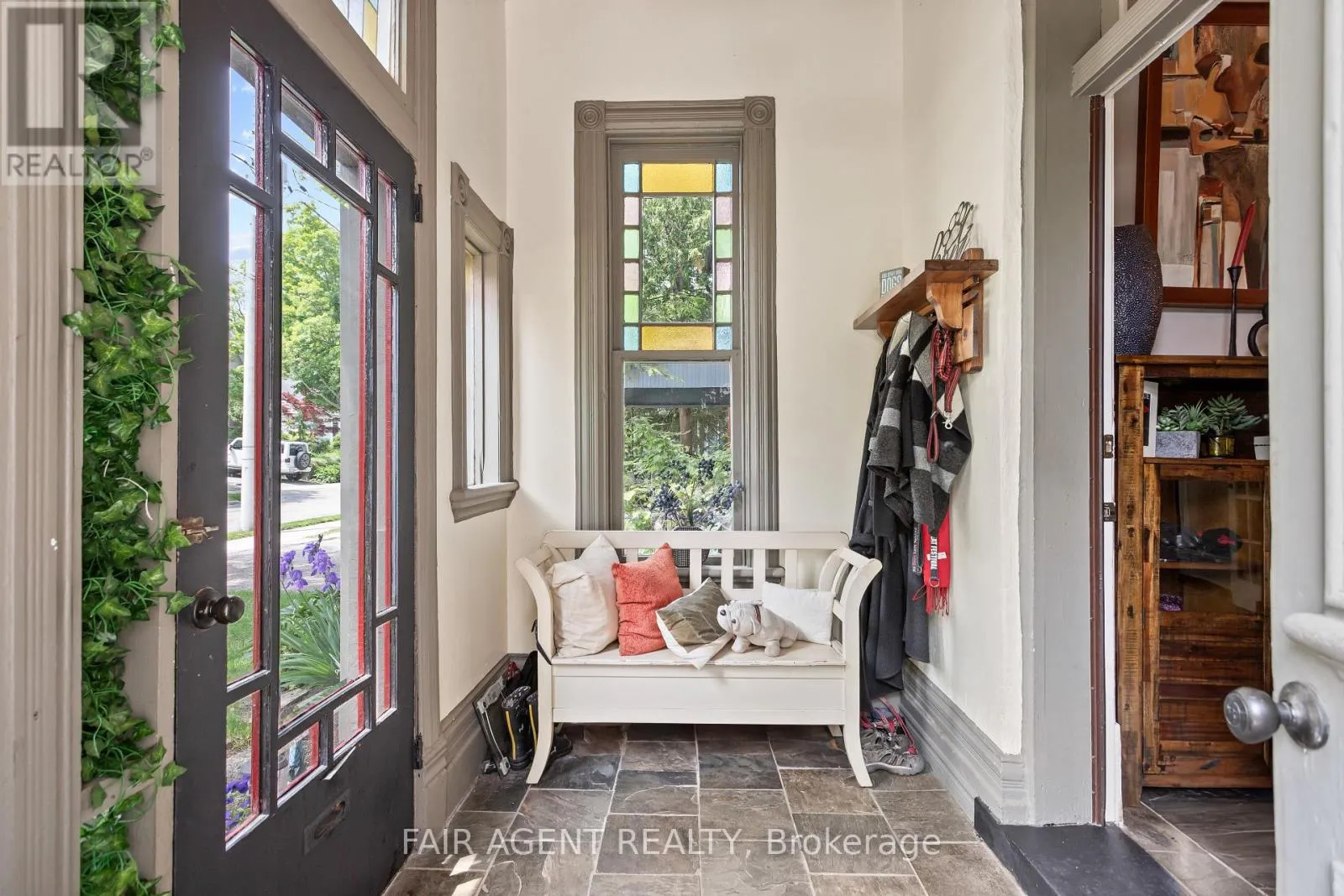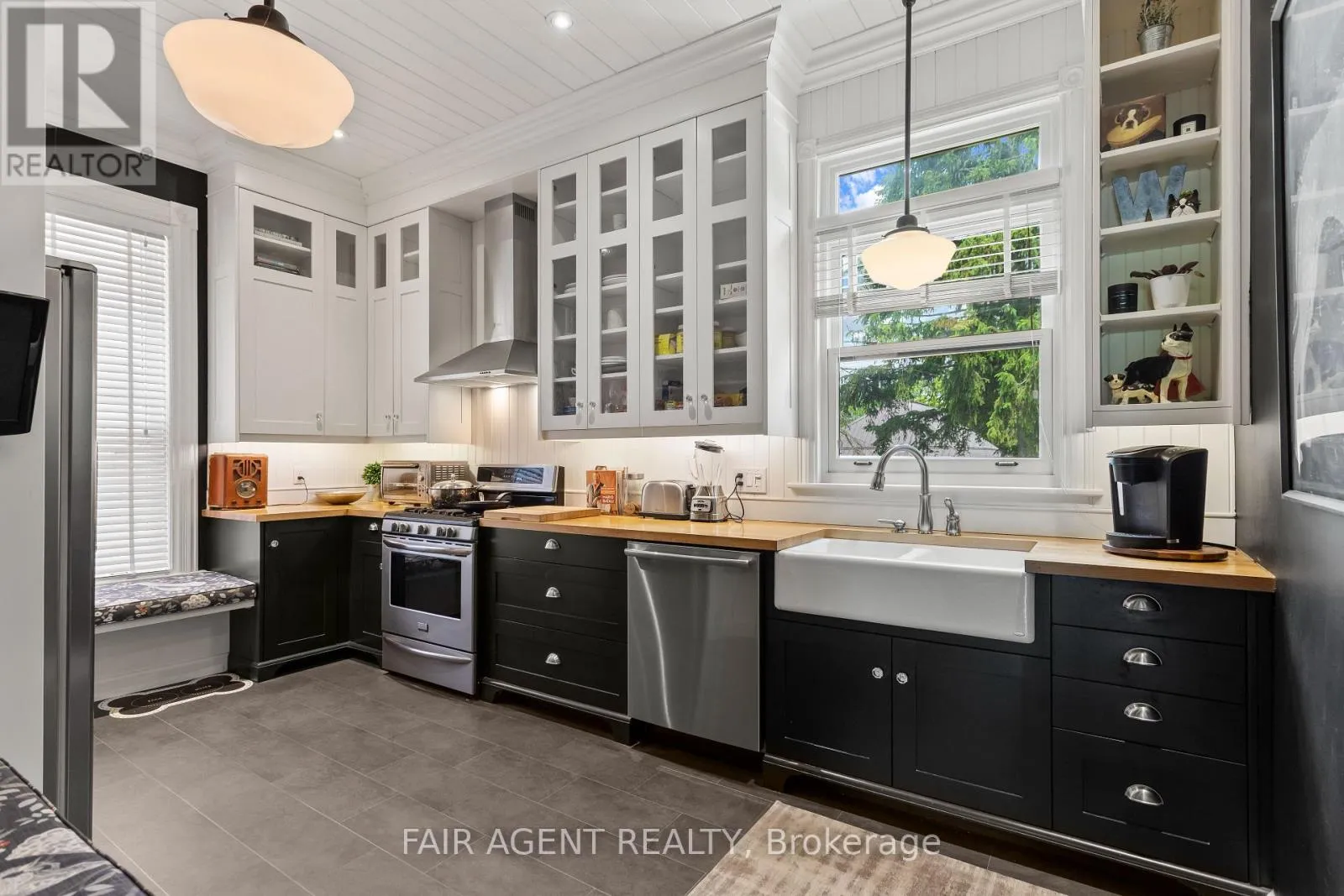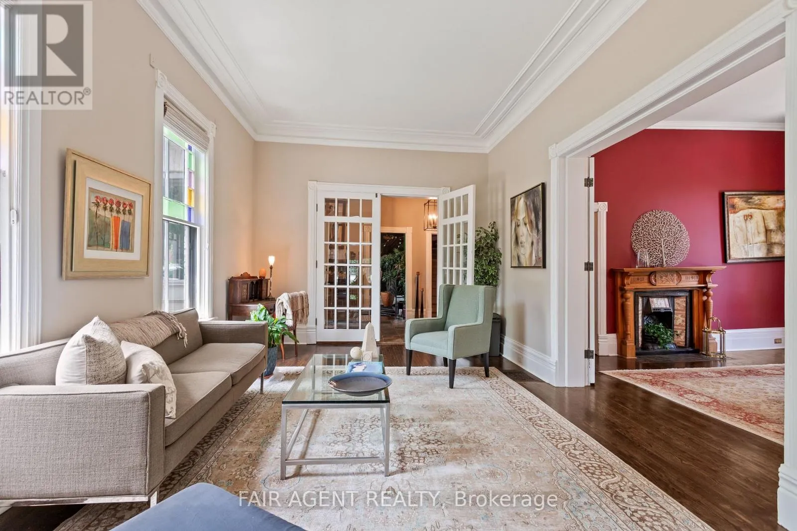 Cross Streets: Birmingham St. ** Directions: Birmingham St to Daly. Motivated seller, furnishings available. This distinguished Stratford home blends refined historic charm with thoughtful modern upgrades, delivering over 3,000 square feet of beautifully finished living space. Located on a quiet, tree-lined street within walking distance to downtown, the TJ Dolan Trail, Stratford Intermediate School, and the hospital, it offers both tranquility and convenience. Inside, you're welcomed by soaring 11-foot ceilings, original stained-glass transoms, rich crown mouldings, and wide baseboards, all preserved with care. The formal living and dining rooms feature elegant French doors with beveled glass, allowing for easy entertaining or relaxed evenings by the fire. Throughout the main level, curated finishes, fresh paint, designer lighting, and bold colour choices add vibrancy while honouring the homes architectural pedigree. The kitchen has been expertly renovated with custom cabinetry, butcher block counters, a farmhouse sink, and integrated seating, blending style and function. A powder room with adjacent closets opens into a convenient main-floor laundry area. With four bedrooms, three upstairs and one down, and two full bathrooms featuring heated floors and a classic clawfoot tub beneath twin windows overlooking the treetops. The finished lower level is a flexible extension of the living space, fully finished, gas fireplace, heated bathroom, and walkout to a covered deck. Ideal for guests, remote work, or multigenerational living, this area enhances the homes livability without sacrificing charm. Outside, the landscaped, fenced yard is a seasonal showcase with Japanese maples, fruit trees, and garden beds. A two-tiered deck provides sun and shade, perfect for morning coffee or summer gatherings. Recent updates include top-quality carpeting upstairs, a renovated bathroom, roman blinds, and basement waterproofing with lifetime warranty. A rare opportunity in one of Stratford's most cherished neighbourhoods. (id:27476)
