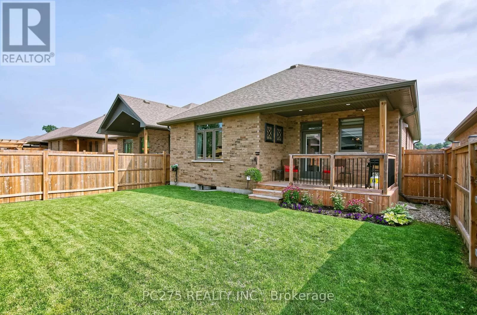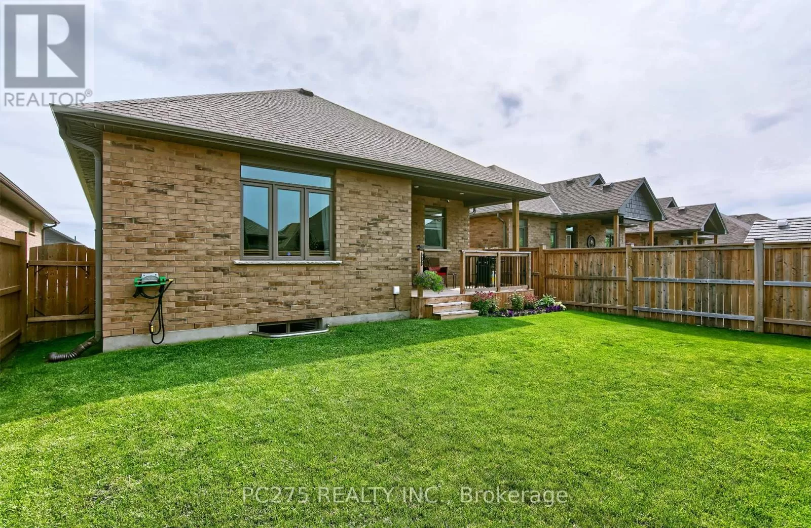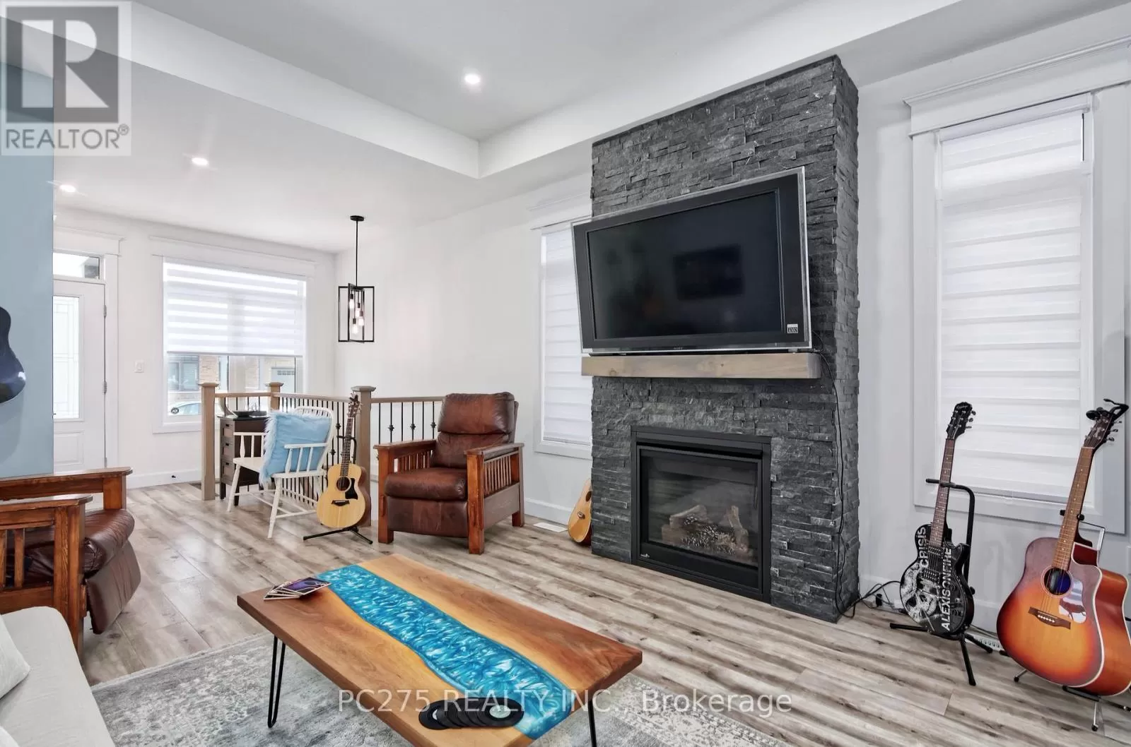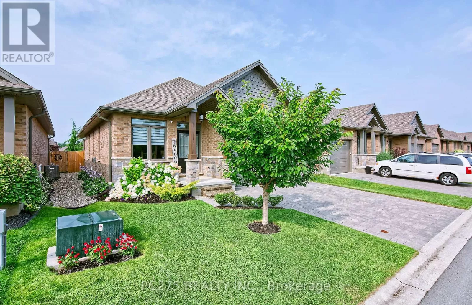 Cross Streets: Saxton/Collins Way. ** Directions: From Saxton turn North onto Collins Way. If you're looking for a beautiful bungalow condo with a two-car garage and love to golf, this is the perfect opportunity for you! Located beside Caradoc Sands Golf Course in Strathroy, this move-in ready, turn-key home is now five years old and perfect for first-time buyers or those looking to downsize. Step inside to find a stunning open-concept living space featuring vinyl flooring, a floor-to-ceiling fireplace, and a gas stove in the modern kitchen. The kitchen also boasts quartz countertops, a stylish backsplash, and plenty of space for entertaining. The spacious primary bedroom includes a luxurious ensuite with double sinks and a walk-in rainfall shower, creating the perfect retreat. Outside, enjoy your fully fenced, private backyard, complete with a covered deck and gas line BBQ hookup, ideal for outdoor gatherings. The attached two-car garage keeps your vehicles protected from the elements. Plus, the basement is already framed and ready to be completed, giving you the opportunity to customize it to your needs. This home is perfect for golf lovers, first-time buyers, or those looking to downsize while enjoying a low-maintenance lifestyle near the greens. Dont miss out on this incredible opportunity! (id:27476)