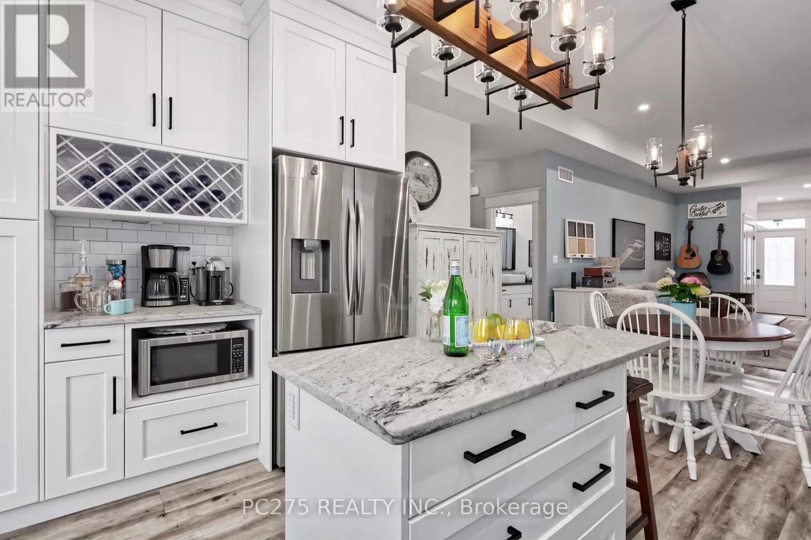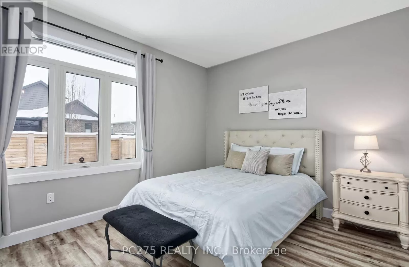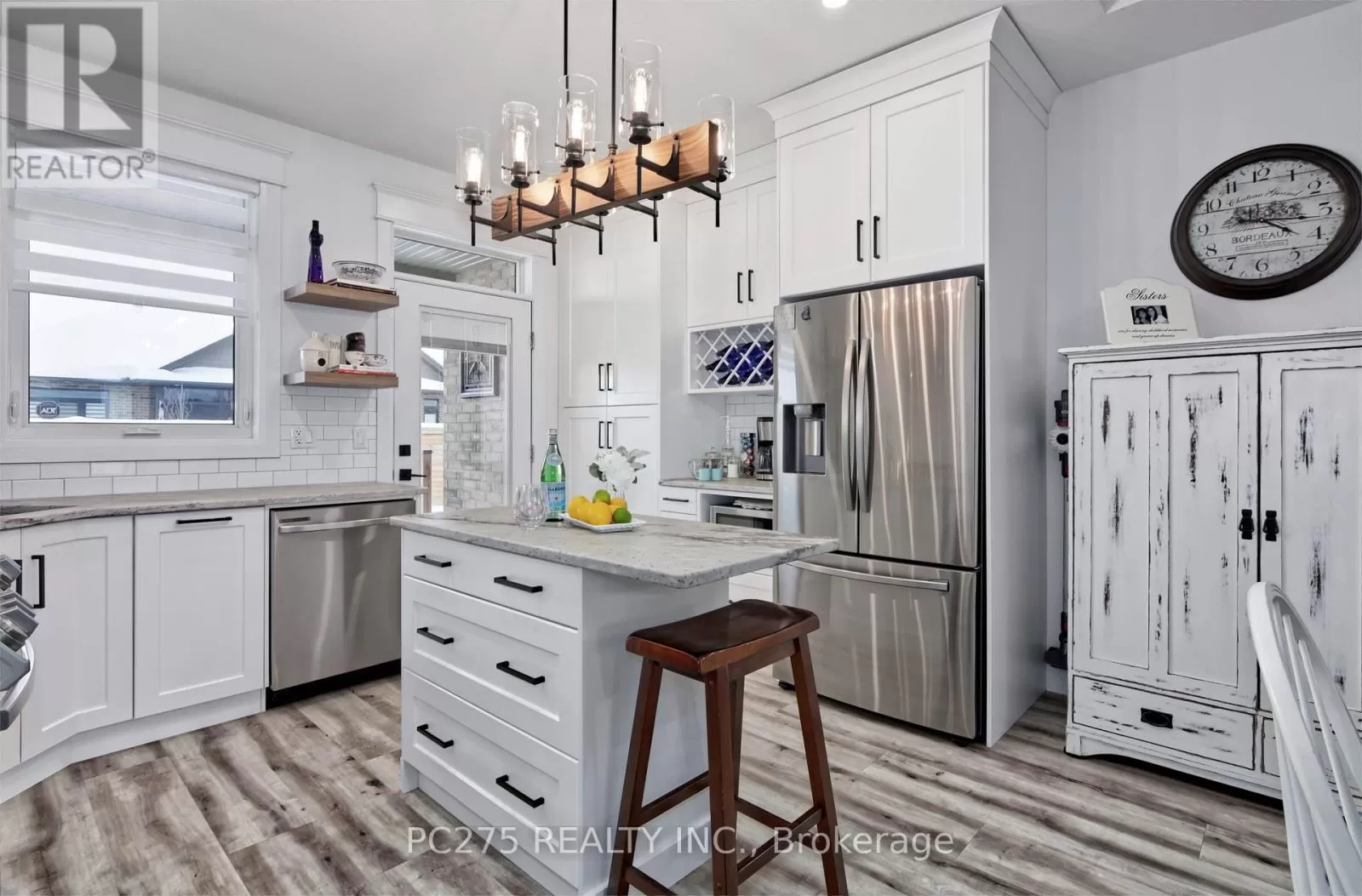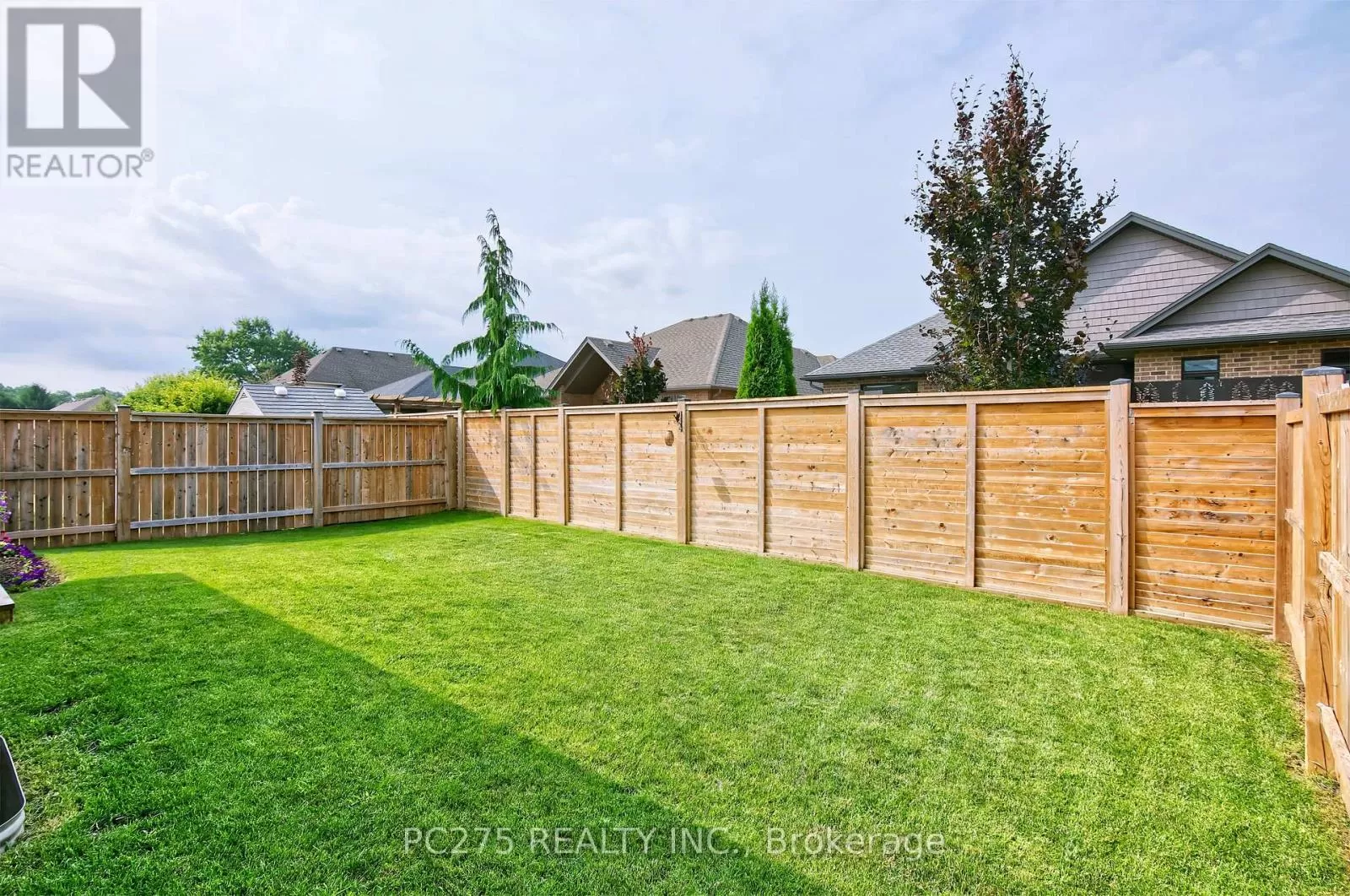 Cross Streets: Saxton/Collins Way. ** Directions: From Saxton turn North onto Collins Way. If you're looking for a beautiful bungalow condo with a two-car garage and love to golf, this is the perfect opportunity for you! Located beside Caradoc Sands Golf Course in Strathroy, this move-in ready, turn-key home is now five years old and perfect for first-time buyers or those looking to downsize. Step inside to find a stunning open-concept living space featuring vinyl flooring, a floor-to-ceiling fireplace, and a gas stove in the modern kitchen. The kitchen also boasts quartz countertops, a stylish backsplash, and plenty of space for entertaining. The spacious primary bedroom includes a luxurious ensuite with double sinks and a walk-in rainfall shower, creating the perfect retreat. Outside, enjoy your fully fenced, private backyard, complete with a covered deck and gas line BBQ hookup, ideal for outdoor gatherings. The attached two-car garage keeps your vehicles protected from the elements. Plus, the basement is already framed and ready to be completed, giving you the opportunity to customize it to your needs. This home is perfect for golf lovers, first-time buyers, or those looking to downsize while enjoying a low-maintenance lifestyle near the greens. Dont miss out on this incredible opportunity! (id:27476)