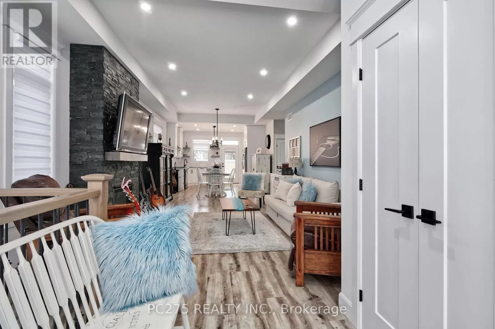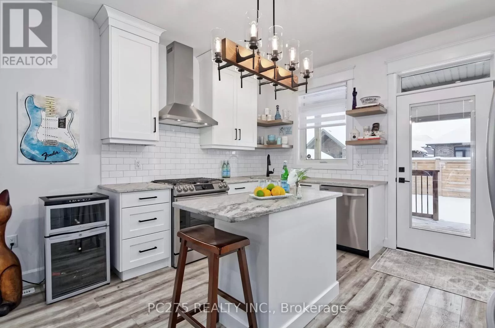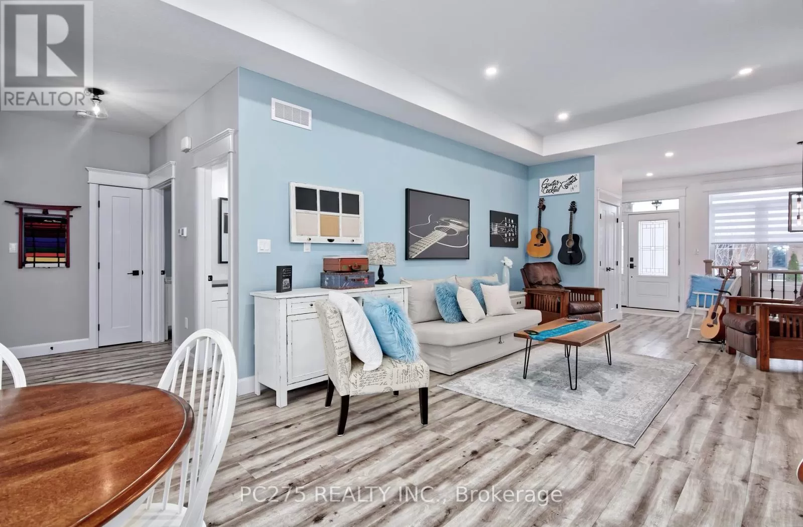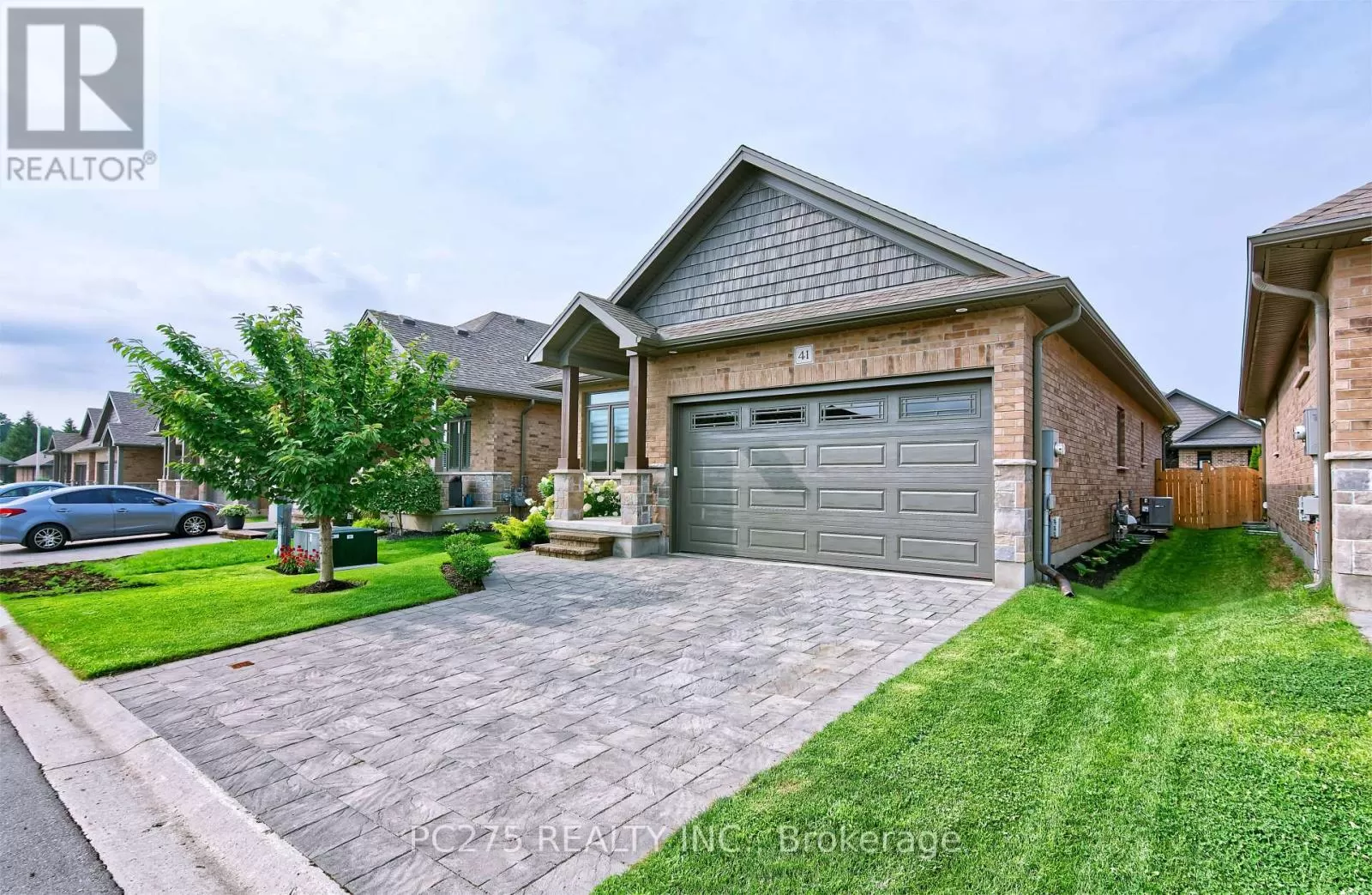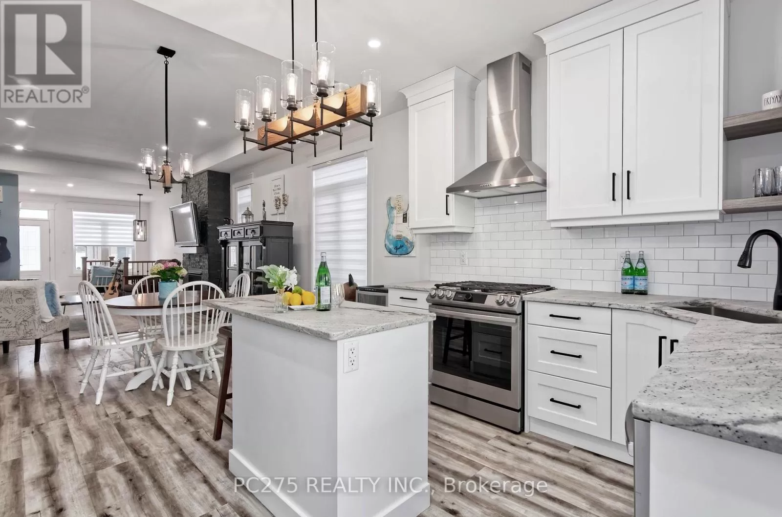 Cross Streets: Saxton/Collins Way. ** Directions: From Saxton turn North onto Collins Way. If you're looking for a beautiful bungalow condo with a two-car garage and love to golf, this is the perfect opportunity for you! Located beside Caradoc Sands Golf Course in Strathroy, this move-in ready, turn-key home is now five years old and perfect for first-time buyers or those looking to downsize. Step inside to find a stunning open-concept living space featuring vinyl flooring, a floor-to-ceiling fireplace, and a gas stove in the modern kitchen. The kitchen also boasts quartz countertops, a stylish backsplash, and plenty of space for entertaining. The spacious primary bedroom includes a luxurious ensuite with double sinks and a walk-in rainfall shower, creating the perfect retreat. Outside, enjoy your fully fenced, private backyard, complete with a covered deck and gas line BBQ hookup, ideal for outdoor gatherings. The attached two-car garage keeps your vehicles protected from the elements. Plus, the basement is already framed and ready to be completed, giving you the opportunity to customize it to your needs. This home is perfect for golf lovers, first-time buyers, or those looking to downsize while enjoying a low-maintenance lifestyle near the greens. Dont miss out on this incredible opportunity! (id:27476)