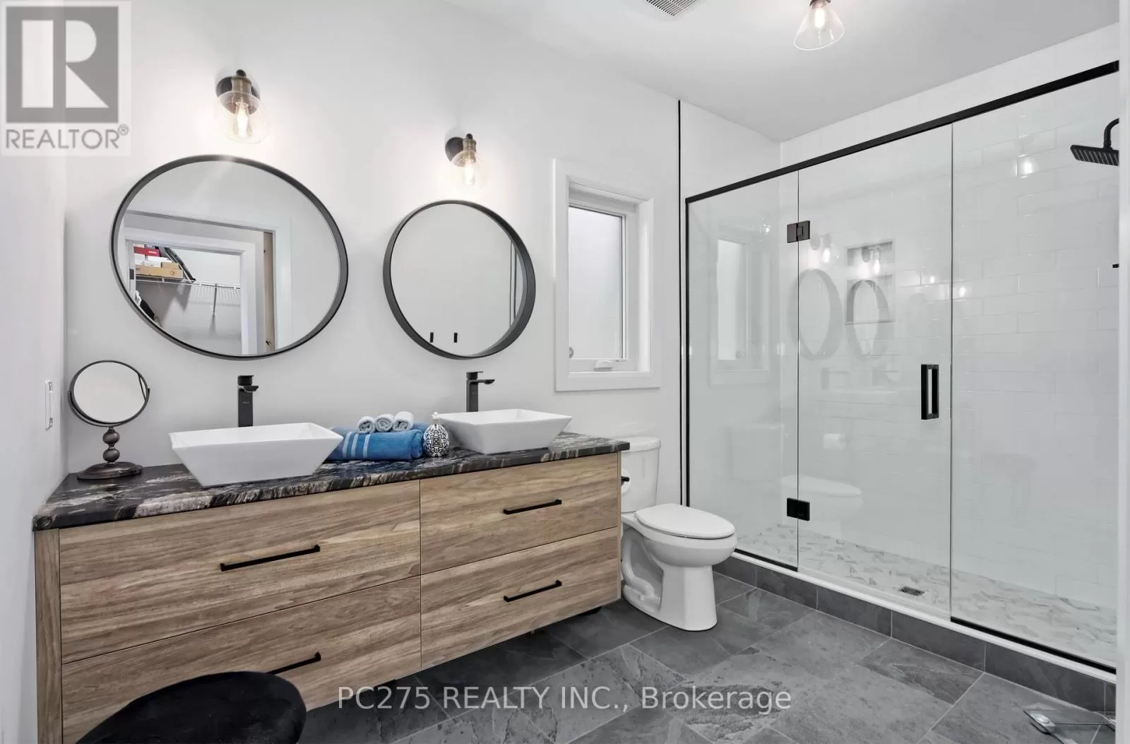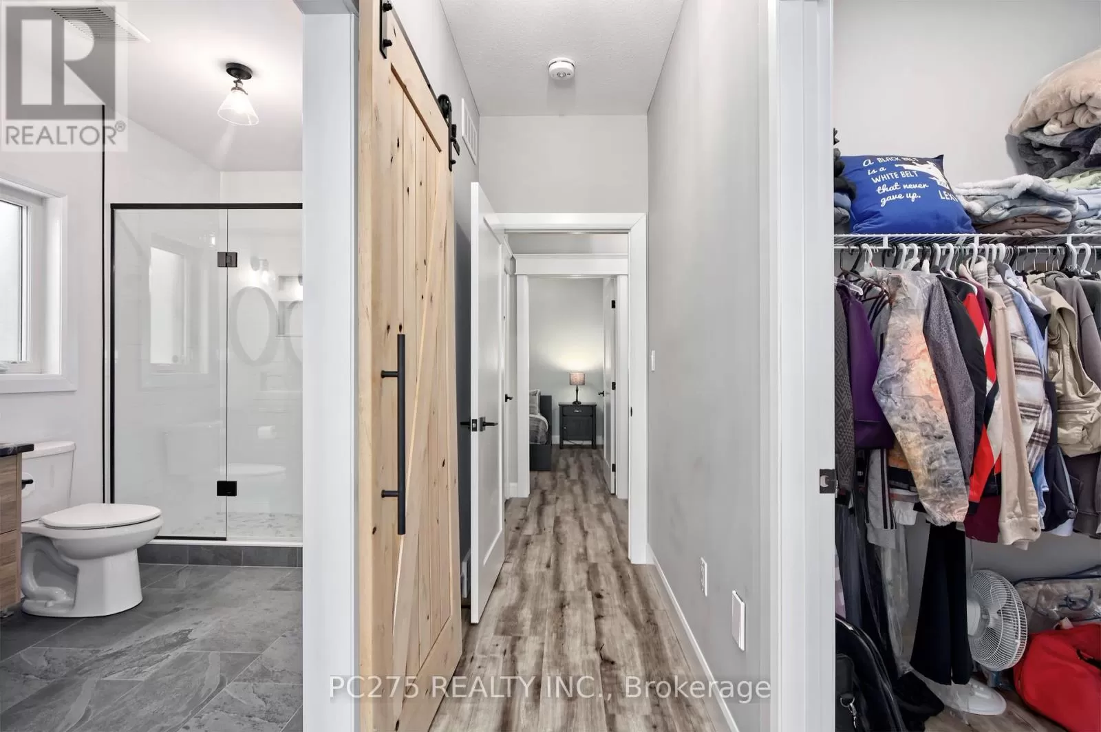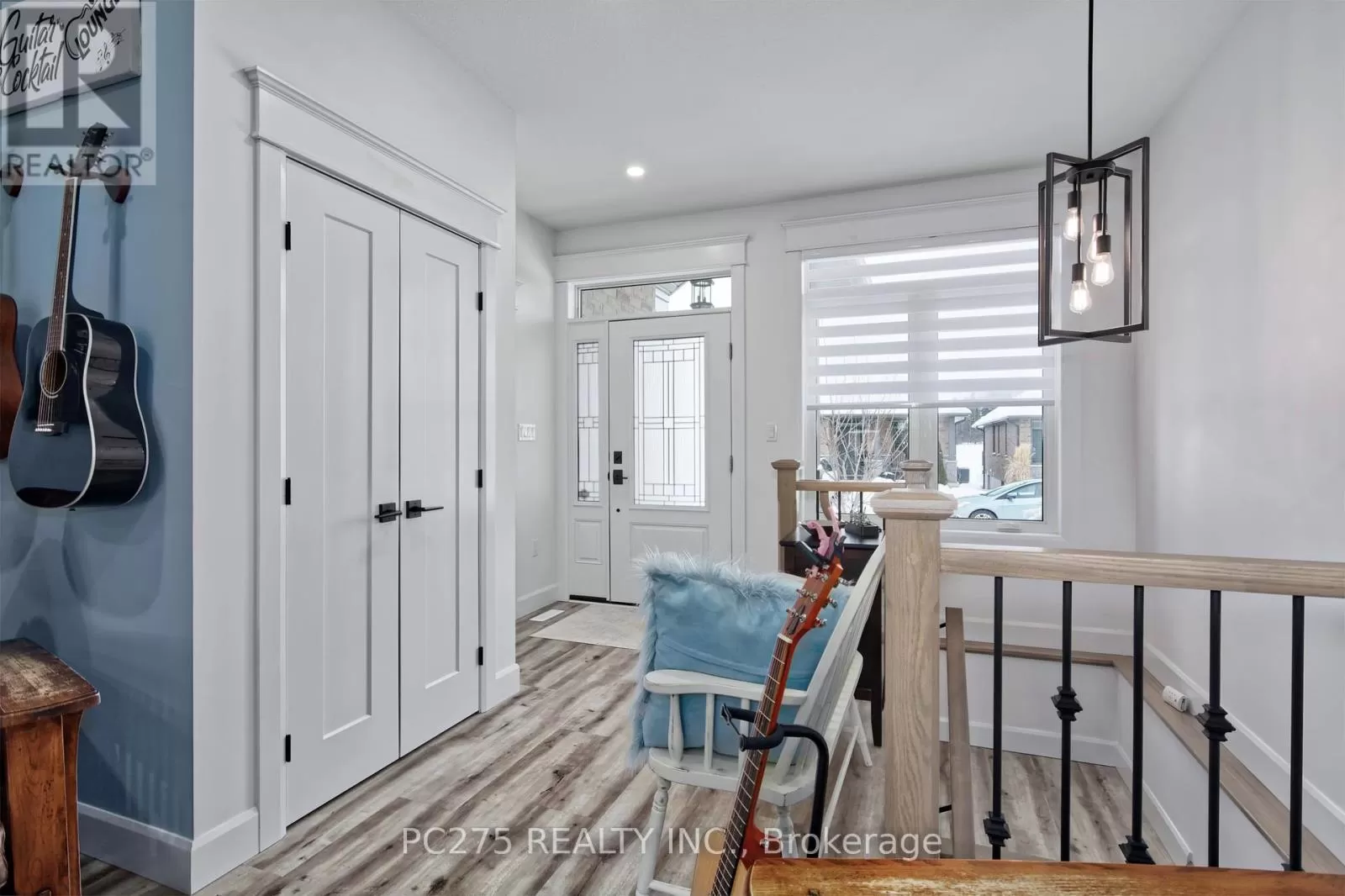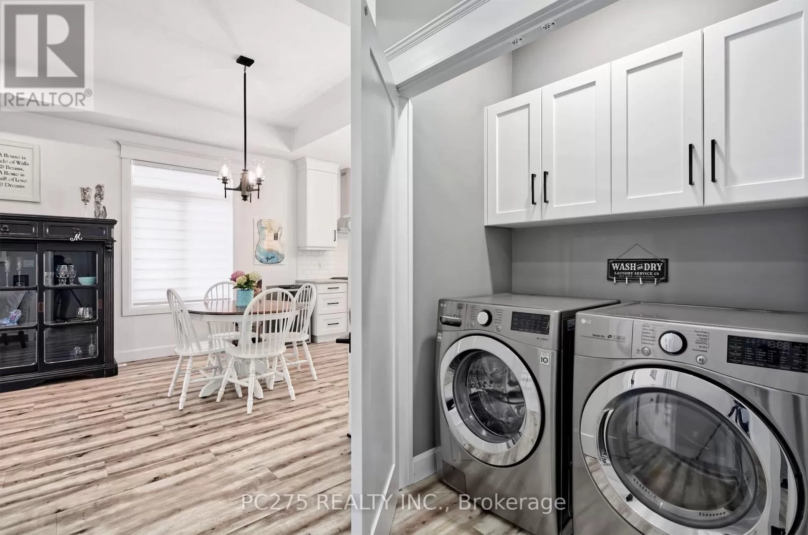 Cross Streets: Saxton/Collins Way. ** Directions: From Saxton turn North onto Collins Way. If you're looking for a beautiful bungalow condo with a two-car garage and love to golf, this is the perfect opportunity for you! Located beside Caradoc Sands Golf Course in Strathroy, this move-in ready, turn-key home is now five years old and perfect for first-time buyers or those looking to downsize. Step inside to find a stunning open-concept living space featuring vinyl flooring, a floor-to-ceiling fireplace, and a gas stove in the modern kitchen. The kitchen also boasts quartz countertops, a stylish backsplash, and plenty of space for entertaining. The spacious primary bedroom includes a luxurious ensuite with double sinks and a walk-in rainfall shower, creating the perfect retreat. Outside, enjoy your fully fenced, private backyard, complete with a covered deck and gas line BBQ hookup, ideal for outdoor gatherings. The attached two-car garage keeps your vehicles protected from the elements. Plus, the basement is already framed and ready to be completed, giving you the opportunity to customize it to your needs. This home is perfect for golf lovers, first-time buyers, or those looking to downsize while enjoying a low-maintenance lifestyle near the greens. Dont miss out on this incredible opportunity! (id:27476)