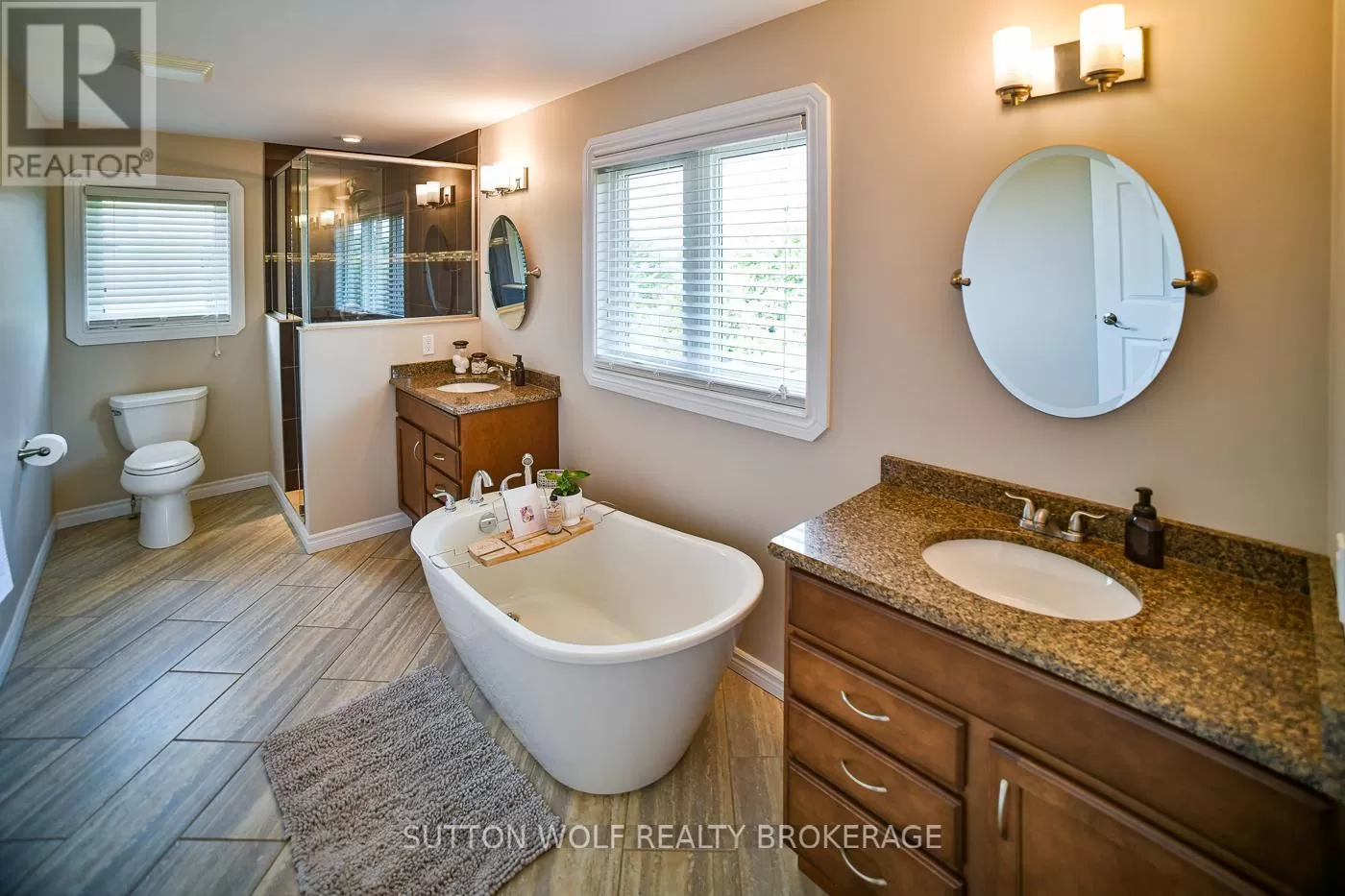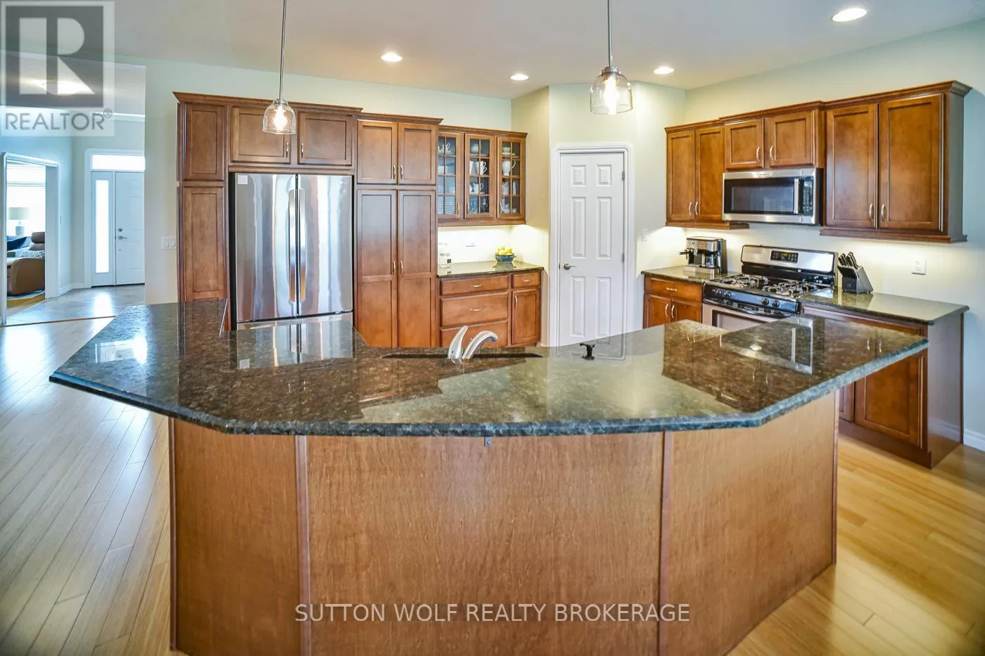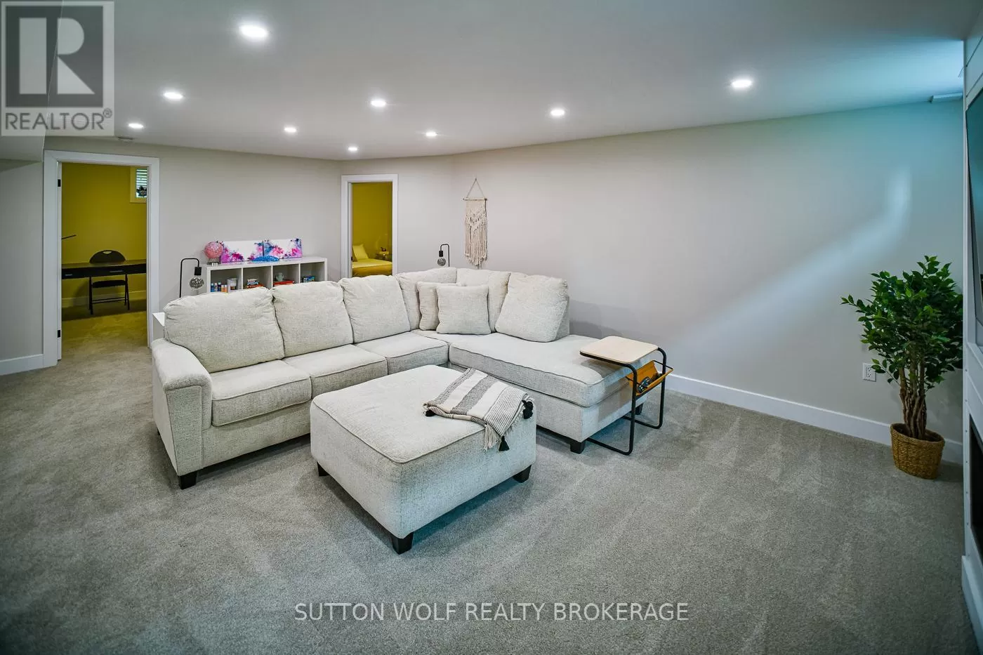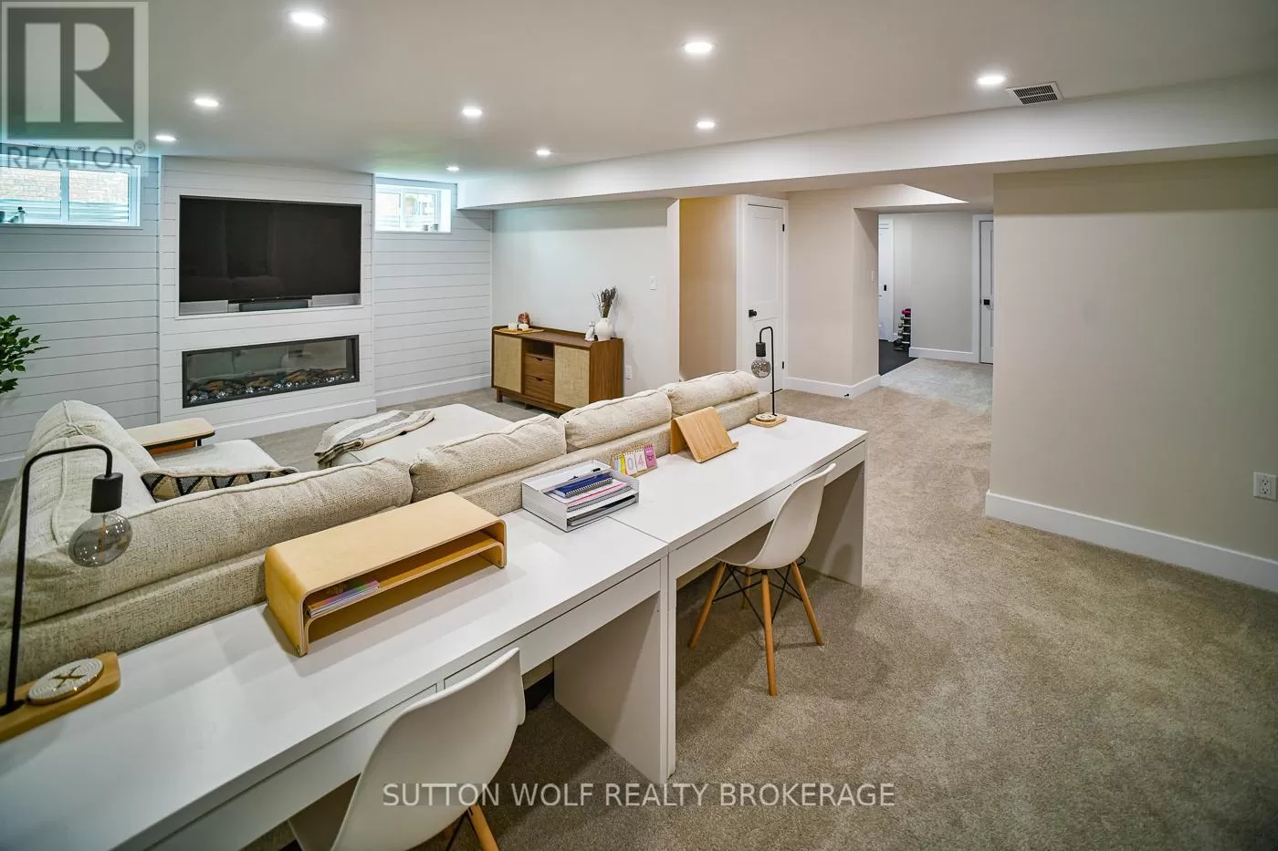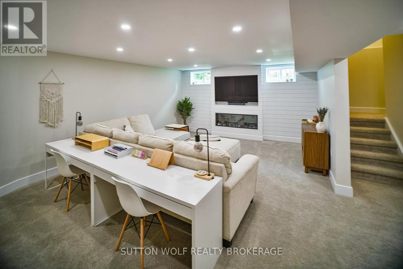 GLENDON DR Welcome to this spacious and beautiful updated 2-storey home on an impressive 75 x 265 lot. With 3+2 bedrooms and 3.5 bathrooms, this home offers room for the whole family. The open-concept main floor features soaring ceilings, a bright kitchen with access to the covered porch, and a cozy gas fire place in the living room. A dedicated main floor office with custom-built-in cabinetry adds the perfect work-from home space. The recently finished lower level includes a large family room with an electric fireplace, two additional bedrooms, and full bath. Enjoy the convenience of a double car garage with rear overhead door leading to the backyard, ideal for storage toys or accessing the expansive yard. Updates include a new furnace and A/C (2024), roof (2019), and Sandpoint well for outdoor watering. Includes 6 appliances Just move in and enjoy! (id:27476)