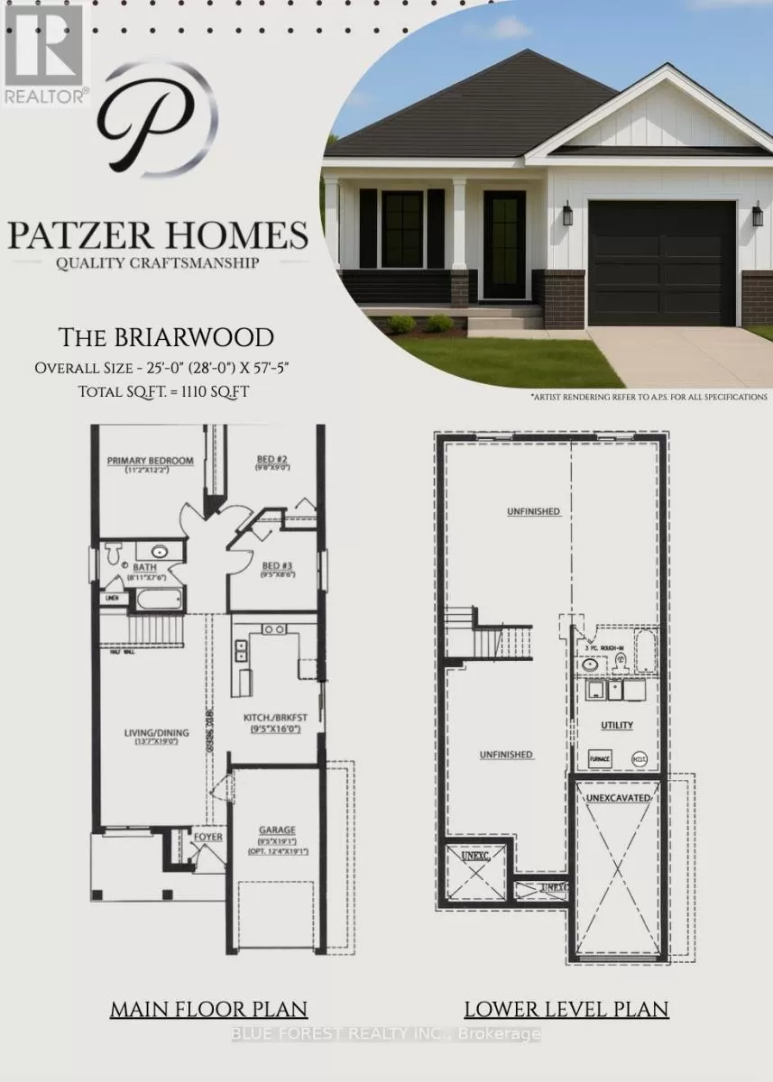 Cross Streets: Mctavish Street. ** Directions: Off of Albert St. Welcome to The Briarwood by Patzer Homes, a beautifully designed FREEHOLD new build offering stylish and efficient one-floor living. This thoughtfully laid-out bungalow features three bedrooms and a full bath, ideal for families, first-time buyers, or those looking to downsize without compromising comfort. Step into the open-concept living and dining area filled with natural light, perfect for relaxing or hosting guests. The kitchen offers plenty of counter space, a functional layout with direct access to the backyard, great for everyday living and entertaining.The primary bedroom is tucked at the back of the home for added privacy, while two additional bedrooms offer flexible space for kids, guests, or a home office. A modern full bathroom and linen closet are conveniently located nearby. Take advantage of the flexibility of this design with the option to have 2 bedrooms and an added en-suite bathroom. The lower level provides a full unfinished basement with rough-in for a future bathroom, laundry area, utility room, and plenty of space to add additional bedrooms while still having lots of storage space. A charming covered front porch adds curb appeal, and the attached garage with inside entry offers both convenience and extra storage space. The Briarwood is the perfect blend of comfort, style, and functionality in a compact and manageable footprint, ready for you to make it home. TO BE BUILT! Other lots and designs are available. Price based on base lot, premiums extra. Check out more plans at BUCHANANCROSSINGS.COM ** This is a linked property.** (id:27476)