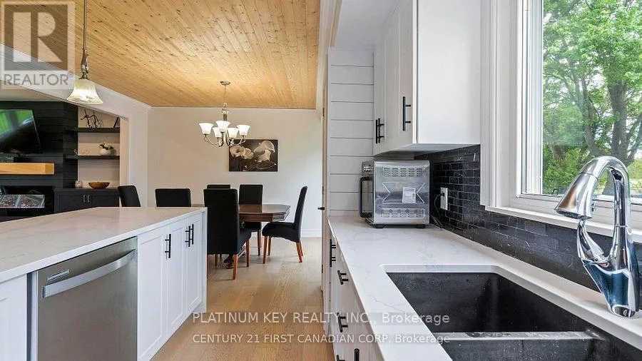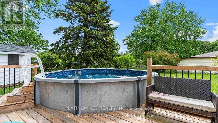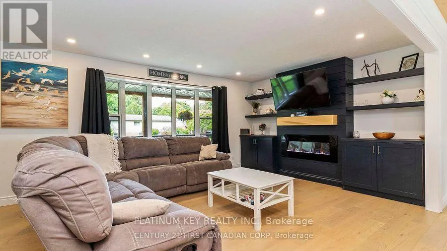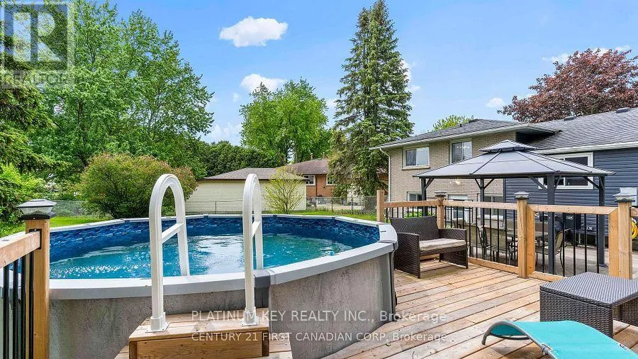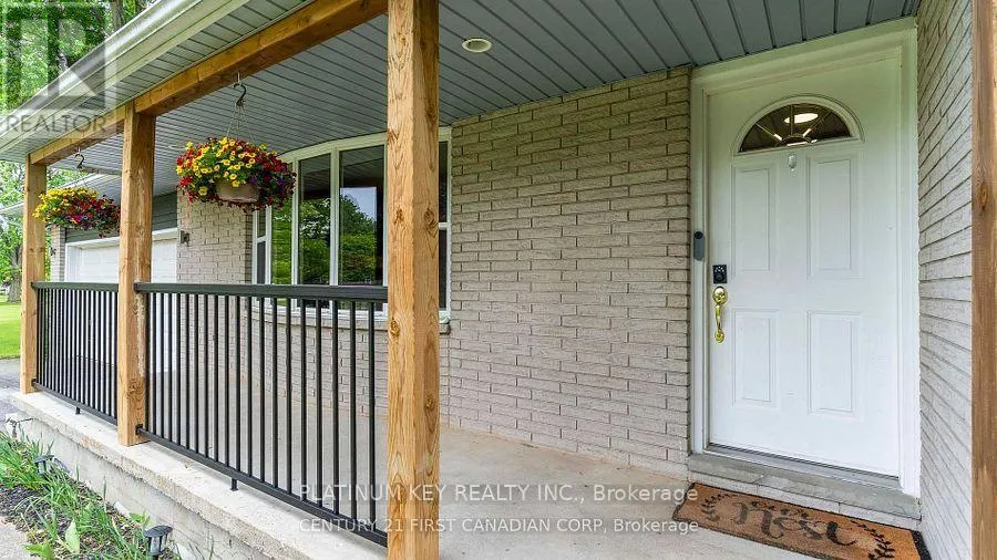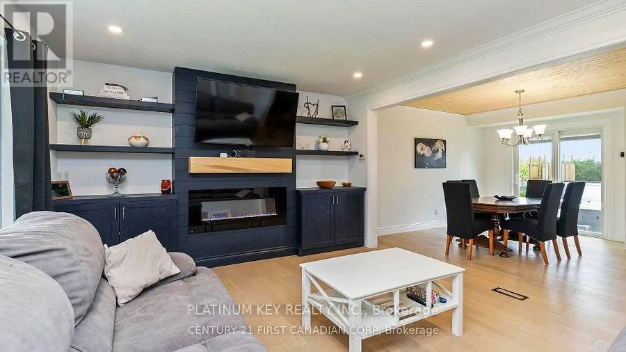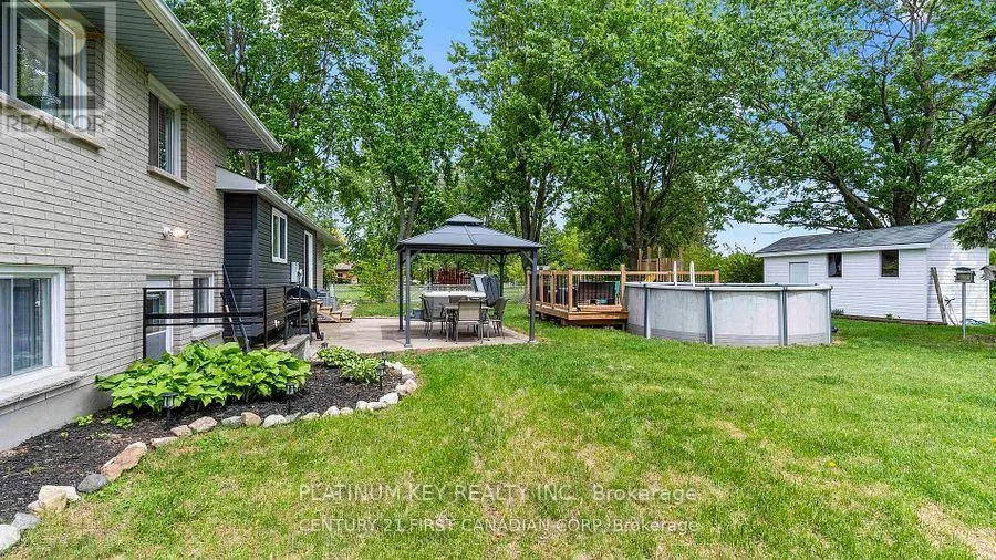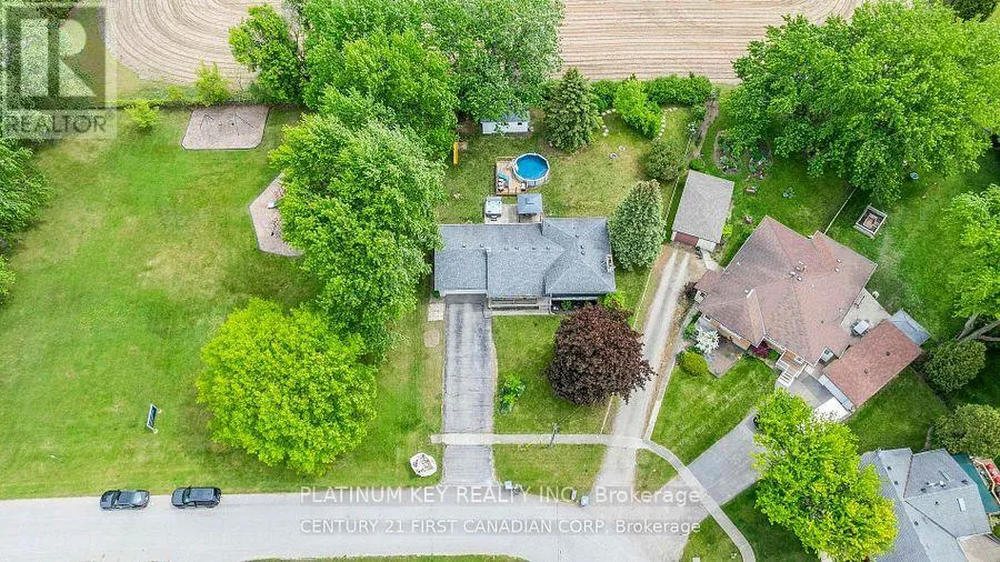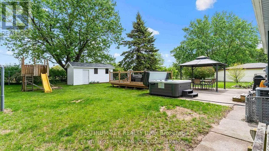 Cross Streets: London Street. ** Directions: From Adelaide Rd (Hwy 81), turn East on Thomas St, North on London St and East on to Glover Crescent. Modern updates meet small-town charm in this beautifully renovated 3 bedroom, 2.5 bath home on a rare 70 x 160+ ft lot, located on a quiet crescent beside a park in Mount Brydges. Renovated in 2022, the main and upper levels feature engineered hardwood flooring and a stunning open-concept layout. The custom kitchen includes quartz countertops, a waterfall island with eating bar, marble tile backsplash, and a feature ceiling, flowing into the dining area with patio doors to a huge, fully fenced yard. The bright living room offers a large bay window, electric fireplace, pot lights, and custom built-ins. Upstairs, the oversized primary suite includes a walk-in tile shower with glass doors in the updated ensuite. A second spacious bedroom is also located on the second floor along with a renovated 4pc main bath. The lower level is above grade and includes a walk out to the back yard, a spacious family room with fireplace, a third bedroom and a convenient 2 pc bath. The basement offers evening more living space with a finished office space, a large laundry room, and access to the attached 2 car garage. Unfinished storage area provides added flexibility. The fully fenced backyard includes a new, above ground pool with decking (2023) patio, and a 20 x 8ft workshop on concrete pad with hydro, installed in 2024. Enjoy peaceful views of farmers fields, lush green park and local wildlife, while being just minutes from the community center, school, arena, shops, local restaurants and quick access to Hwy 402. Only 15 minutes to London and 10 minutes to Strathroy. (id:27476)