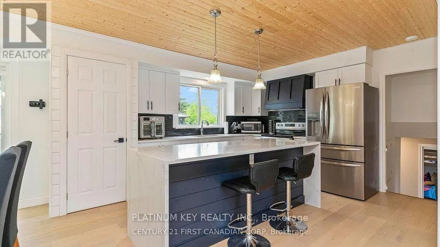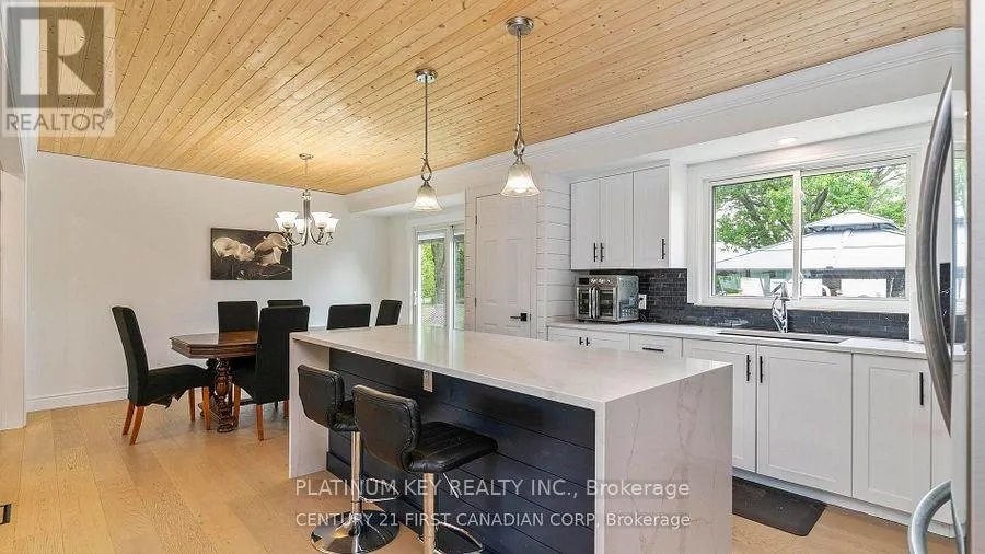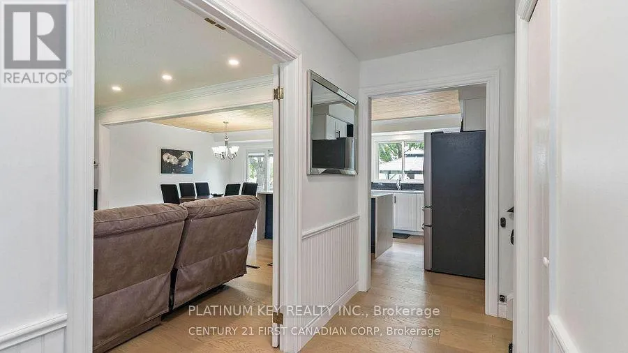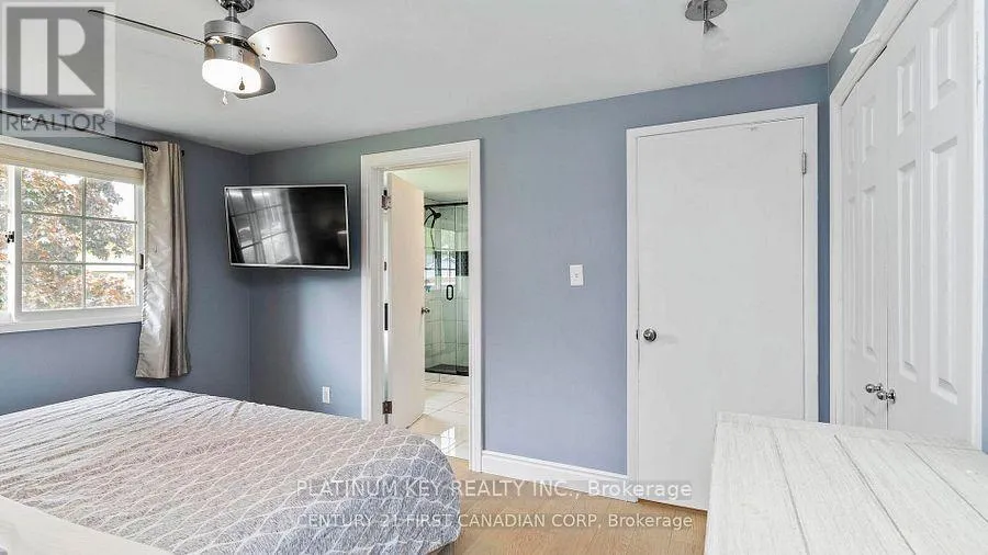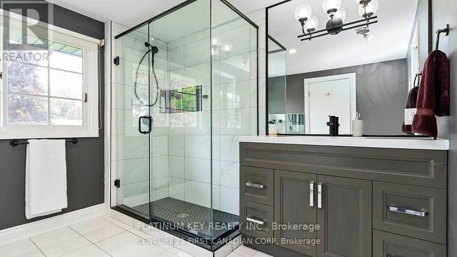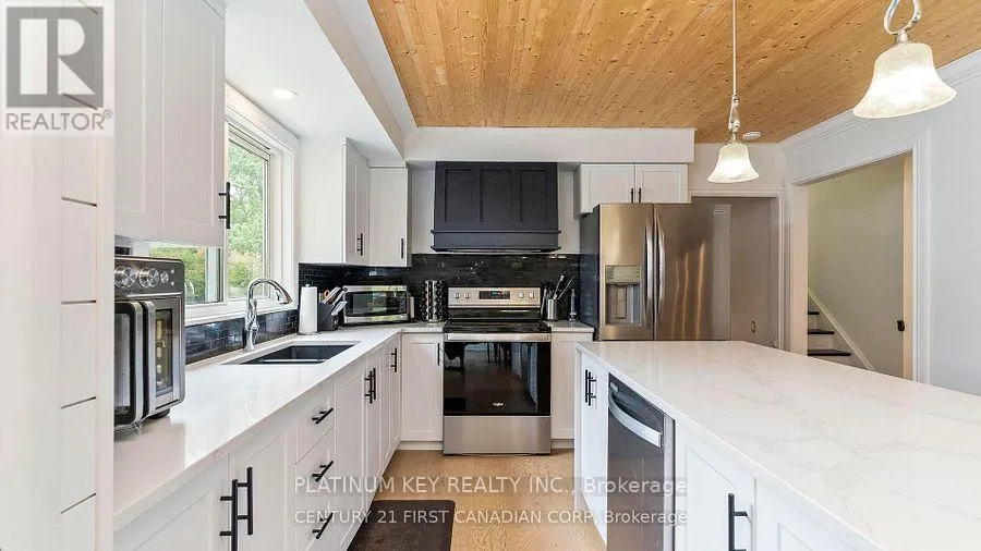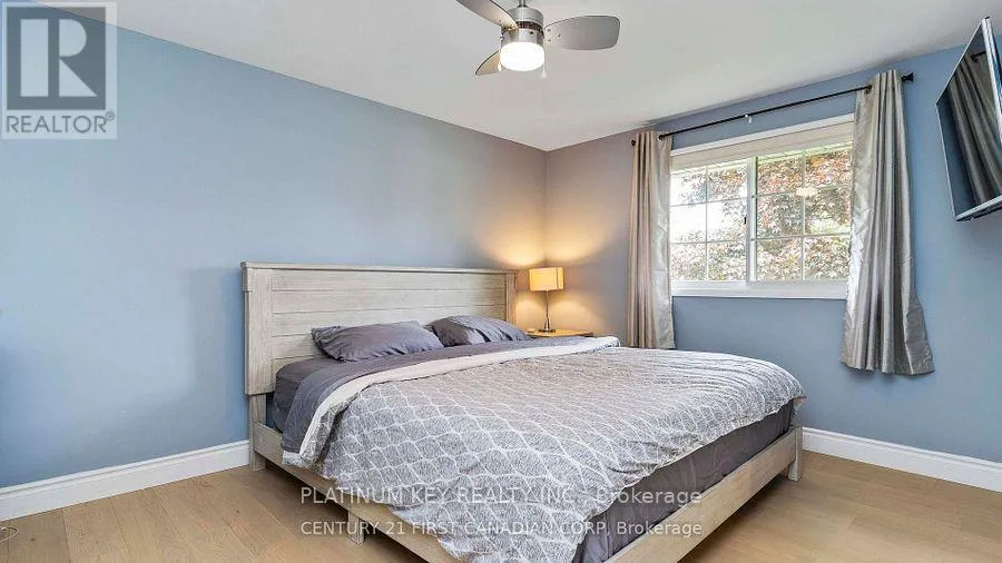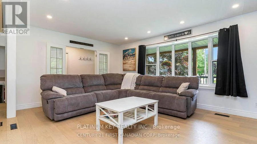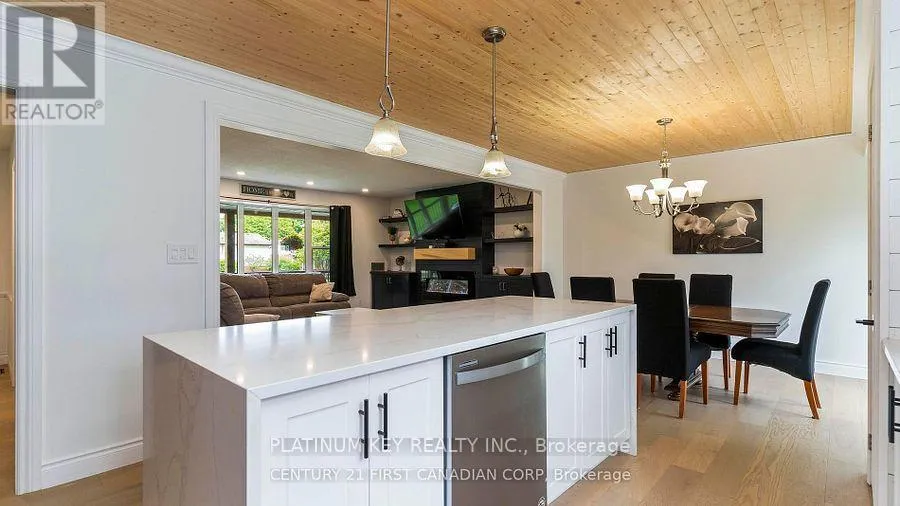 Cross Streets: London Street. ** Directions: From Adelaide Rd (Hwy 81), turn East on Thomas St, North on London St and East on to Glover Crescent. Modern updates meet small-town charm in this beautifully renovated 3 bedroom, 2.5 bath home on a rare 70 x 160+ ft lot, located on a quiet crescent beside a park in Mount Brydges. Renovated in 2022, the main and upper levels feature engineered hardwood flooring and a stunning open-concept layout. The custom kitchen includes quartz countertops, a waterfall island with eating bar, marble tile backsplash, and a feature ceiling, flowing into the dining area with patio doors to a huge, fully fenced yard. The bright living room offers a large bay window, electric fireplace, pot lights, and custom built-ins. Upstairs, the oversized primary suite includes a walk-in tile shower with glass doors in the updated ensuite. A second spacious bedroom is also located on the second floor along with a renovated 4pc main bath. The lower level is above grade and includes a walk out to the back yard, a spacious family room with fireplace, a third bedroom and a convenient 2 pc bath. The basement offers evening more living space with a finished office space, a large laundry room, and access to the attached 2 car garage. Unfinished storage area provides added flexibility. The fully fenced backyard includes a new, above ground pool with decking (2023) patio, and a 20 x 8ft workshop on concrete pad with hydro, installed in 2024. Enjoy peaceful views of farmers fields, lush green park and local wildlife, while being just minutes from the community center, school, arena, shops, local restaurants and quick access to Hwy 402. Only 15 minutes to London and 10 minutes to Strathroy. (id:27476)