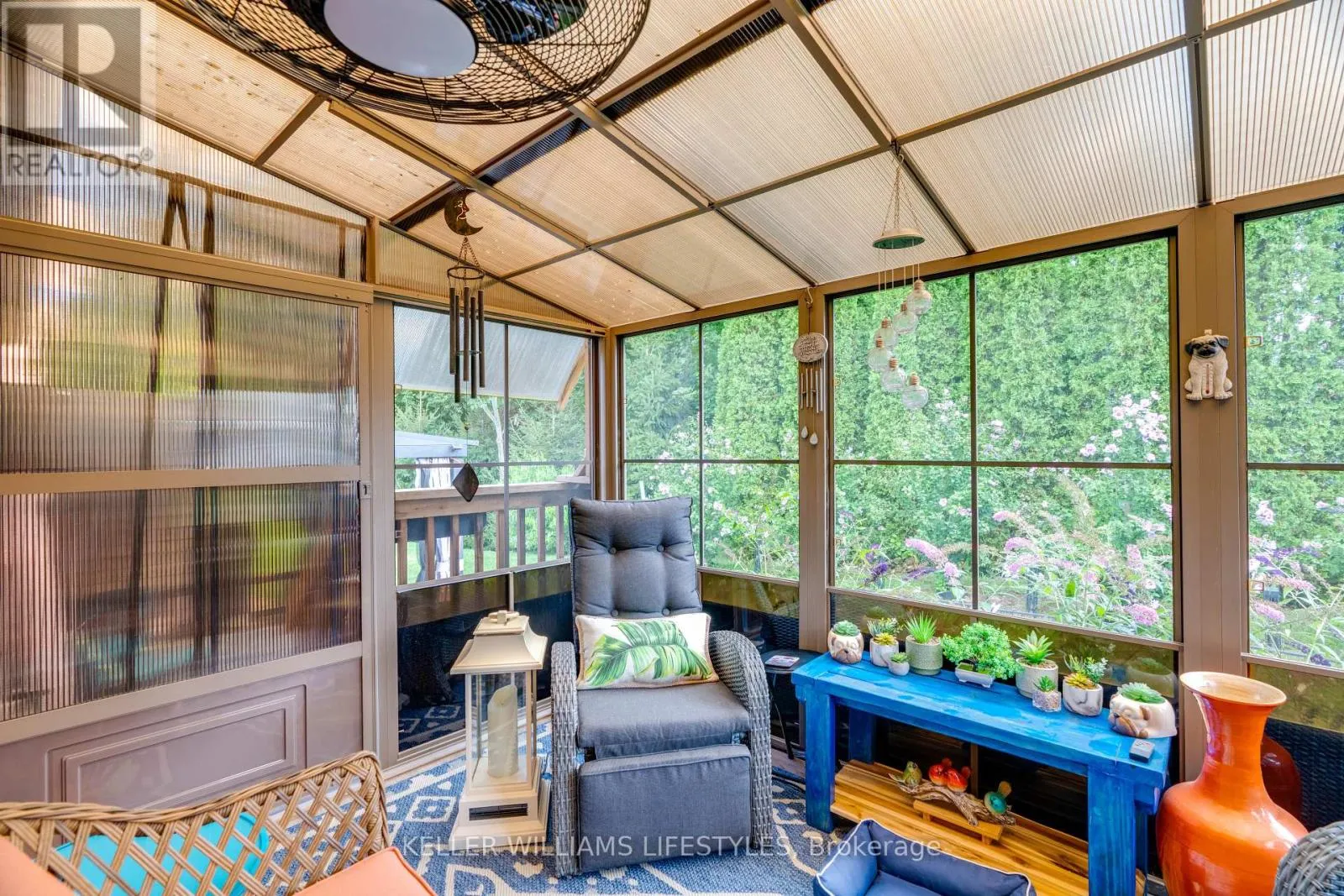 Cross Streets: Saxton Rd. & Bond St. ** Directions: From Carroll St. E, Turn onto Saxton Rd., Turn Right onto Bond St., Right onto Kellestine Dr. Welcome to 21 Kellestine Drive, Strathroy. Nestled in Twin Elm Estates, a highly sought-after rent-controlled adult-lifestyle community, this charming home combines comfort, convenience, and peace of mind. Ideally located, you're just a short walk to shopping centres, including Walmart, dining, and Caradoc Sands Golf Club, offering both daily essentials and leisure right at your doorstep. Inside, this 2-bedroom bungalow is thoughtfully designed. The primary bedroom features an ensuite with a walk-in shower, while the second bedroom offers a spacious closet for added storage. The kitchen showcases quartz countertops, and the cozy gas fireplace provides warmth and ambiance during the cooler months. For added peace of mind, the home is equipped with a full-house generator, ensuring uninterrupted comfort regardless of the weather, and leaf guards along back eavestroughs. Step into the 3 seasonal sunroom with luxury vinyl flooring and outside you'll find a private backyard with two storage sheds, perfect for yard tools and seasonal items. Living in Twin Elm means more than just a home; it's a lifestyle. Residents enjoy access to a well-equipped clubhouse featuring a hall, kitchen, weight room, darts, billiards, shuffleboard, and a calendar full of resident-organized events. For those with extra recreational vehicles, on-site RV and boat storage is available for an additional fee. Qualified buyers may assume the current lease at $647.64 mo + taxes (plus approx. $50/mo. assumption fee) Lot Tax $44.31, Structure Tax $148.19, Garbage Collection $15.22 Total = $890.14. Land Lease increase to $800 if lease assignment is not approved. (id:27476)