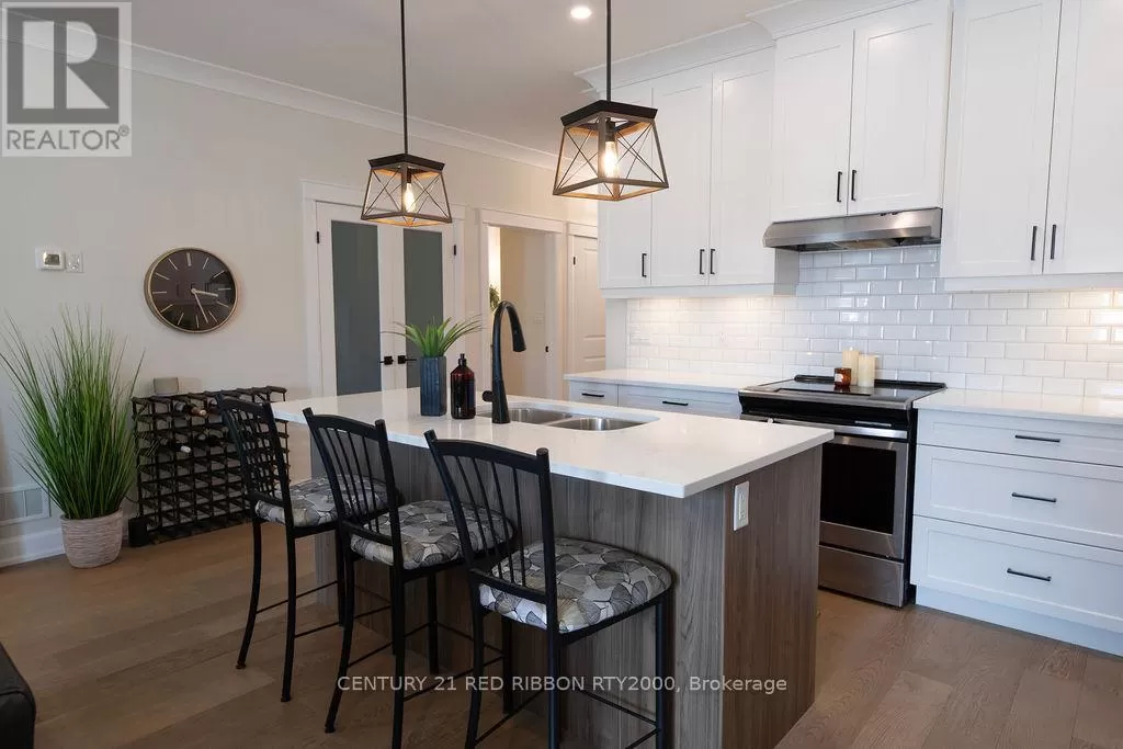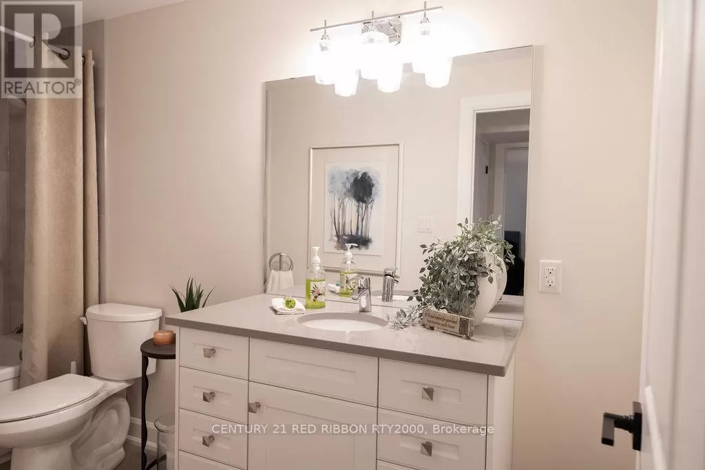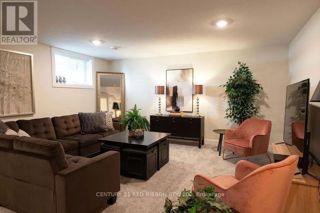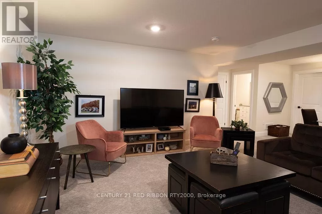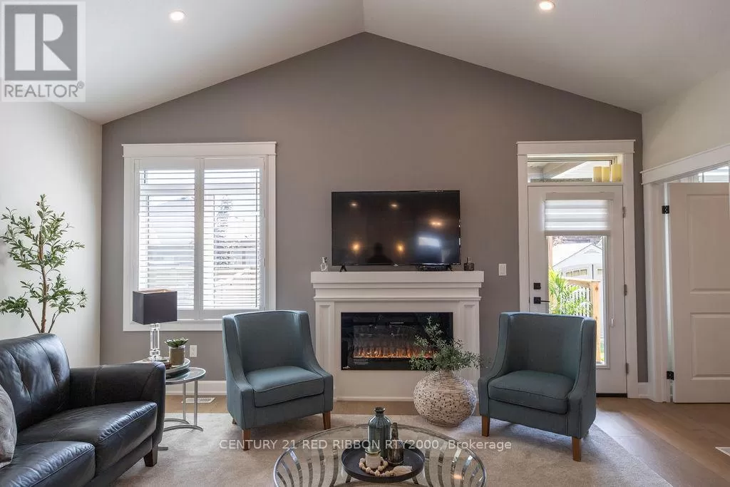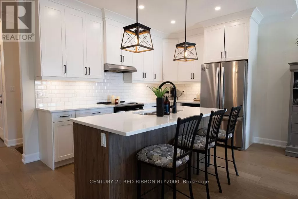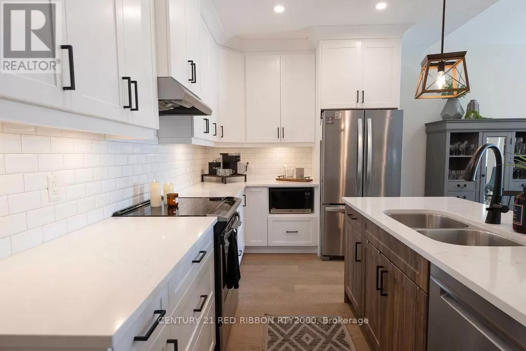 Cross Streets: Saxton Rd. ** Directions: Turn on to Collins Way from Saxton. LOOK NO FURTHER...THIS IS THE ONE! Located in charming South Grove Meadows next to the Caradoc Sands golf course, this exquisite 2+1 bedroom condo might be just what you've been looking for. Quality constructed by Dwyer Homes, this residence exudes elegance, showcasing stunning curb appeal, high-end finishes, and meticulous attention to detail. The main level features an open-concept design that includes a spacious great room with vaulted ceilings and a modern electric fireplace, offering easy access through the patio door to the inviting back deck and fully fenced backyard. The fabulous kitchen is designed for both beauty and functionality, complete with a stylish subway tile backsplash, luxurious quartz countertops, and an island, accompanied by high quality appliances to enhance your cooking experience. The tranquil primary bedroom serves as a perfect retreat, featuring a generous walk-in closet and a stunning four-piece en suite with double sinks and a beautifully tiled walk-in glass door shower. A versatile second bedroom, currently used as a dining room, can easily transition into an office or sitting area. Completing the main level are a four-piece bathroom and laundry area, making everyday living convenient all on one level. The fully finished lower level adds spaciousness with a sizable family room, an additional well-proportioned third bedroom, and another full four-piece bath, alongside ample storage in the utility room. Step outside to the backyard, featuring a 9' x 12' covered deck, a fully fenced yard, a storage shed and a Sandpoint system for watering the lawn or washing the cars. Complete with a single-car garage, beautifully landscaped surroundings, and a prime location near the dog park, the York Street sports fields/ playground and all of the many amenities that Strathroy has to offer, this fabulous home is a must-see for anyone seeking comfort, style, and community. Don't miss the opportunity to experience this blend of luxury and convenience! (id:27476)