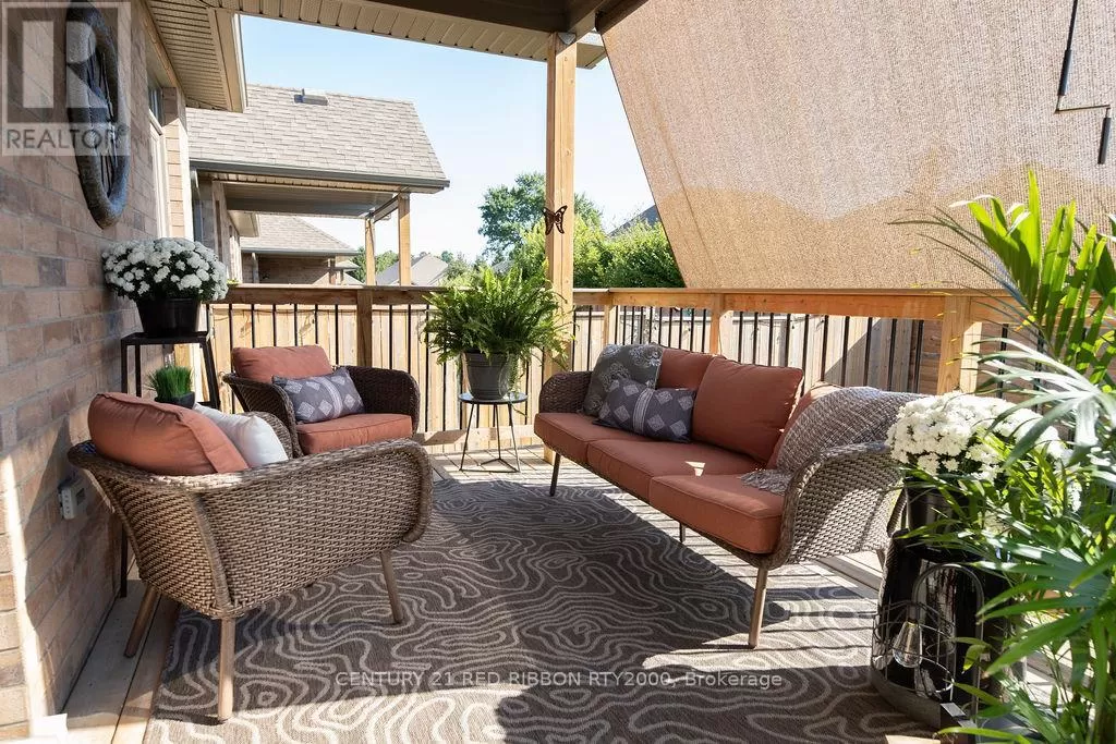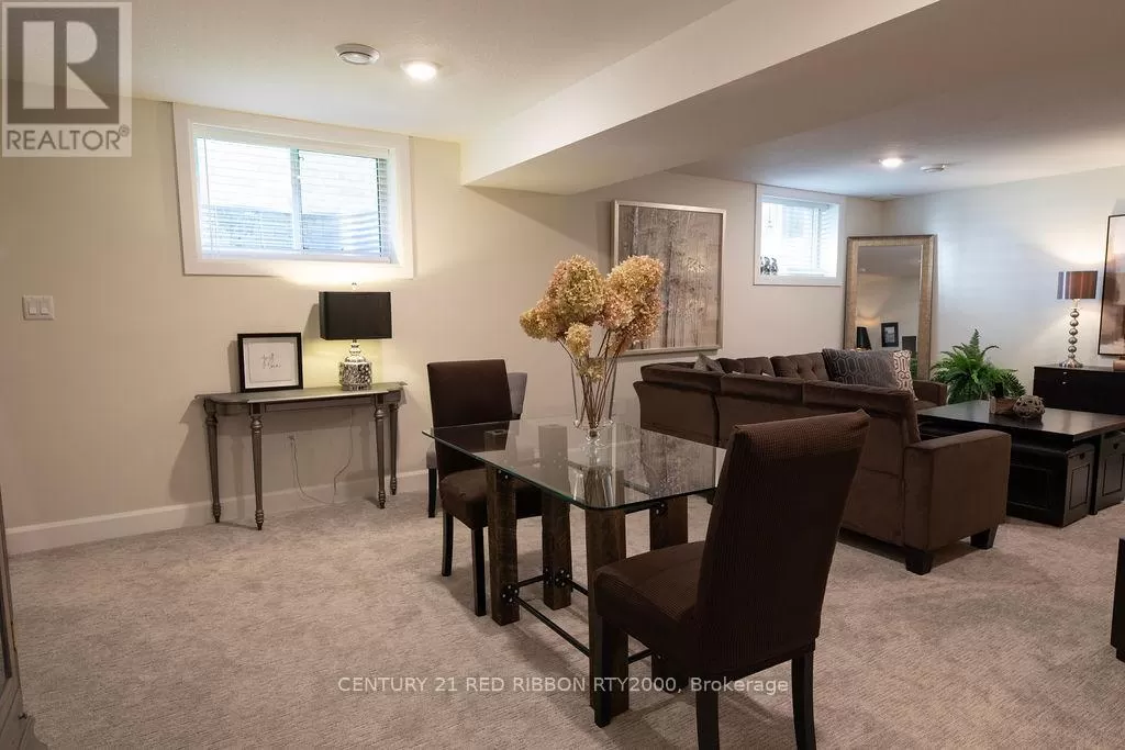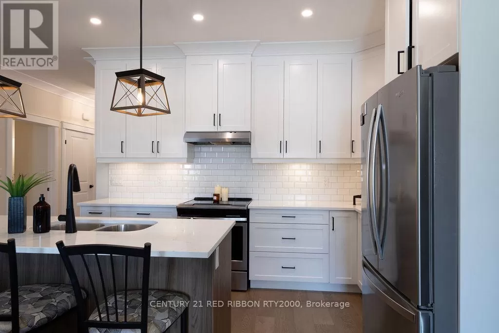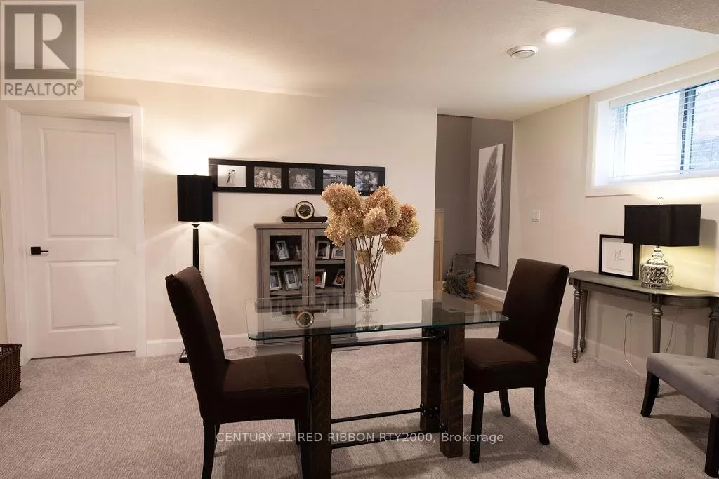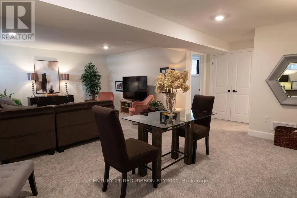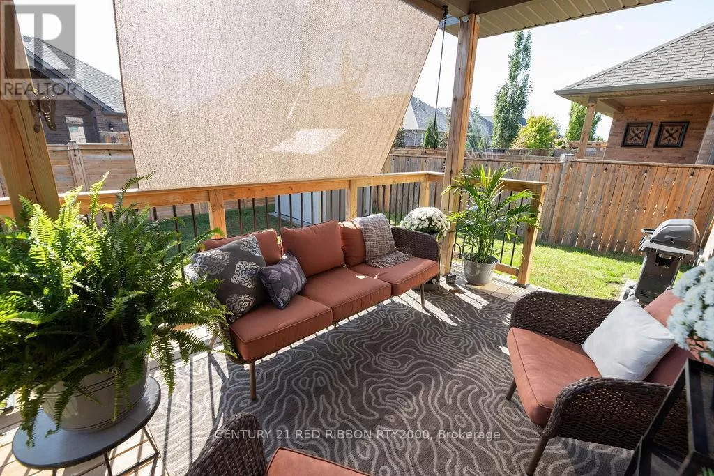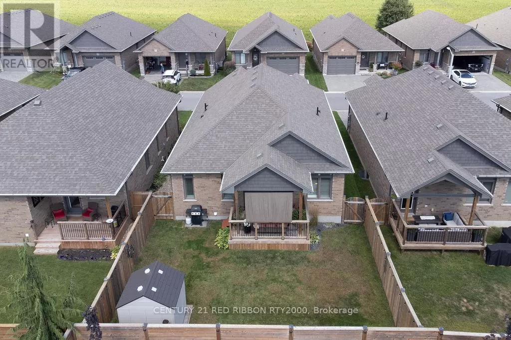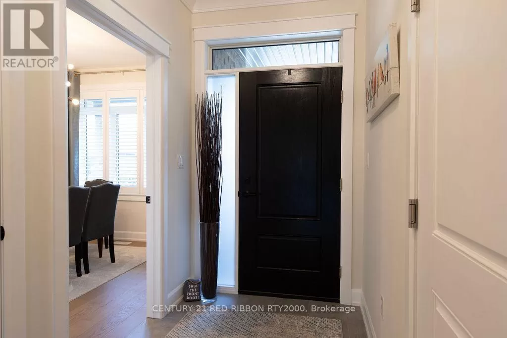 Cross Streets: Saxton Rd. ** Directions: Turn on to Collins Way from Saxton. LOOK NO FURTHER...THIS IS THE ONE! Located in charming South Grove Meadows next to the Caradoc Sands golf course, this exquisite 2+1 bedroom condo might be just what you've been looking for. Quality constructed by Dwyer Homes, this residence exudes elegance, showcasing stunning curb appeal, high-end finishes, and meticulous attention to detail. The main level features an open-concept design that includes a spacious great room with vaulted ceilings and a modern electric fireplace, offering easy access through the patio door to the inviting back deck and fully fenced backyard. The fabulous kitchen is designed for both beauty and functionality, complete with a stylish subway tile backsplash, luxurious quartz countertops, and an island, accompanied by high quality appliances to enhance your cooking experience. The tranquil primary bedroom serves as a perfect retreat, featuring a generous walk-in closet and a stunning four-piece en suite with double sinks and a beautifully tiled walk-in glass door shower. A versatile second bedroom, currently used as a dining room, can easily transition into an office or sitting area. Completing the main level are a four-piece bathroom and laundry area, making everyday living convenient all on one level. The fully finished lower level adds spaciousness with a sizable family room, an additional well-proportioned third bedroom, and another full four-piece bath, alongside ample storage in the utility room. Step outside to the backyard, featuring a 9' x 12' covered deck, a fully fenced yard, a storage shed and a Sandpoint system for watering the lawn or washing the cars. Complete with a single-car garage, beautifully landscaped surroundings, and a prime location near the dog park, the York Street sports fields/ playground and all of the many amenities that Strathroy has to offer, this fabulous home is a must-see for anyone seeking comfort, style, and community. Don't miss the opportunity to experience this blend of luxury and convenience! (id:27476)