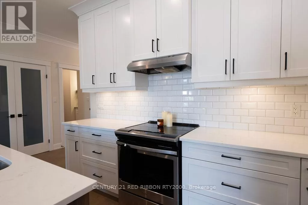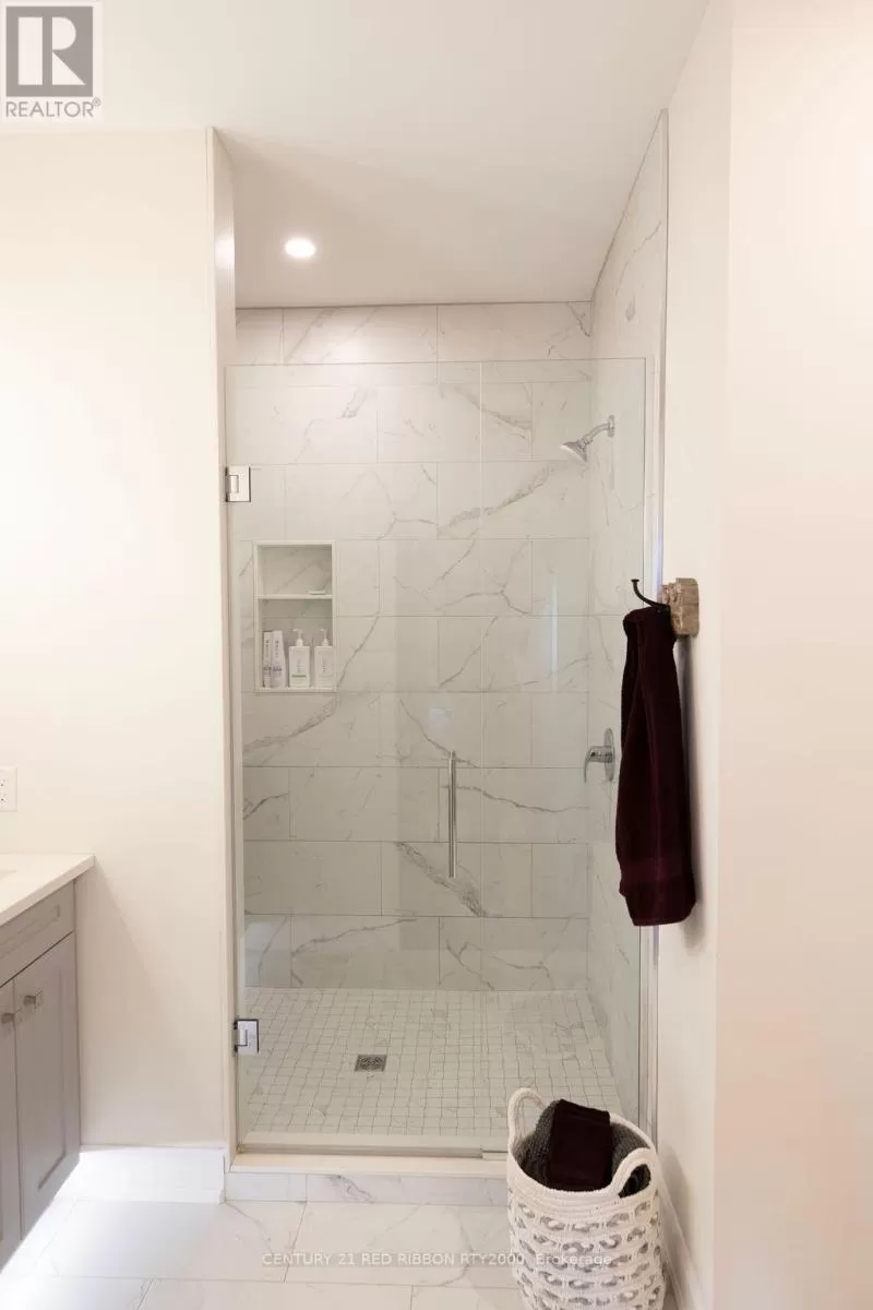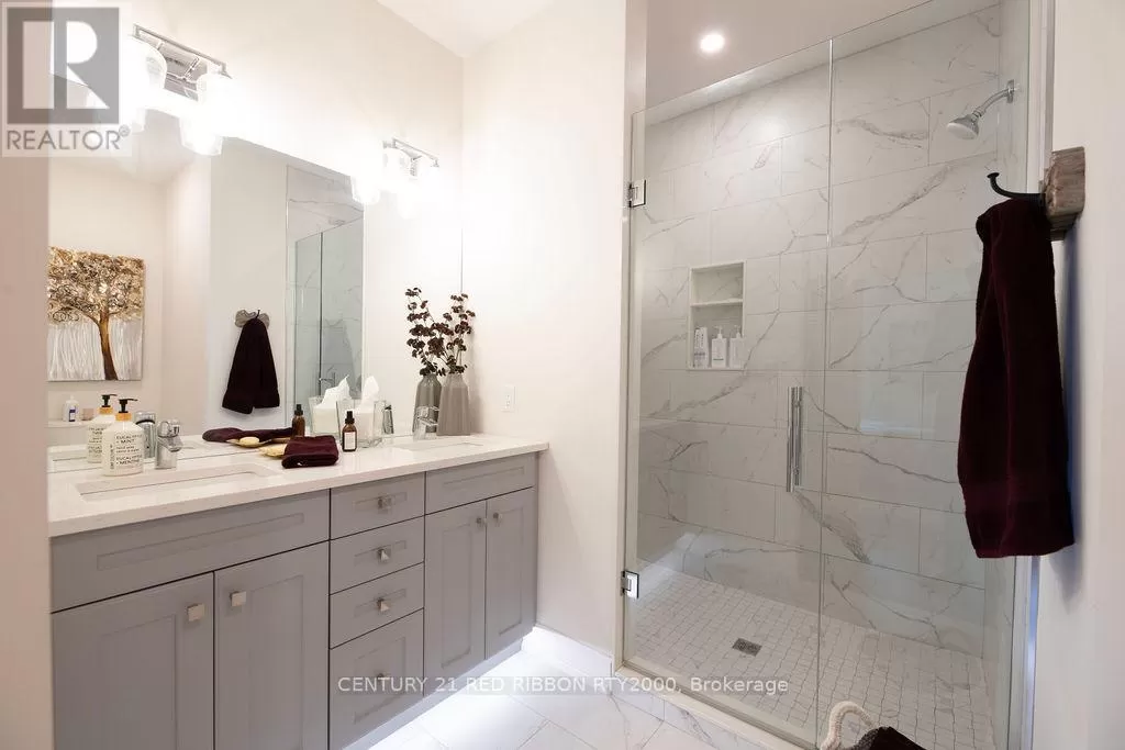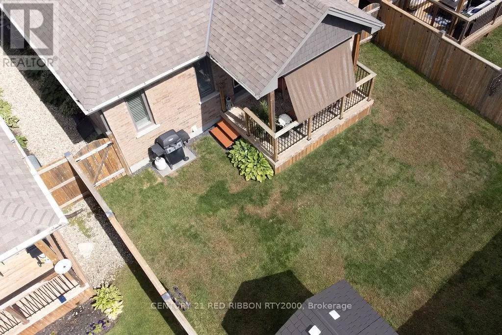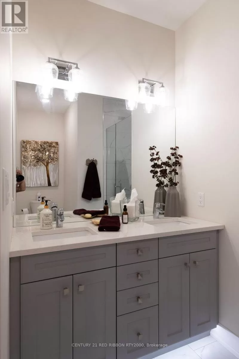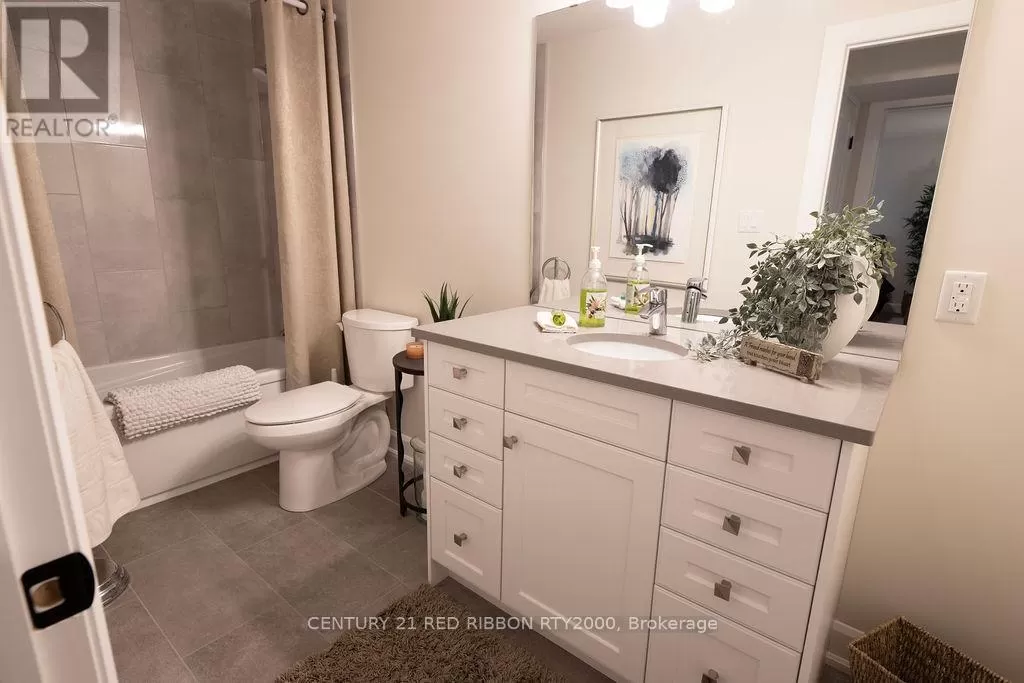 Cross Streets: Saxton Rd. ** Directions: Turn on to Collins Way from Saxton. LOOK NO FURTHER...THIS IS THE ONE! Located in charming South Grove Meadows next to the Caradoc Sands golf course, this exquisite 2+1 bedroom condo might be just what you've been looking for. Quality constructed by Dwyer Homes, this residence exudes elegance, showcasing stunning curb appeal, high-end finishes, and meticulous attention to detail. The main level features an open-concept design that includes a spacious great room with vaulted ceilings and a modern electric fireplace, offering easy access through the patio door to the inviting back deck and fully fenced backyard. The fabulous kitchen is designed for both beauty and functionality, complete with a stylish subway tile backsplash, luxurious quartz countertops, and an island, accompanied by high quality appliances to enhance your cooking experience. The tranquil primary bedroom serves as a perfect retreat, featuring a generous walk-in closet and a stunning four-piece en suite with double sinks and a beautifully tiled walk-in glass door shower. A versatile second bedroom, currently used as a dining room, can easily transition into an office or sitting area. Completing the main level are a four-piece bathroom and laundry area, making everyday living convenient all on one level. The fully finished lower level adds spaciousness with a sizable family room, an additional well-proportioned third bedroom, and another full four-piece bath, alongside ample storage in the utility room. Step outside to the backyard, featuring a 9' x 12' covered deck, a fully fenced yard, a storage shed and a Sandpoint system for watering the lawn or washing the cars. Complete with a single-car garage, beautifully landscaped surroundings, and a prime location near the dog park, the York Street sports fields/ playground and all of the many amenities that Strathroy has to offer, this fabulous home is a must-see for anyone seeking comfort, style, and community. Don't miss the opportunity to experience this blend of luxury and convenience! (id:27476)