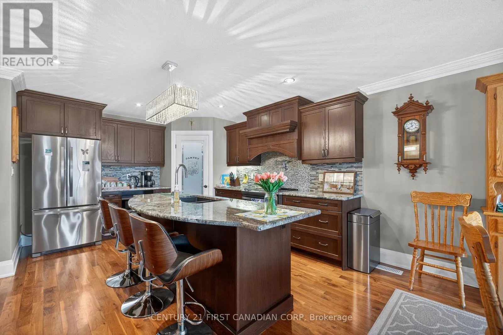 Cross Streets: Darcy. ** Directions: Head to Darcy, Darcy to MacDonald. Welcome home to 474 MacDonald Street in the north end. This former Dwyer model home was built with all the bells & whistles and shows like new! You will surely love this home from the moment you walk into the open concept main level featuring stunning walnut wood floors & stairs, glass railings, crown molding, tray ceiling, led lighting, a cozy gas fireplace in the great room and an incredible gourmet kitchen. The kitchen has loads of cupboard space, a corner pantry, a faucet over the stove to fill pots, professional range hood and a large island with lovely granite countertops. The spacious master bedroom has a 3 piece ensuite and walk-in closet and the front bedroom can also be used as an office space. The fully finished lower level has a huge family room, a very large 3rd bedroom that could be split into 2 to give you a 4th bedroom and there is a cheater ensuite bath as well. Complete with a great location, triple car garage, covered rear porch. Added bonus features to this fine home: California shutters, sand point and sprinkler system, and utility shed in rear yard. (id:27476)