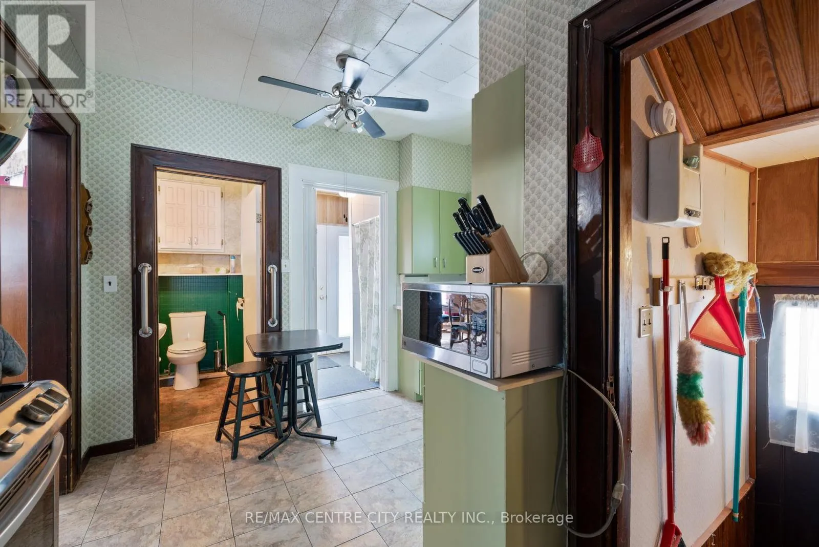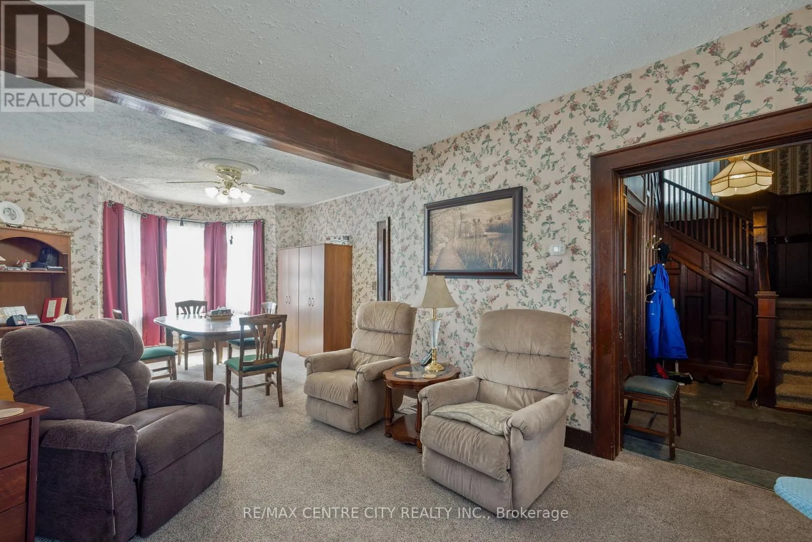 Cross Streets: Caradoc. ** Directions: Head west on Metcalfe Street, north on Caradoc St, left on James Street. Looking for an affordable first time home ? Or maybe you're an investor looking to add a rental property to your growing portfolio ? This home located in Strathroy's downtown offers numerous possibilities. Ideal location to establish your business, or simply walk to downtown cafes and shops. Constructed in an era when character mattered, upon entry you will be greeted with an attractive wooden staircase and wooden door casings/trim/baseboards throughout. Open living/dining room with lots of natural light. Upstairs are 3 spacious bedrooms and bathroom. Commercial zoning allows for small businesses or offices if you're looking to convert a place into your own, with plenty of parking available on site and on the street. Needs some updating, but lots of potential here to make it your own. Book your own private showing today, and see for yourself what Strathroy has to offer ! (id:27476)