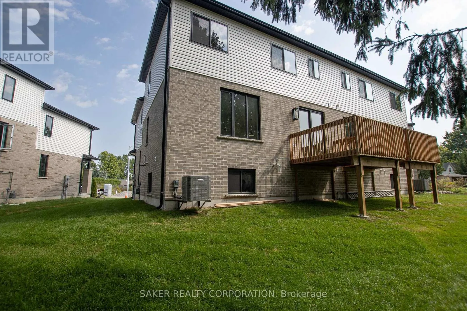 Cross Streets: From Glendon Drive turn north on Queen St, then left on Regent and the lot is on the left hand side. ** Directions: 10 Min west of london. ""CLICK MULTI-MEDIA FOR 3D TOUR"" PREMIUM PIE SHAPE DEEP LOT Banman Developments Newest Community " Timberview Trails" This is a FREEHOLD( No Condo fee) SEMI-DETACHED Split-level with 3 bedrooms, 3 bathrooms, With 2 CAR GARAGE and DRIVEWAY .JUST UNDER 2000 SQ FT, of Premium above ground floor space plus Basement, The Master suite is on its own level with Luxury Ensuite and massive walk in closet . Some of the features include granite throughout, hardwood throughout the main floor, ceramic tile, premium trim package. Rear deck as standard. This home is conveniently located near the community center, parks, arena, wooded trails and the down town, and is appointed well beyond its price point which include quartz countertops, hardwood throughout the main floor, tile in all wet areas, glass/tile showers, 9' ceiling. not to mention a Lookout basement with 9' Ceilings as well. Call for your Private showing today! (*picture of Model home 611 regent*) (id:27476)