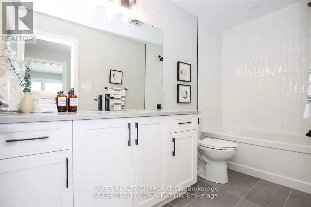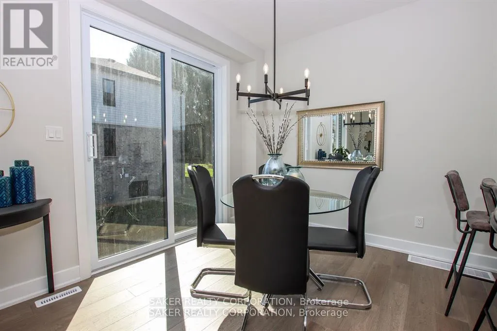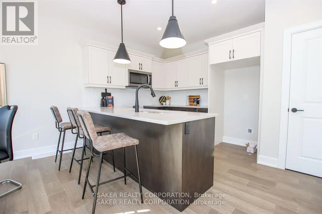Cross Streets: From Glendon turn NW on Queen St. Left on Regent and follow around the bend. The second townhouse on the the left. ** Directions: 10 Min west of London. * FREEHOLD ( NO CONDO FEE'S) END UNIT! Banman Development, Split level Townhome BACKING ONTO MATURE TREES ,with 3 bedrooms, 3 bathrooms, and 2 CAR DRVEWAY and 1.5 car Garage. The Kitchen features an island, quarts tops and backsplash. The Master suite on its own level with Luxury Ensuite and massive walk in closet . The Laundry room is conveniently located on the second level .JUST UNDER 2000 SQ FT, of Premium above ground floor space plus unfinished Basement, rear deck as standard. This home is conveniently located near the community center, parks, arena, wooded trails and the down town, and is appointed well beyond its price point which include quartz countertops, hardwood throughout the main floor, porcelain tile in all wet areas, glass/tile showers, 9' ceilings . *(All Pictures are of model home, 2 Colour options available ) (id:27476)