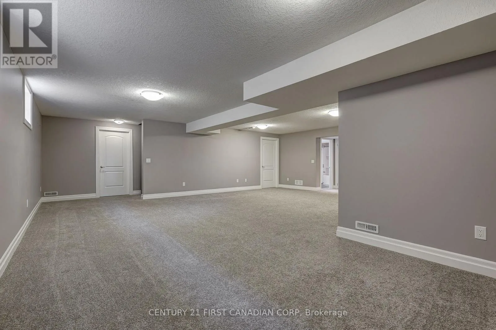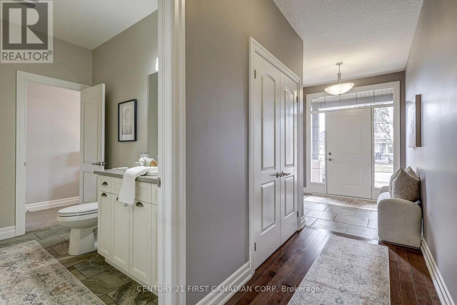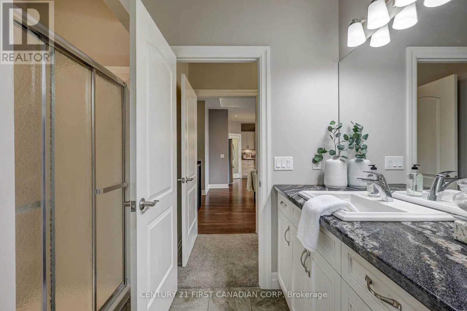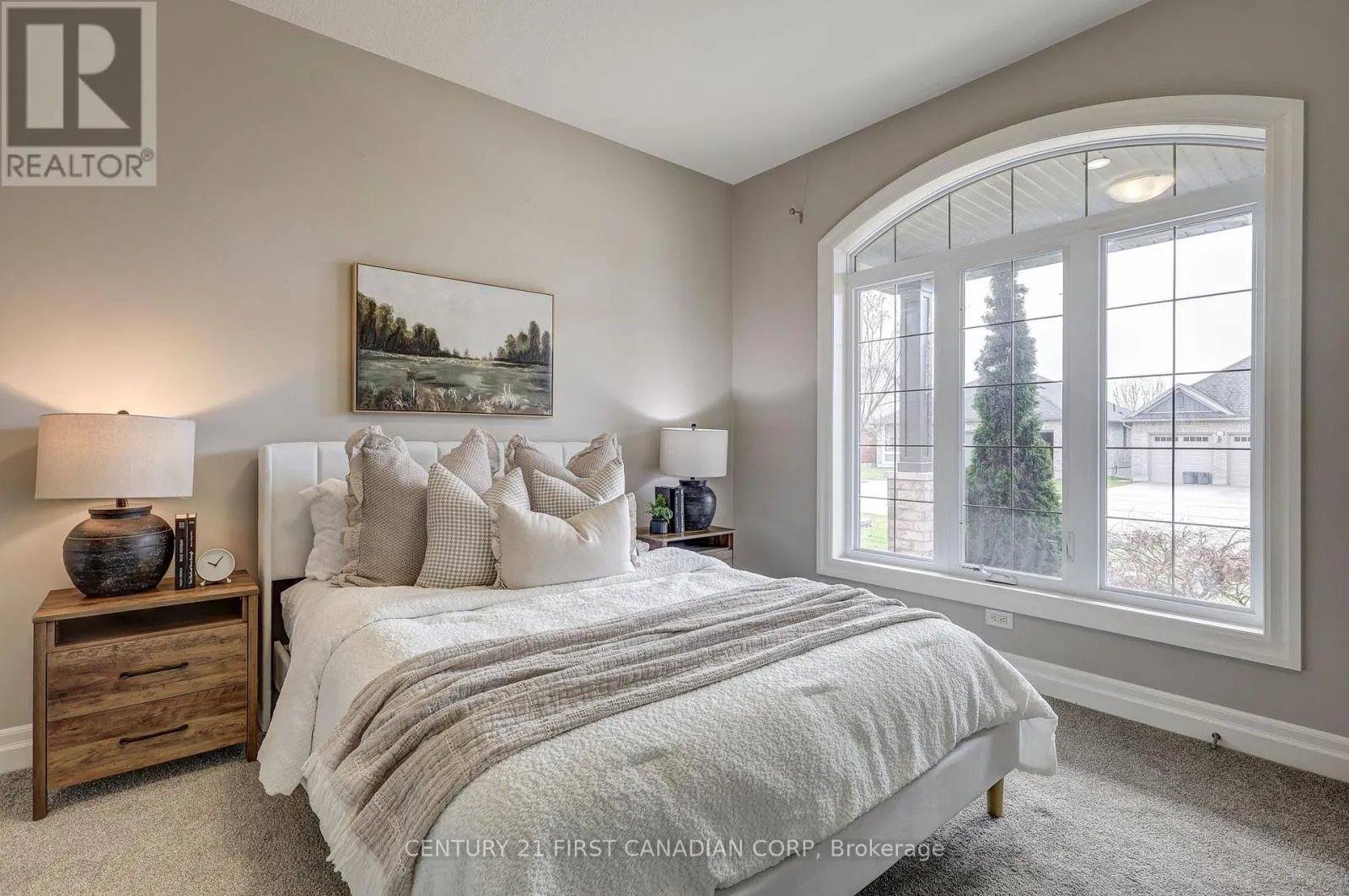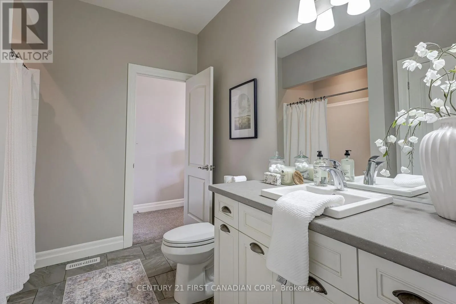 Cross Streets: ADELAIDE & BENNETT. ** Directions: OFF ADELAIDE RD. Incredible Value in This Former Model Ranch! Just 10-15 minutes between London and Strathroy, this beautifully maintained all-brick bungalow offers over 1,670 sq ft of luxury living on the main floor. The home features a spacious, open-concept layout with 10-ft tray ceilings, an inviting gas fireplace, and oversized windows that flood the space with natural light. The custom kitchen is a chefs dream - complete with granite countertops, stylish backsplash, under-cabinet lighting, and a large walk-in pantry. The well-appointed 2+1 bedrooms and 3 full bathrooms include a spacious primary suite with a walk-in closet and private ensuite. The professionally finished lower level adds (1135 sq ft) incredible living space with a full bedroom, full bathroom, large windows, and excellent lighting perfect for guests or extended family. Enjoy fully landscaped grounds, a fully fenced backyard, and fantastic outdoor living space including a covered front porch, a large deck, and a custom-built shed. Located in a quiet, family-friendly neighborhood just minutes from the 402, schools, parks, and local amenities. This move-in-ready home offers exceptional value - dont miss this opportunity! One call and you're in! Note: Low property taxes. (id:27476)
