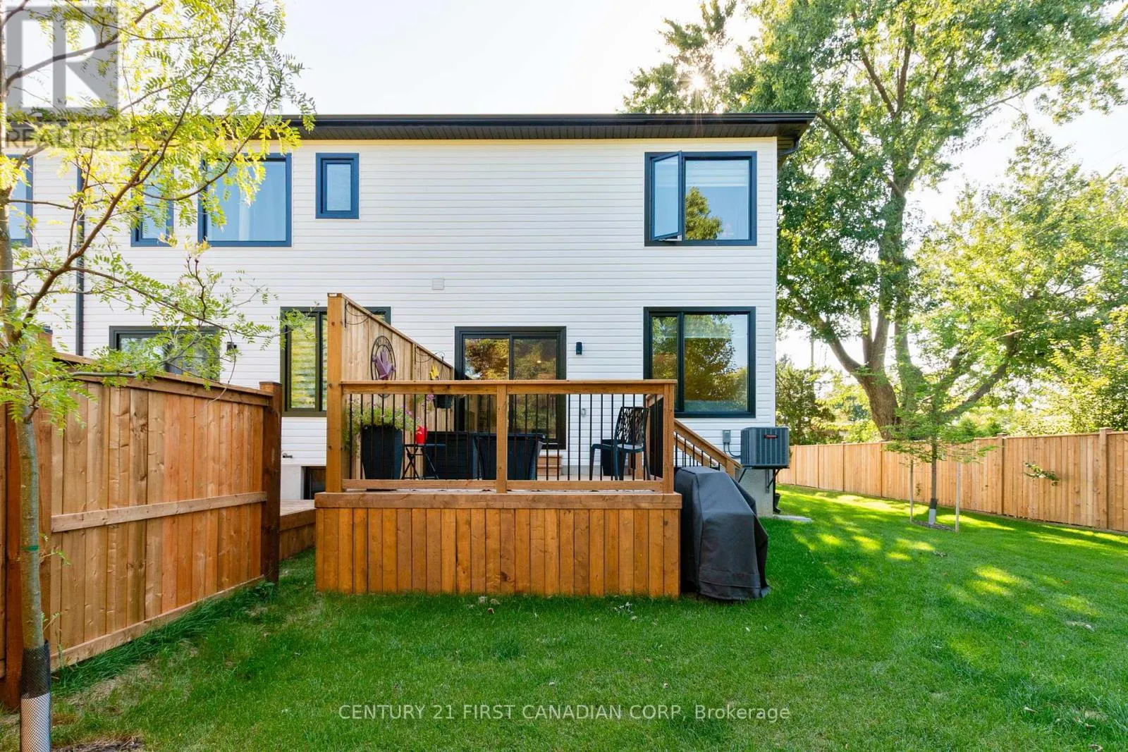 Cross Streets: Carroll St. ** Directions: Swales Ave & Carroll St. OVER $25,000 IN UPGRADES with an incredibly private corner lot. Welcome to unit 31 in the charming Carroll Creek community. This premium corner lot exudes privacy with all the benefits of a brand new home without the hassle of adding your own upgrades. See documents tab for full list of builder upgrades included with this home. Built in 2024, this stunning 1,900 square foot townhome has been completed with all your move in ready needs. It's completely turn key for the new owners. Featuring 3 oversized bedrooms, 3 bathrooms, a brand new back deck, brand new fence and many more upgrades throughout the entirety of the home. Enjoy cooking in your custom kitchen with large island looking out to the privacy of your treed corner lot. The living room is spacious and equipped with your own fireplace to enjoy during the cozy winter months. Upstairs, you'll find the oversized primary bedroom featuring TWO large closets for him & her. The custom ensuite features a double vanity, added shower niche, and upgraded shower head. You'll be amazed by the amount of closets & storage space throughout this home. Each room includes custom fitted blinds on the windows, some with remote control access. The backyard is the true show stopper of this home. Enjoy the warm months outside with the privacy of mature trees while sitting on your back deck. Don't miss your chance to be a part of this new and thriving community, there are very few units left available and unit 31 features one of the best locations within the neighbourhood. (id:27476)