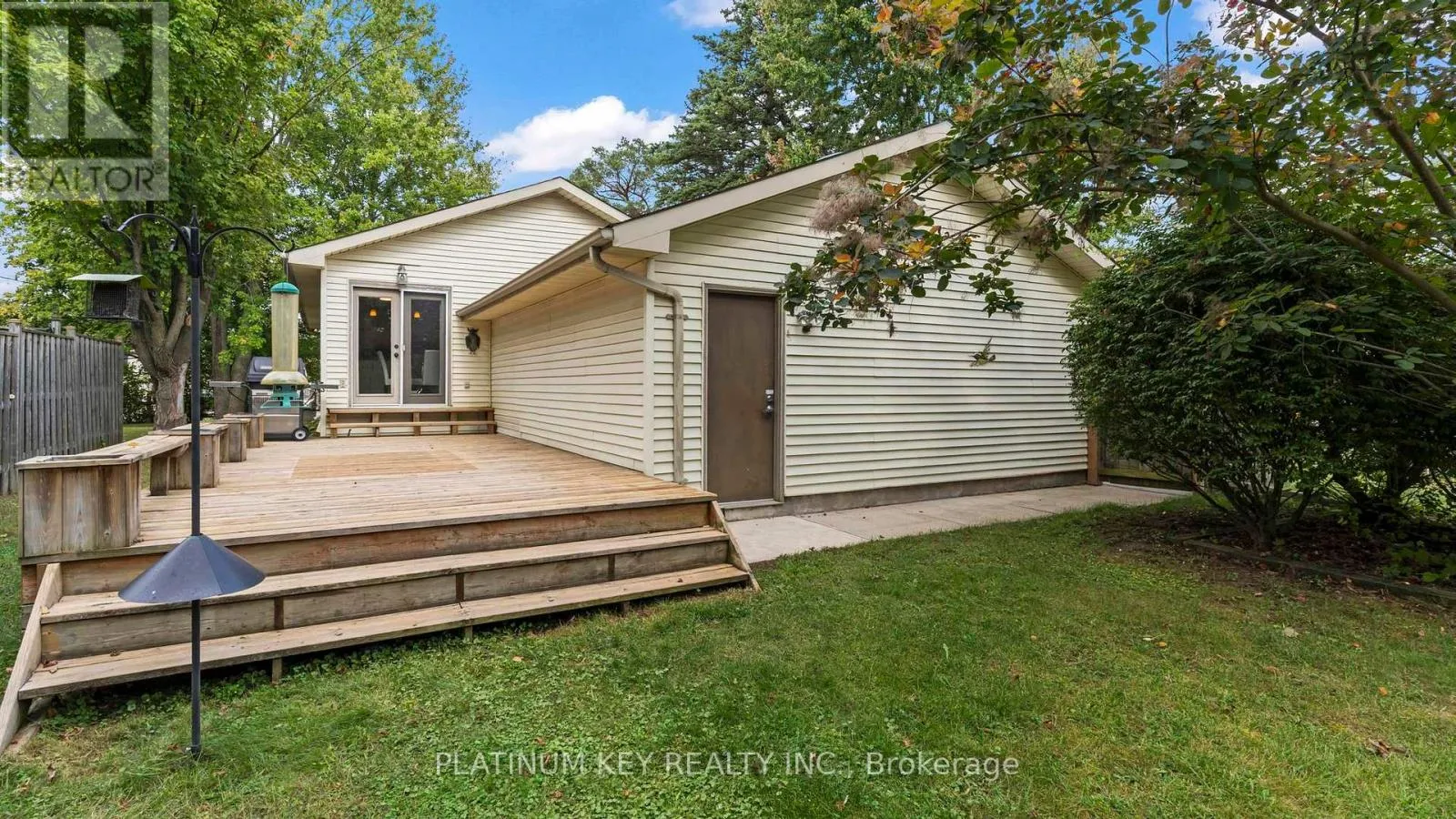 Cross Streets: Adelaide Rd. ** Directions: From Parkhouse Dr turn Northwest on Adelaide Rd, then turn Southwest on John St. Property is on the corner of Adelaide Rd and John St. A beautifully maintained raised bungalow on a generous corner lot (0.24 acres) with a 2-car garage. With 2+1 bedrooms and 2.5 baths, this home blends spacious living with small-town charm. Step inside to find a bright and open living, kitchen and dining area, perfect for family gatherings or entertaining. From the dining space, walk out to the expansive sun deck, complete with a natural gas BBQ hookup. The main level offers hardwood floors throughout (except kitchen and baths), adding warmth and character. The large kitchen features a tile backsplash, gas stove, and abundant cupboard and counter space. The primary bedroom includes a walk-in closet and a private 3-piece ensuite, while a second bedroom and 4-piece bath complete the main floor. Downstairs, the spacious family room with a freestanding gas fireplace offers a cozy retreat. The lower level also includes a third bedroom, a combined laundry/2-piece bath, and plenty of storage. With mature trees and lush gardens this home has the perfect outdoor space in the fully fenced yard. Located in the welcoming community of Mount Brydges, enjoy small-town living with nearby schools, parks, shops, and recreational facilities. With easy access to Highway 402, and just a short drive to London (20 minutes) and Strathroy (15 minutes). (id:27476)
