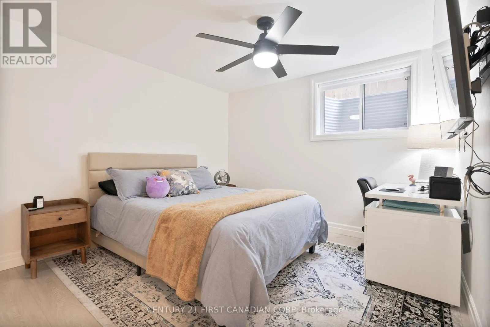 Cross Streets: ELLIOTT. ** Directions: COLLINS AND ELLIOTT. Wes Baker and Sons have built a stunning all-brick and Stone ranch home in Strathroy's prestigious area close to Caradoc Sands Golf Course, Walmart, LCBO, and easy access to 402 offering 5 bedrooms and 3 bathrooms. The finished lower level, fireplaces, and tray ceilings add to the homes elegance, granite countertops and hardwood floors provide a modern touch. The kitchen is well-equipped with top-notch appliances, including stove, refrigerator, dishwasher, washer, dryer. The rear yard is a private oasis, fully fenced with a composite deck. This home exudes pride of ownership and is ideal for empty nesters, families, or young professionals looking for a blend of comfort and sophistication. It truly is a must-see property! (id:27476)
