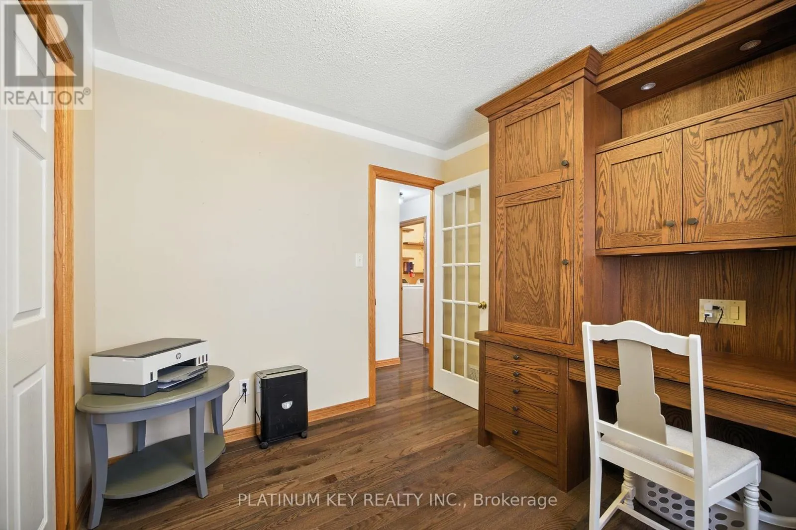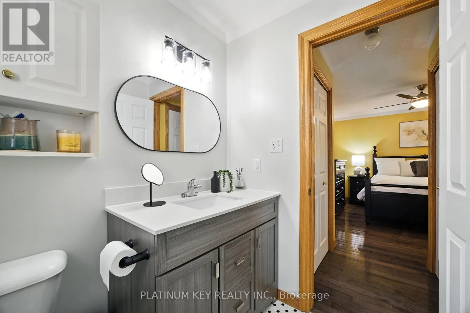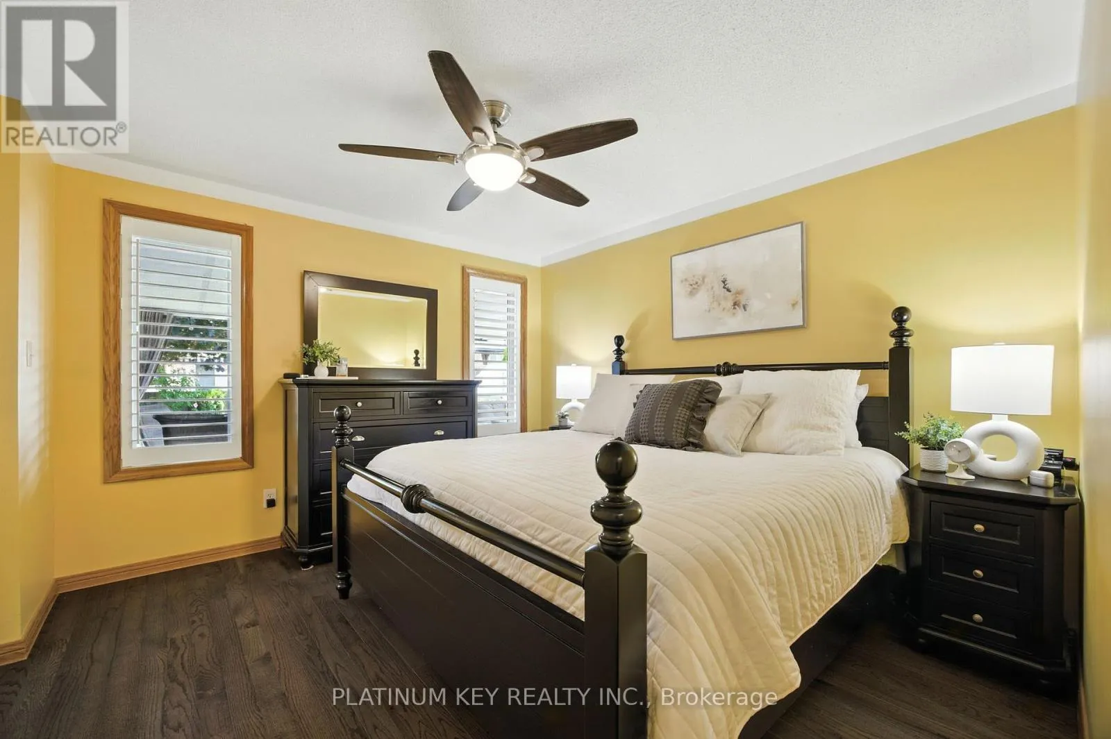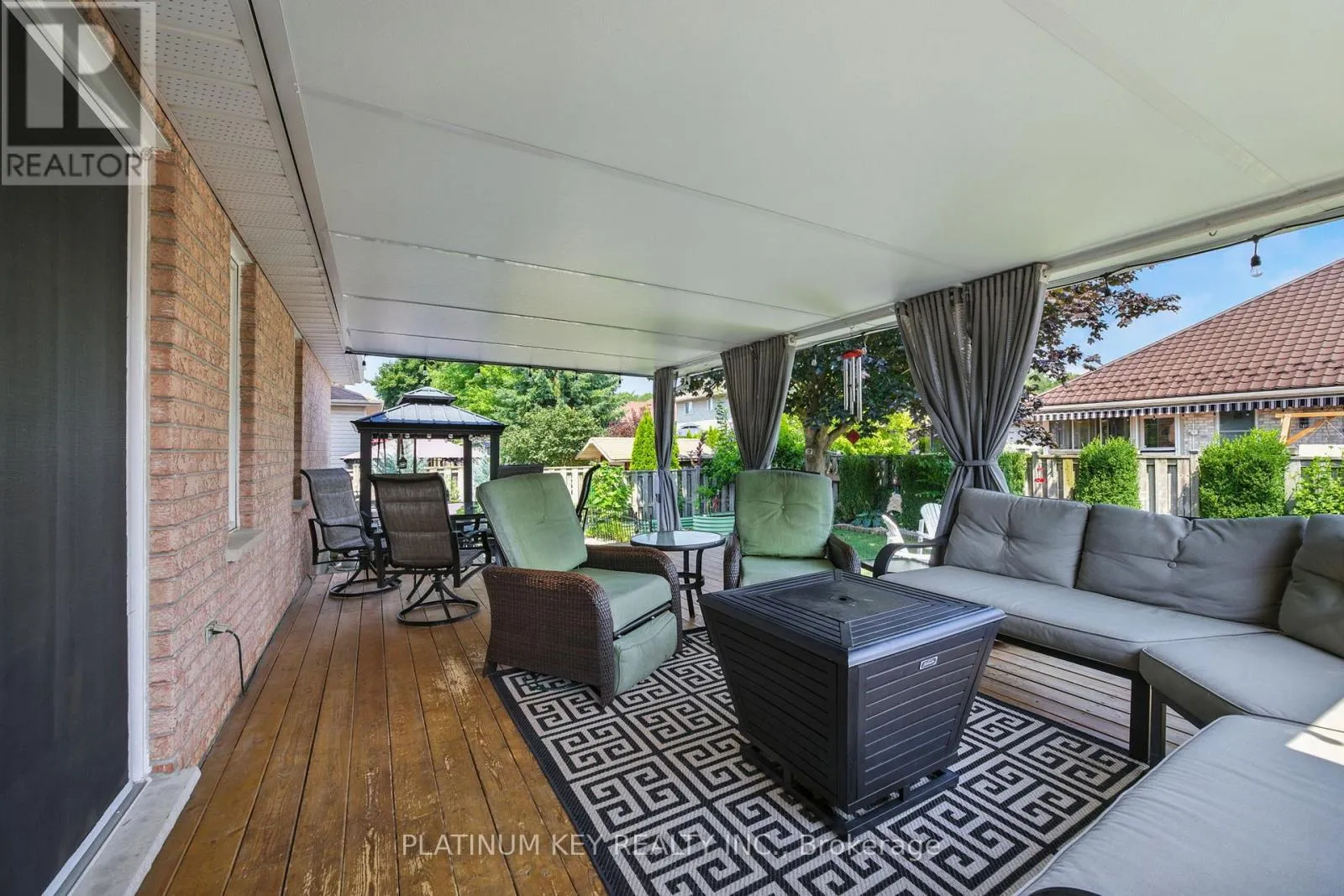Cross Streets: Deruiter Drive. ** Directions: From Head St N., turn East on Deruiter Drive, then North on Riverview Drive. A beautifully maintained Bungalow located on a quiet, mature street in one of Strathroy's most desirable neighbourhoods. This immaculate home offers 3 bedrooms, 2.5 bathrooms, and a convenient attached garage, all set on a landscaped lot with a fully fenced backyard. Hardwood flooring (installed in 2019) flows throughout the bright living room with gas fireplace, the formal dining area, and all three main floor bedrooms, including the spacious primary suite complete with double closets and a 3-piece ensuite bathroom. The updated kitchen (2024) features ceramic tile flooring, a tile backsplash, and stunning quartz countertops. A spacious eating area in the kitchen offers double door access to the covered deck and backyard, perfect for indoor/outdoor living. A 4-piece main bathroom and a main floor laundry room with convenient interior access to the garage complete the main level. The fully finished lower level provides excellent additional living space with a large family room, a dedicated office or sewing room, a 2-piece bathroom, and a large storage area. A generous workshop area on this level offers access up to the garage ideal for hobbyists or additional storage needs. Step outside to enjoy the lovely landscaped backyard, which includes a Greenhouse, Gazebo, raised garden beds, and gas lines in place for both a barbecue and fire pit perfect for entertaining or relaxing. Located in an established neighborhood close to parks, schools, shopping, and amenities, with easy access to Highway 402 for quick commutes to London and surrounding areas. (id:27476)