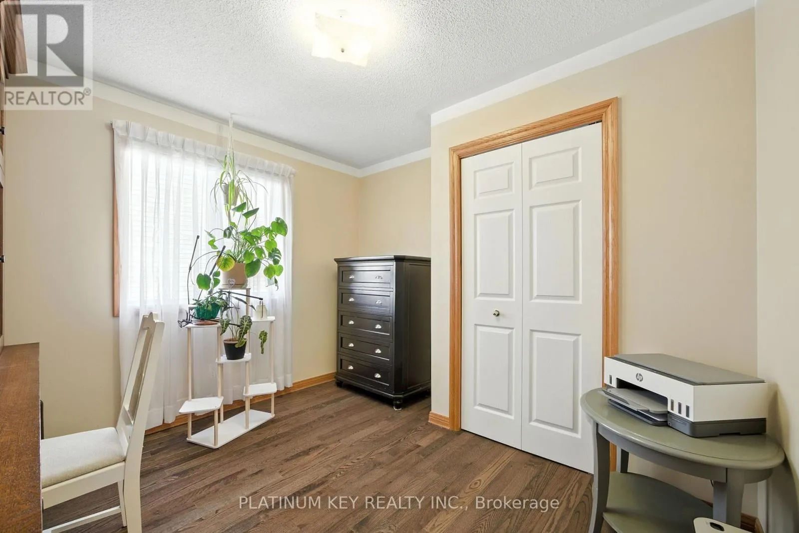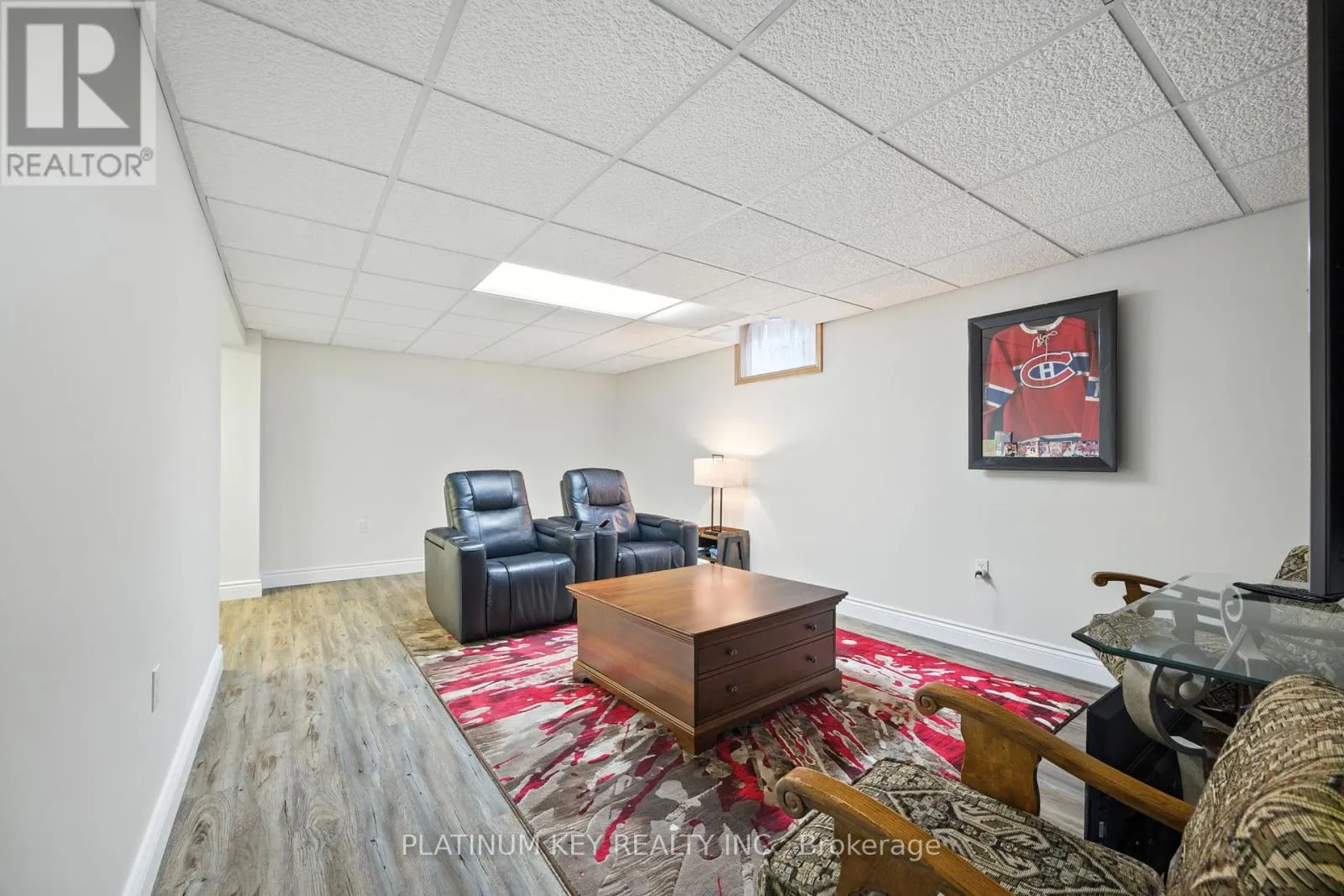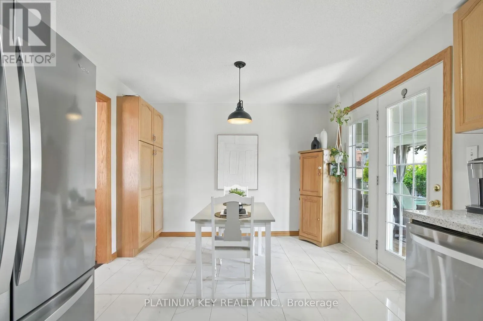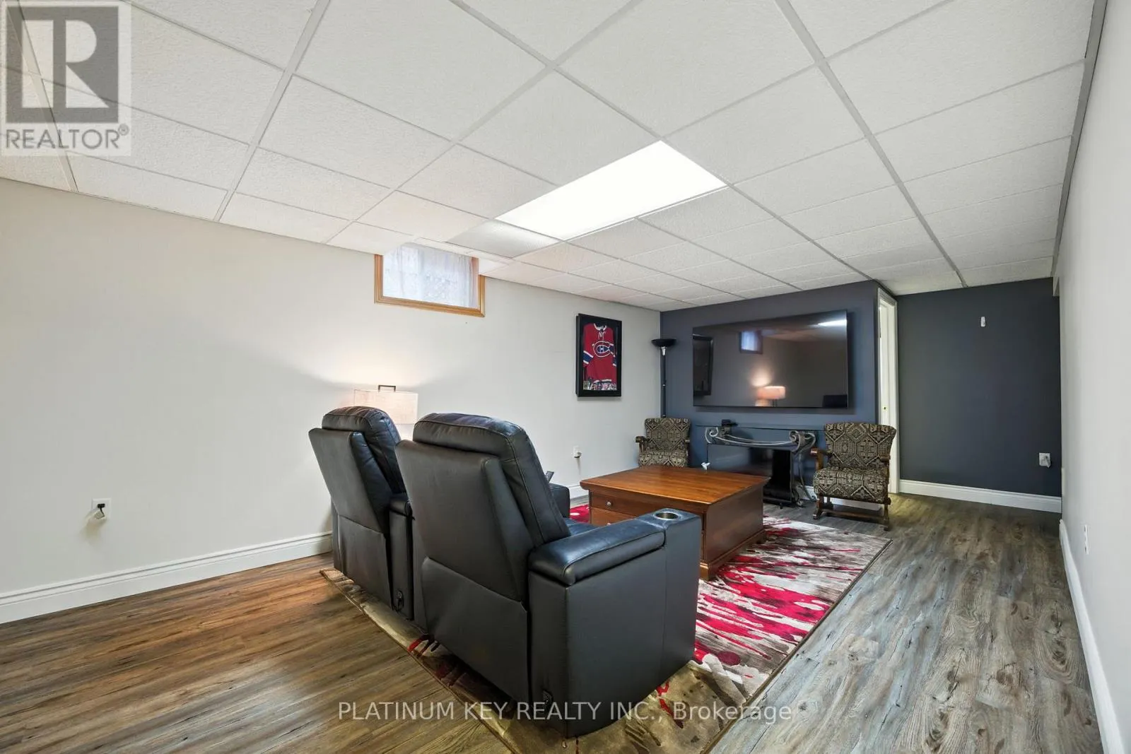 Cross Streets: Deruiter Drive. ** Directions: From Head St N., turn East on Deruiter Drive, then North on Riverview Drive. A beautifully maintained Bungalow located on a quiet, mature street in one of Strathroy's most desirable neighbourhoods. This immaculate home offers 3 bedrooms, 2.5 bathrooms, and a convenient attached garage, all set on a landscaped lot with a fully fenced backyard. Hardwood flooring (installed in 2019) flows throughout the bright living room with gas fireplace, the formal dining area, and all three main floor bedrooms, including the spacious primary suite complete with double closets and a 3-piece ensuite bathroom. The updated kitchen (2024) features ceramic tile flooring, a tile backsplash, and stunning quartz countertops. A spacious eating area in the kitchen offers double door access to the covered deck and backyard, perfect for indoor/outdoor living. A 4-piece main bathroom and a main floor laundry room with convenient interior access to the garage complete the main level. The fully finished lower level provides excellent additional living space with a large family room, a dedicated office or sewing room, a 2-piece bathroom, and a large storage area. A generous workshop area on this level offers access up to the garage ideal for hobbyists or additional storage needs. Step outside to enjoy the lovely landscaped backyard, which includes a Greenhouse, Gazebo, raised garden beds, and gas lines in place for both a barbecue and fire pit perfect for entertaining or relaxing. Located in an established neighborhood close to parks, schools, shopping, and amenities, with easy access to Highway 402 for quick commutes to London and surrounding areas. (id:27476)