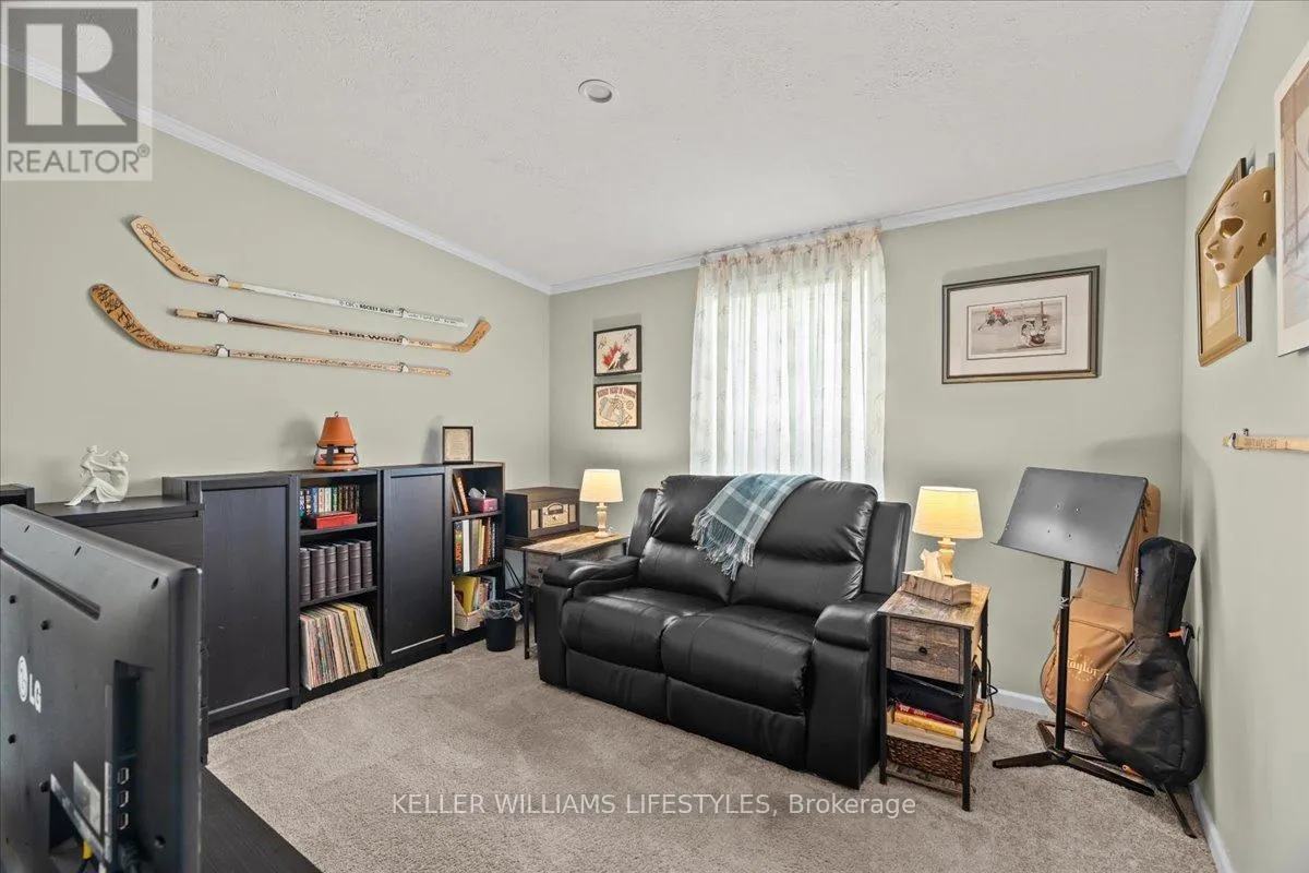 Cross Streets: Saxton Rd. & Bond St. ** Directions: Carroll St. E - head South on Saxton Rd., Turn Right onto Bond St., Right onto Kellestine Dr. House sits on the right hand side. Welcome to the newest home in Twin Elm, a private, rent-controlled, adult-lifestyle land-lease community just a short walk to shopping and Caradoc Sands Golf Club.This 4-year-old, energy-efficient Titan Home sits on a clean, dry slab foundation crawlspace and includes a whole-home surge protector, 10kW Generac generator, and gutter leaf guards on all eavestroughs for low-maintenance living. Step in from the covered porch to a bright, open-concept layout with luxury vinyl plank flooring. The living room features a freestanding natural gas Valour fireplace, while the kitchen offers Whirlpool appliances, ceramic backsplash, pantry with pullouts, island with seating, and pot drawers. Convenient laundry/mechanical room with extra pantry space nearby. The primary bedroom includes a walk-in closet and ensuite with double sinks and a large shower. Two additional bedrooms and a 4-piece main bath are thoughtfully separated from the primary suite. The oversized R-12 insulated garage/workshop features a workbench and cupboards. A new sliding patio door leads to a large deck with built-in seating, BBQ pad, privacy-screened patio with retractable awning, and a fully fenced backyard-ideal for pets and entertaining. Enjoy the 8x8 pine shed, sandpoint well for irrigation, perennial gardens, and cedar-sided raised vegetable bed. The community clubhouse offers a hall, kitchen, gym, darts, billiards, shuffleboard, and weekly events. On-site RV/boat storage is available for an additional fee. Don't miss this opportunity to enjoy modern living, peace of mind, and a vibrant community lifestyle in Twin Elm Estates. (id:27476)