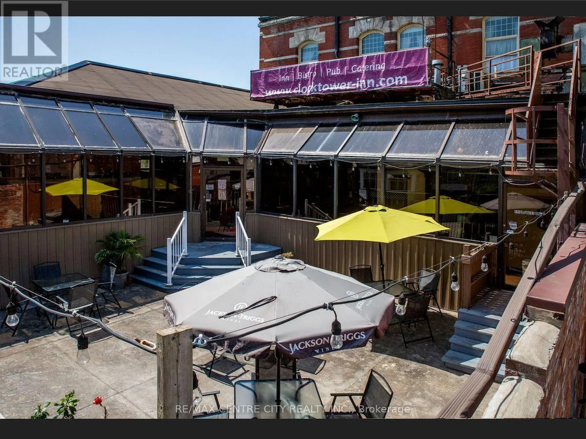 Cross Streets: Centre. ** Directions: Downtown Strathroy. Preview The Online Presentation. Call For An Onsite Walkabout. You Will Be Impressed.The Historic Clock Tower Inn, Bistro and Pub Has Come To The Market. One of Strathroys Downtown Land Mark Businesses and Building An Elegant Bistro With a Gourmet Menu. The Pub You Feel Like You Are In a Scotland And The Inn Contains Eight Quality Suites Designed to Capture This Historic Atmosphere The Spacious Patio Adds Value And Charm.Buy Into A Long Term Successful Business. Call For The Information Package That Shows Long Term Success. The Equipment, Chattels And Premise Are In Excellent Condition. (id:27476)