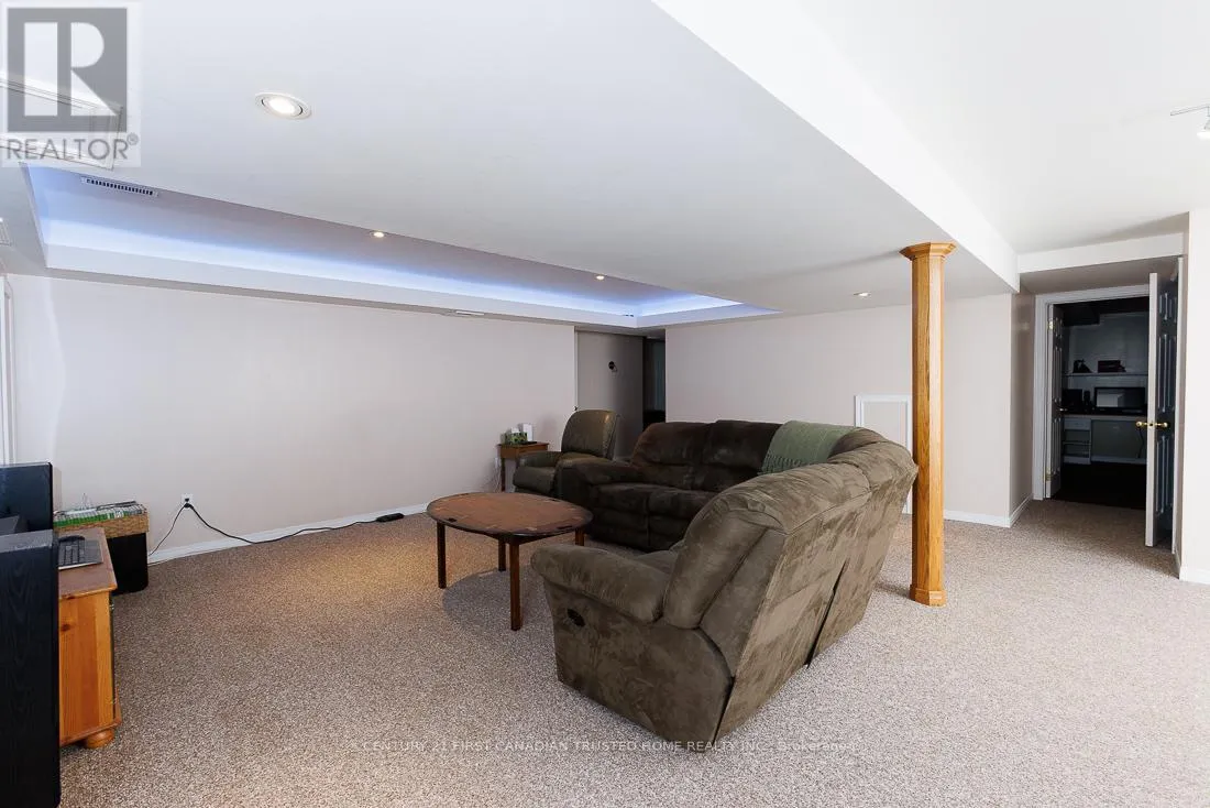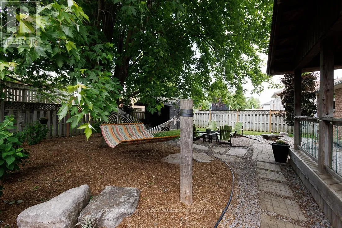 Cross Streets: HARRIS/HEAD. ** Directions: FROM HEAD ST TURN RIGHT ONTO HARRIS CIRCLE. LOCATION! LOCATION! LOCATION! Welcome to this charming all Brick Bungalow in the North end of Strathroy. Nestled on a quiet crescent with close proximity to Schools, Shopping, Sports complex and Highway 402. Offering over 2400 sq ft (INCLUDING BASEMENT ) of fully finished living space, a bright and inviting Living Room with vaulted ceilings connecting to an eat-in kitchen. From here the space is open to a large dining room with adjacent office, which has played host to seated family dinners of 24 people, comfortably. Dining room opens to a custom covered cedar deck within a nicely shaded, and private fully fenced backyard with water fountain, firepit, and shed with power. Great for summer gatherings, barbeques etc. Main level also offers 2 good sized bedrooms, luxurious cheater ensuite, complete with large walk-in shower and separate jacuzzi deep jet tub. Descending to the basement, a warm and inviting space, with large family/Rec room complete with coffered ceiling and up-lit lighting, a decent sized storage room, an Office/Playroom with 2 built-in desks and more storage, large 4 piece bath downstairs, and a spare room (possible additional bedroom), along with full laundry room. Basement was constructed using Pre-engineered subfloor system, for added comfort, and all walls and ceilings are sound proofed with R12 Roxal mineral sound insulation. Included with the home is a Culligan full home water softener, which has its own room along with the city water meter, and more storage. Not included in the square footage of the home is the attached 1-1/2 car garage that is 2' longer than a standard 2 car garage at 21', meaning that although it is 3' narrower, it is only 30 square feet less than a full 2 car Garage. Home is Move-in condition, however, should the new owner wish to have the office converted into a 3rd main floor bedroom, as per plan attached the current owner is willing to convert it, prior to move in, for an additional cost. (id:27476)