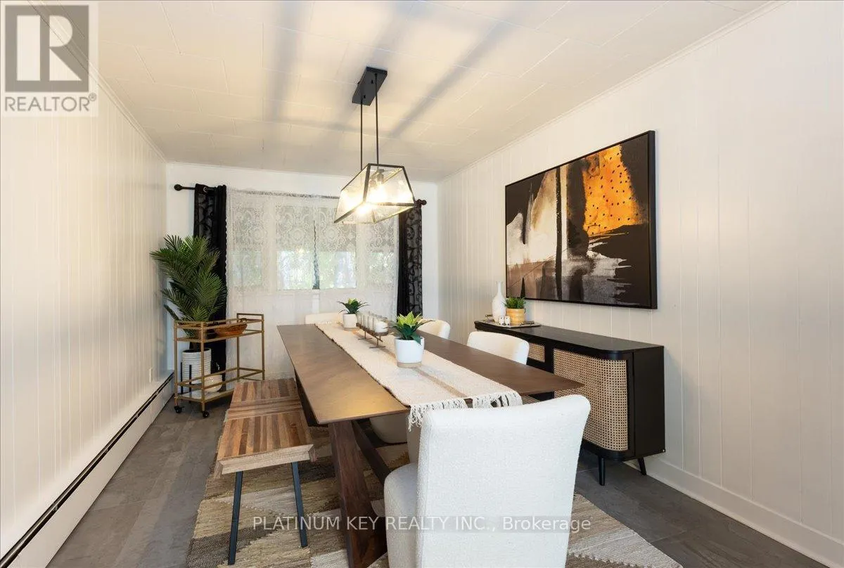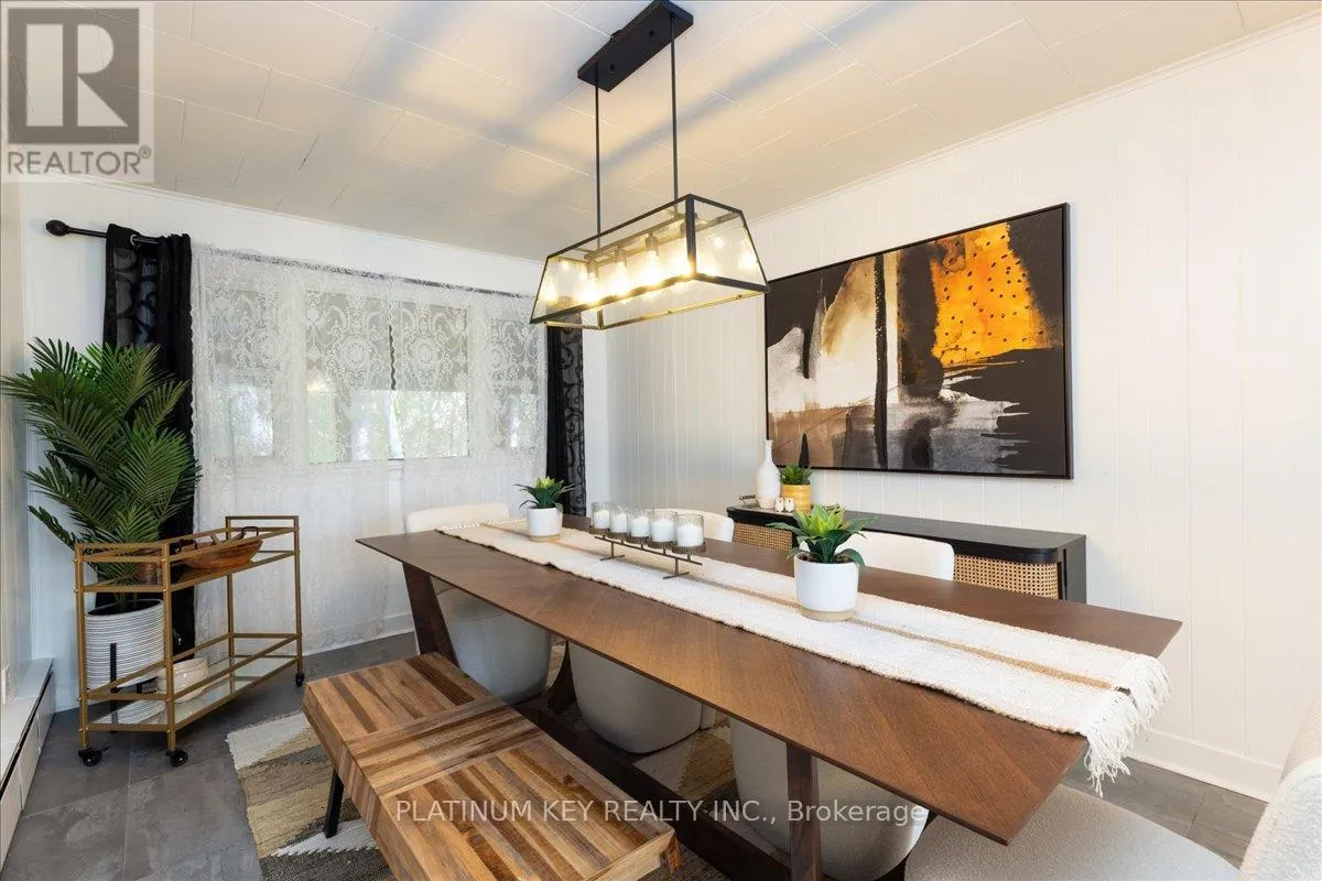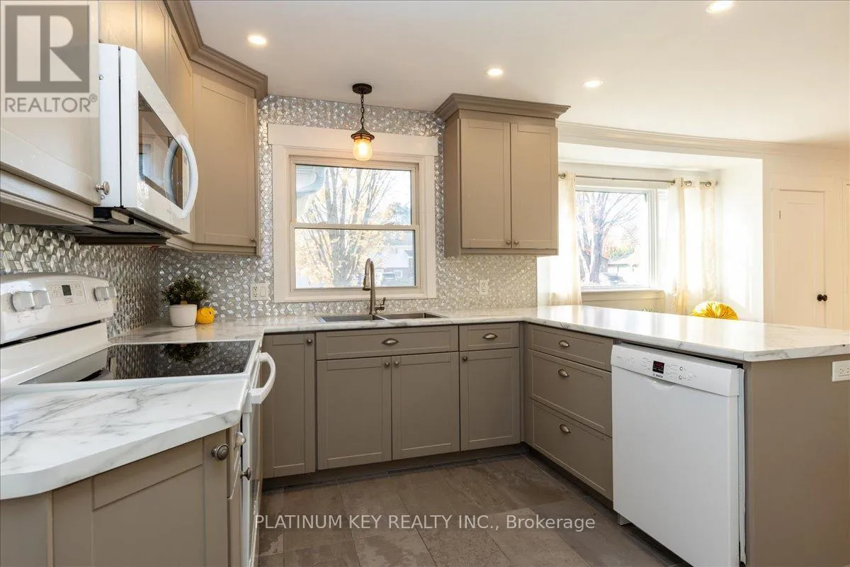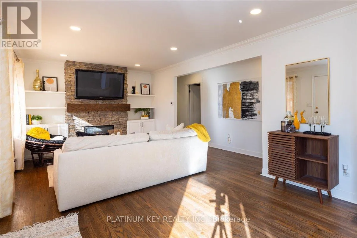 Cross Streets: Victoria Street. ** Directions: From Victoria Street, turn East on Arnella Crescent. Nestled on a quiet court in Strathroy, this spacious 3 bedroom, 2 bathroom Bungalow offers a peaceful lifestyle with unbeatable convenience. This charming home offers an inviting living room featuring hardwood flooring, a gas fireplace, custom mantel, and built-in shelving. The open-concept kitchen with breakfast bar and eating area flows to the formal dining room, where a large picture window captures beautiful views of the sloping backyard and mature trees. The home offers three exceptionally large bedrooms, along with a four-piece main bath. Convenient main-floor laundry combined with a 3 piece bathroom is also located on the main floor. Set on a generous lot, the property includes a lovely covered patio, perfect for morning coffee or enjoying the year-round natural scenery. The 2 car tandem garage could offer additional space for a workshop, hobbyists, a home gym or studio. All of this is just minutes from grocery stores, restaurants, gas stations, and easy access to the 402, offering the best of quiet living close to everything you need. (id:27476)