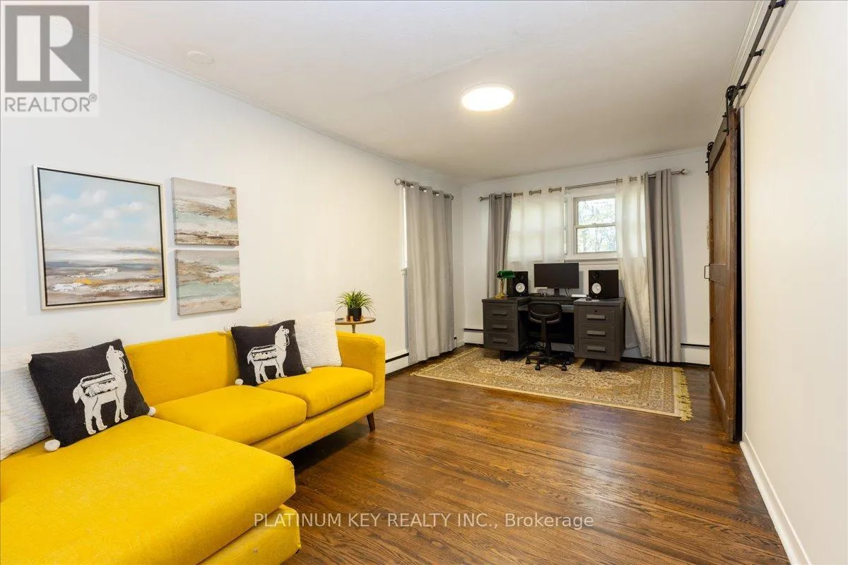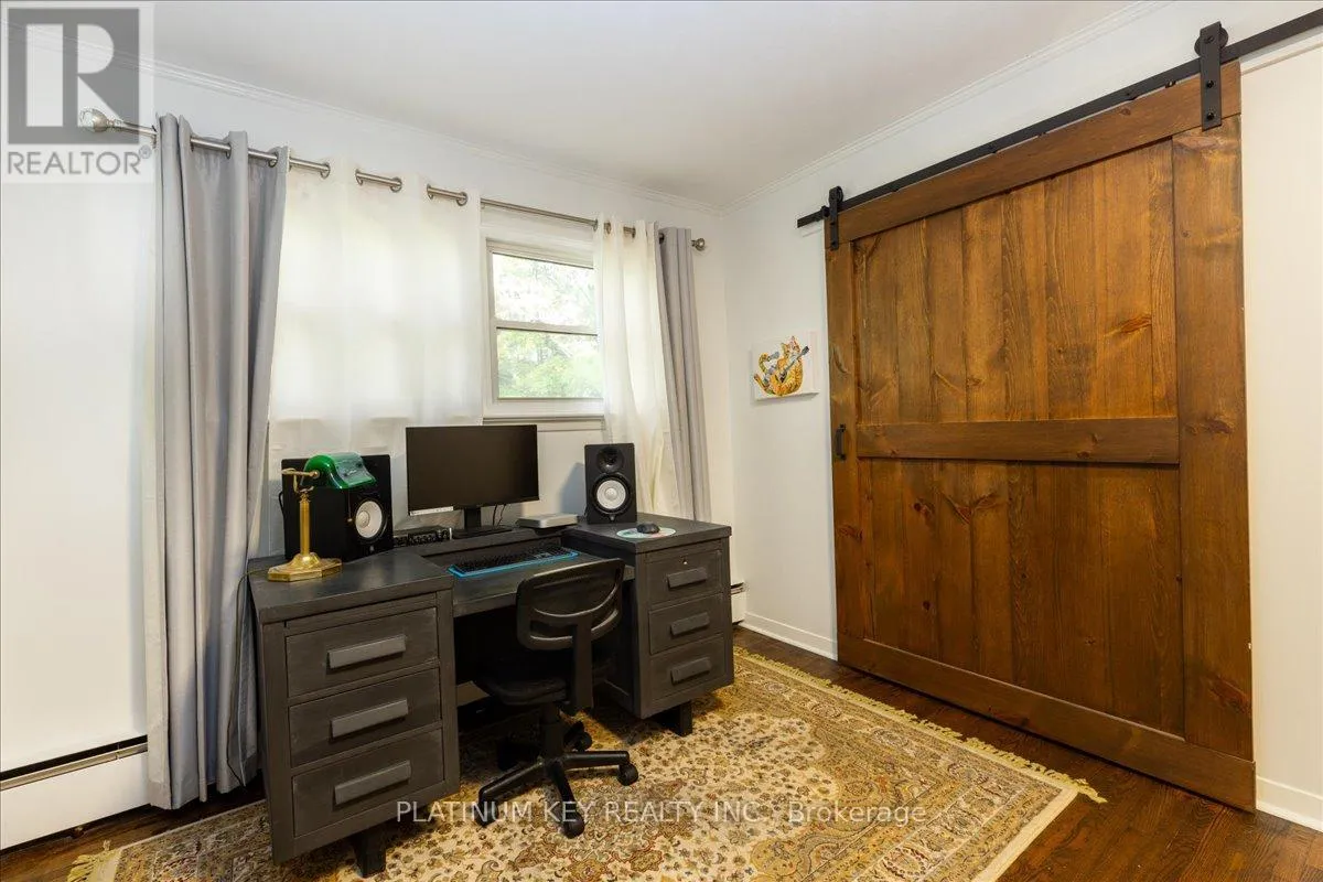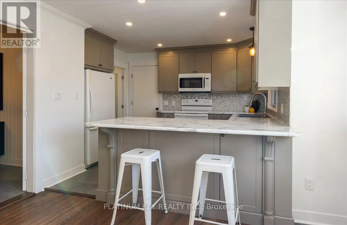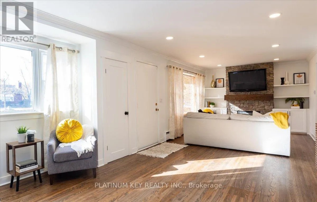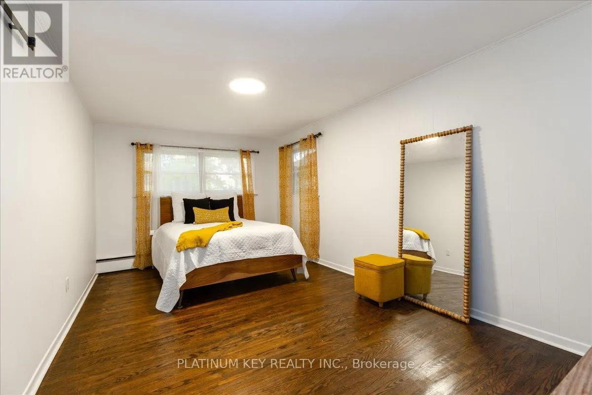 Cross Streets: Victoria Street. ** Directions: From Victoria Street, turn East on Arnella Crescent. Nestled on a quiet court in Strathroy, this spacious 3 bedroom, 2 bathroom Bungalow offers a peaceful lifestyle with unbeatable convenience. This charming home offers an inviting living room featuring hardwood flooring, a gas fireplace, custom mantel, and built-in shelving. The open-concept kitchen with breakfast bar and eating area flows to the formal dining room, where a large picture window captures beautiful views of the sloping backyard and mature trees. The home offers three exceptionally large bedrooms, along with a four-piece main bath. Convenient main-floor laundry combined with a 3 piece bathroom is also located on the main floor. Set on a generous lot, the property includes a lovely covered patio, perfect for morning coffee or enjoying the year-round natural scenery. The 2 car tandem garage could offer additional space for a workshop, hobbyists, a home gym or studio. All of this is just minutes from grocery stores, restaurants, gas stations, and easy access to the 402, offering the best of quiet living close to everything you need. (id:27476)